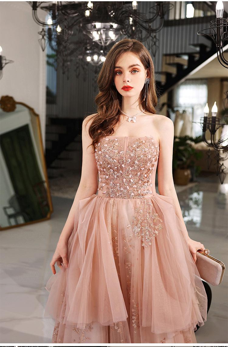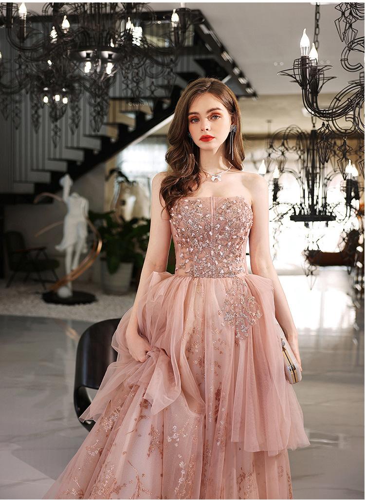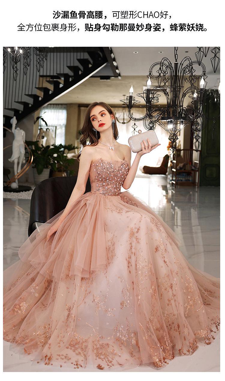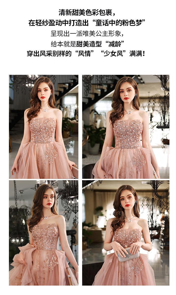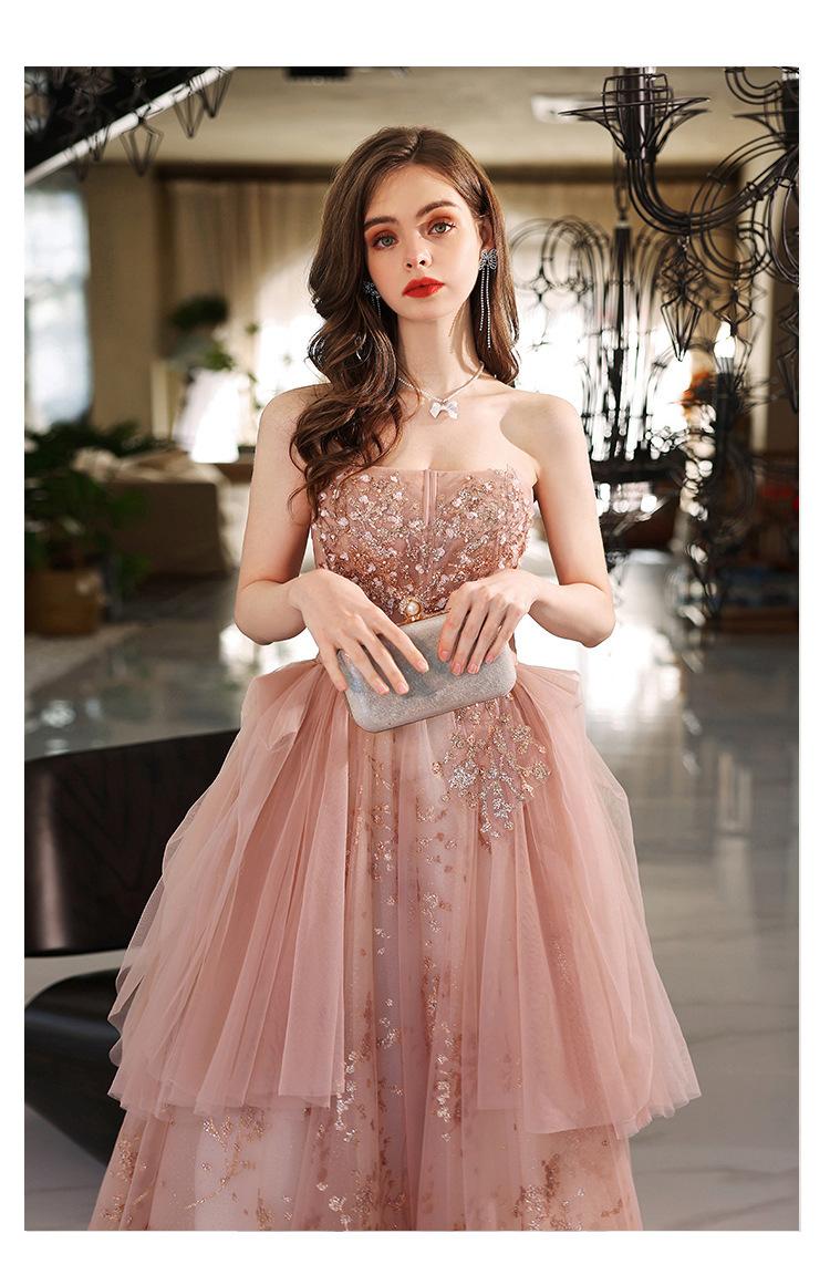Vestido de Noche de un Hombro 2025 Nuevo Elegante Atmosférico Rosa Actuación Fiesta de Cumpleaños Anfitrión Vestido de Boda para Mujeres
