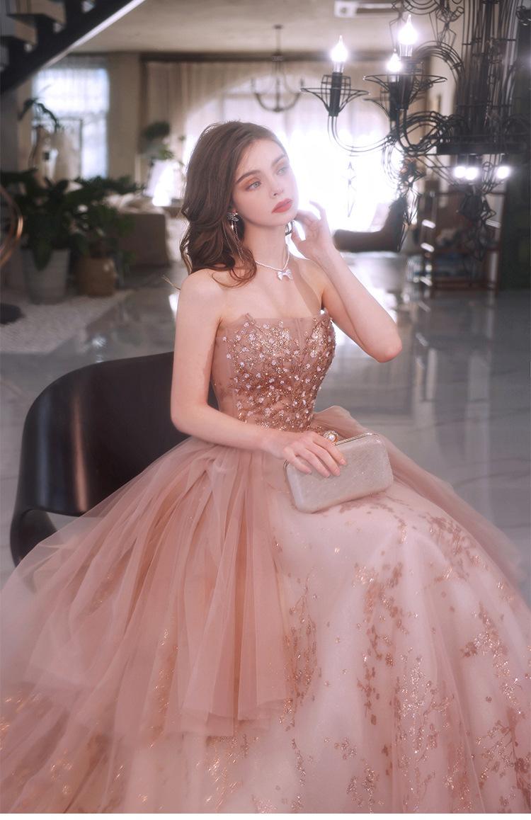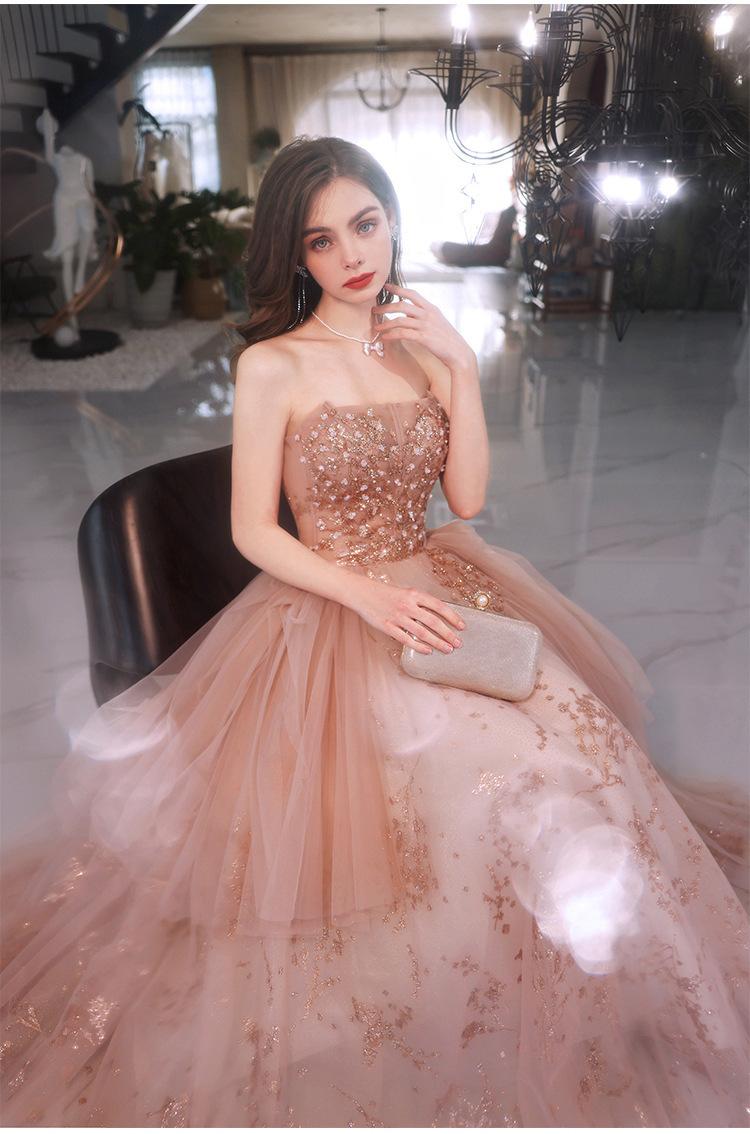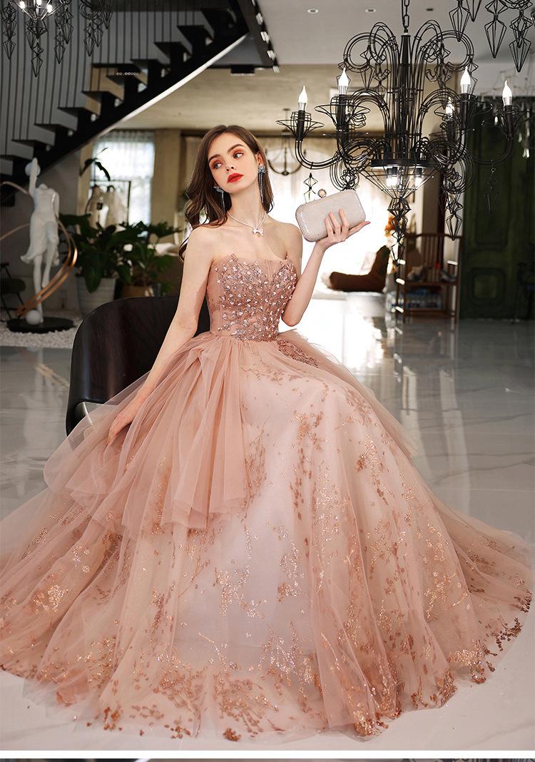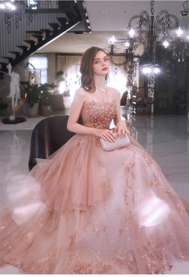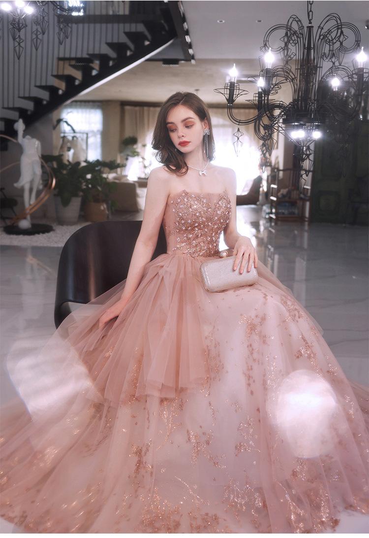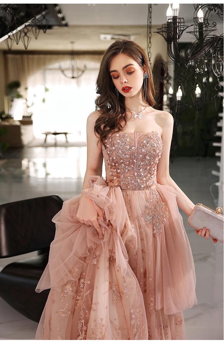 Vestido de Noche de un Hombro 2025 Nuevo Elegante Atmosférico Rosa Actuación Fiesta de Cumpleaños Anfitrión Vestido de Boda para Mujeres