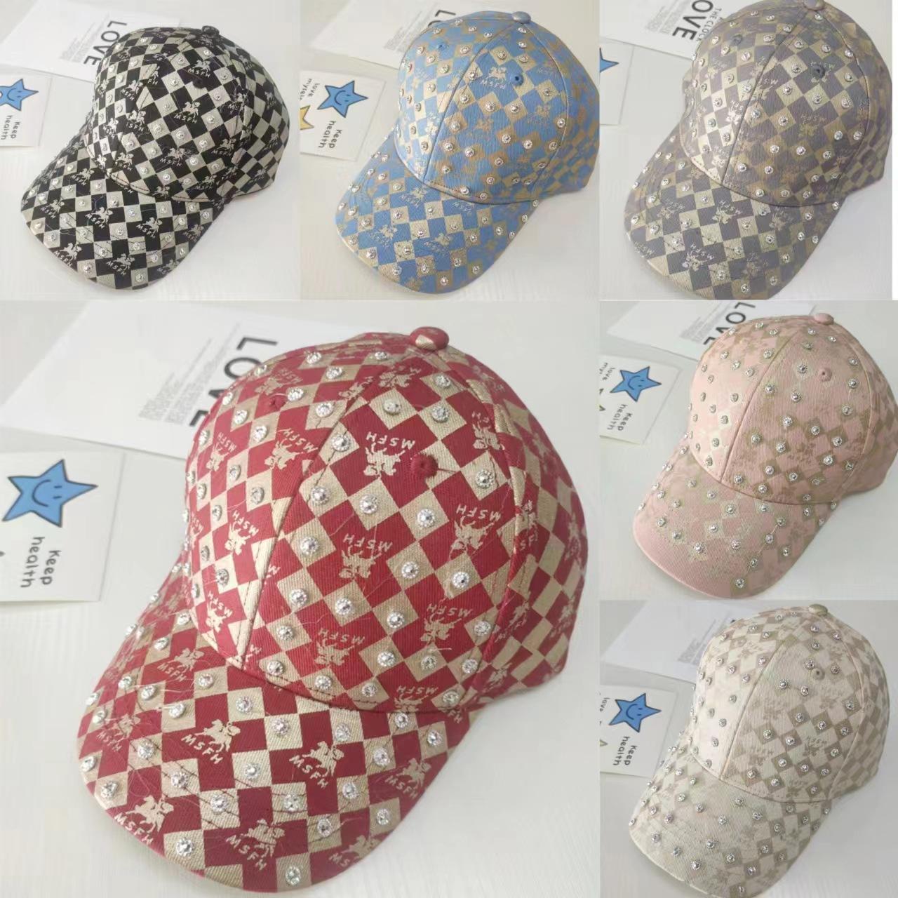 Gorra infantil de cuadros con diamante completo, gorra de béisbol infantil, moda para mujer, moderna, gorra con visera para estudiante de primaria, sombrero para el sol para exteriores
