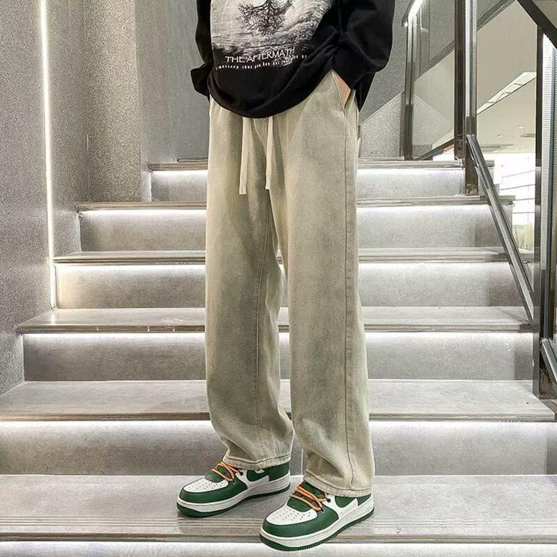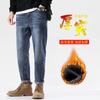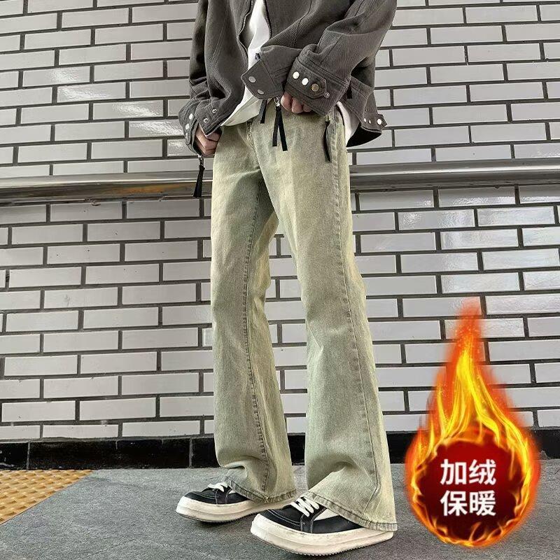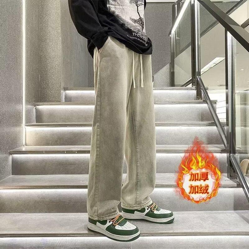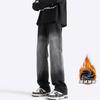 Jeans rectos retro americanos desgastados para hombre de otoño e invierno, jeans modernos sueltos para jóvenes populares con forro polar