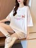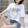 Verano Nueva Camiseta de Algodón Puro para Mujer Manga Larga Corta Color Puro Cuello Redondo Largo Medio Hilo de Algodón Diamante Estampado Camiseta Blanca