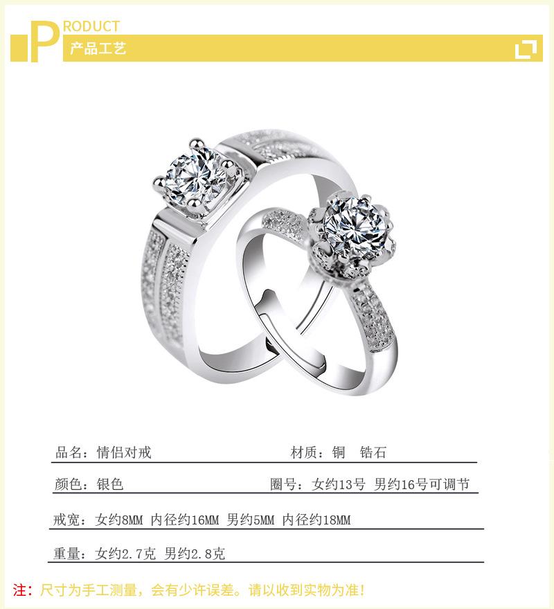 Anillo de bodas de circón viento europeo y estadounidense temperamento de personalidad rojo neto anillo de pareja un par anillo abierto suministro de comercio electrónico venta al por mayor