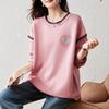 Sudadera Terry de Cuello Redondo con Hombros Descubiertos 2025 Zhongde Y330 Moda Casual Versátil Algodón Puro Estampado Venta al por Mayor