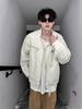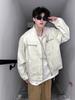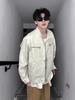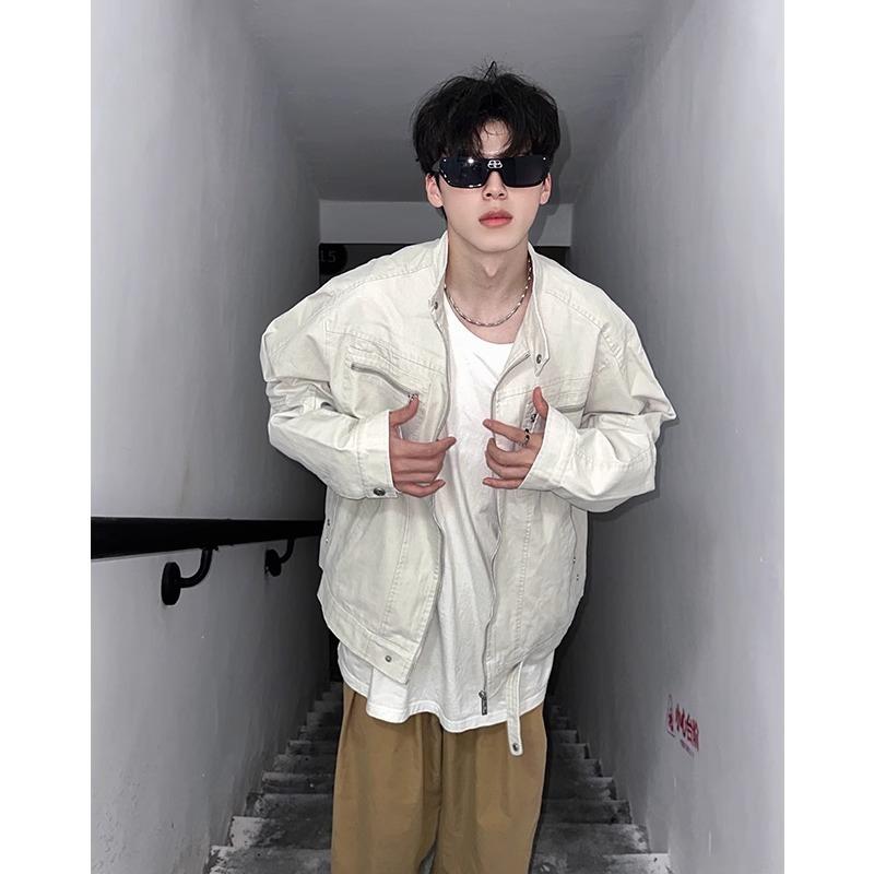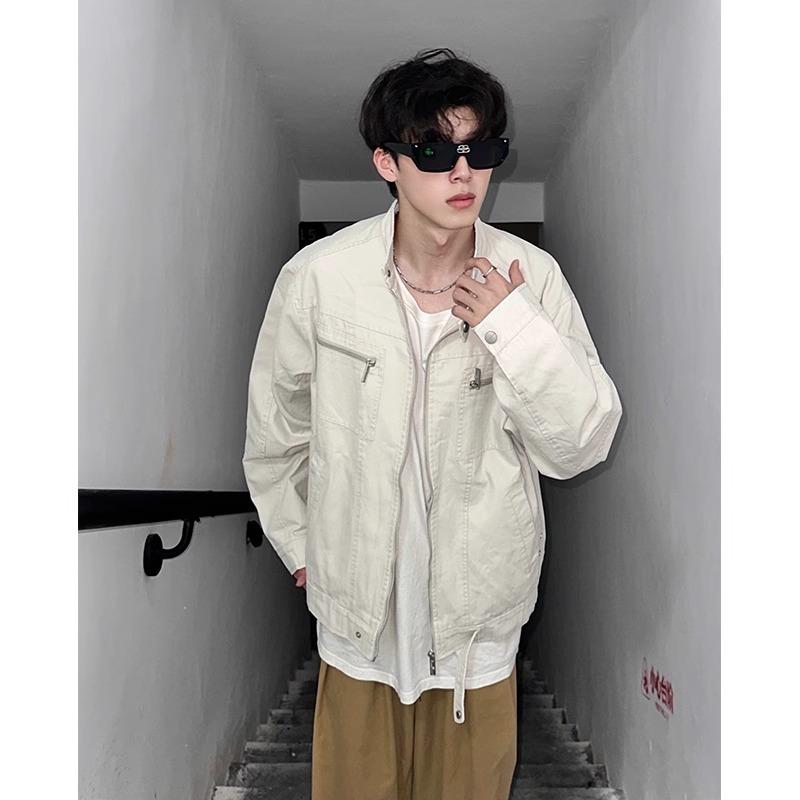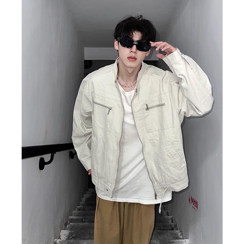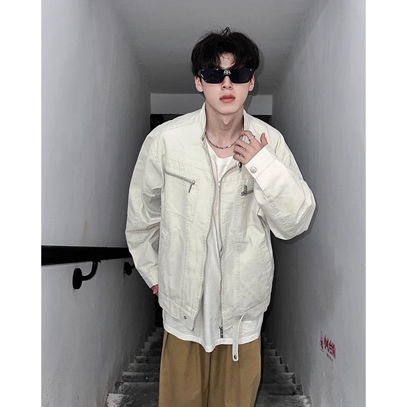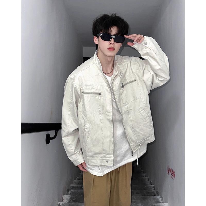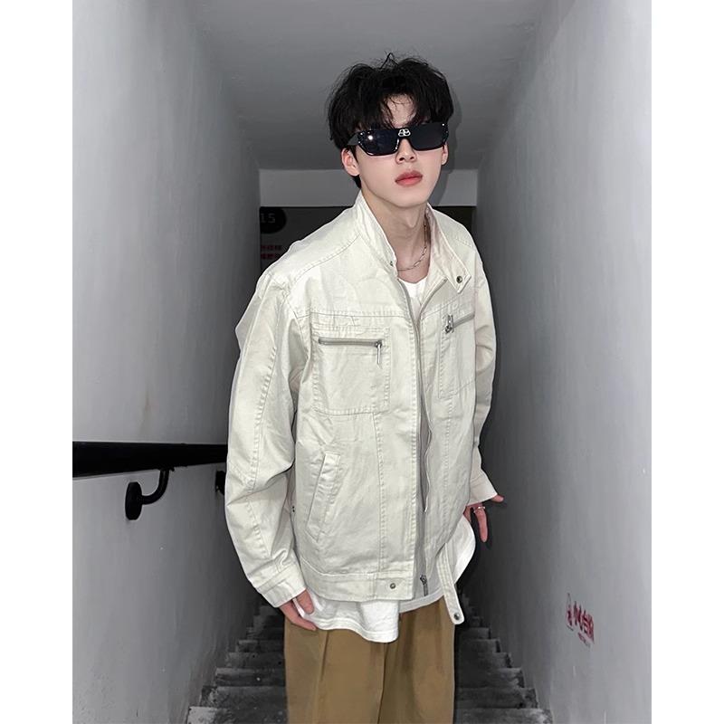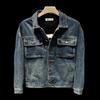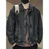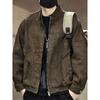 Chamarra de mezclilla de lona vintage retro americana para hombre, con múltiples bolsillos, cuello alto Harrington, ropa de trabajo