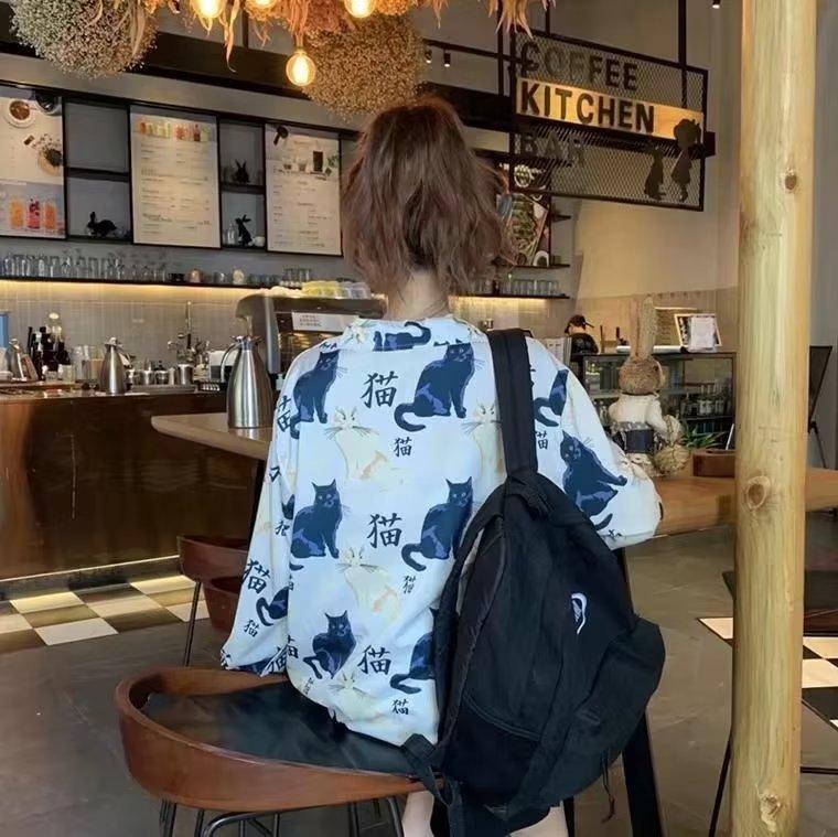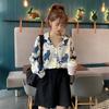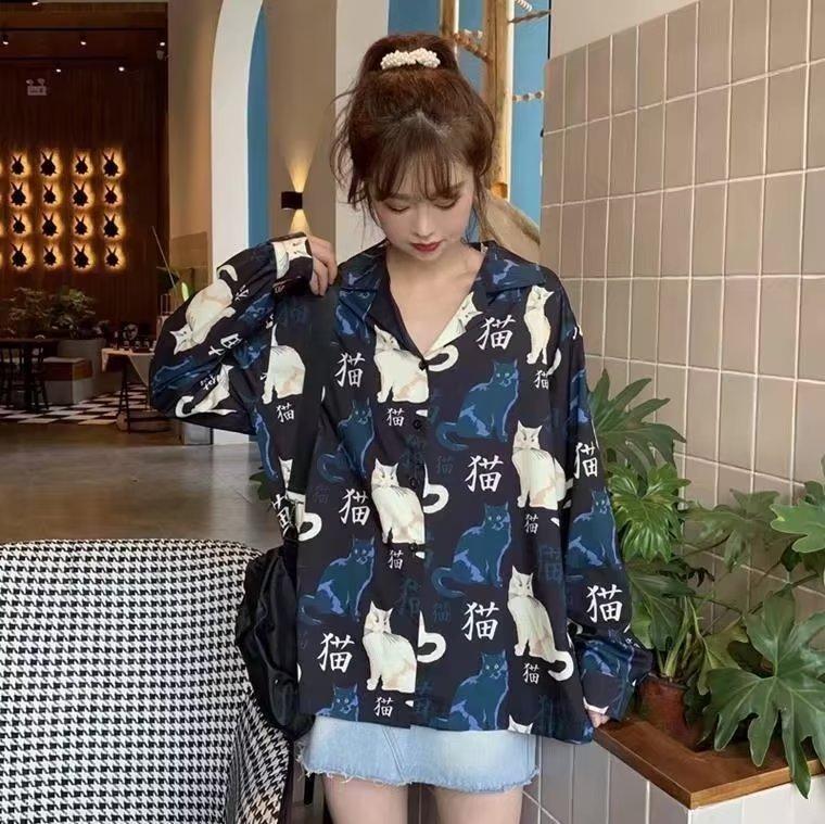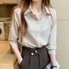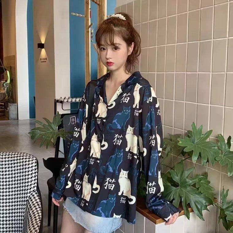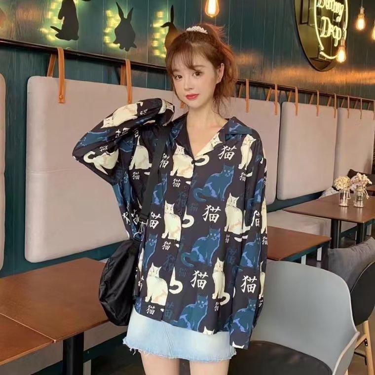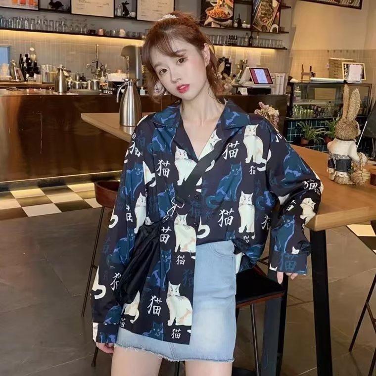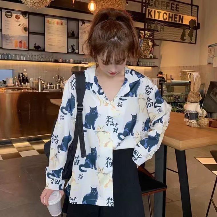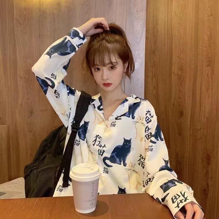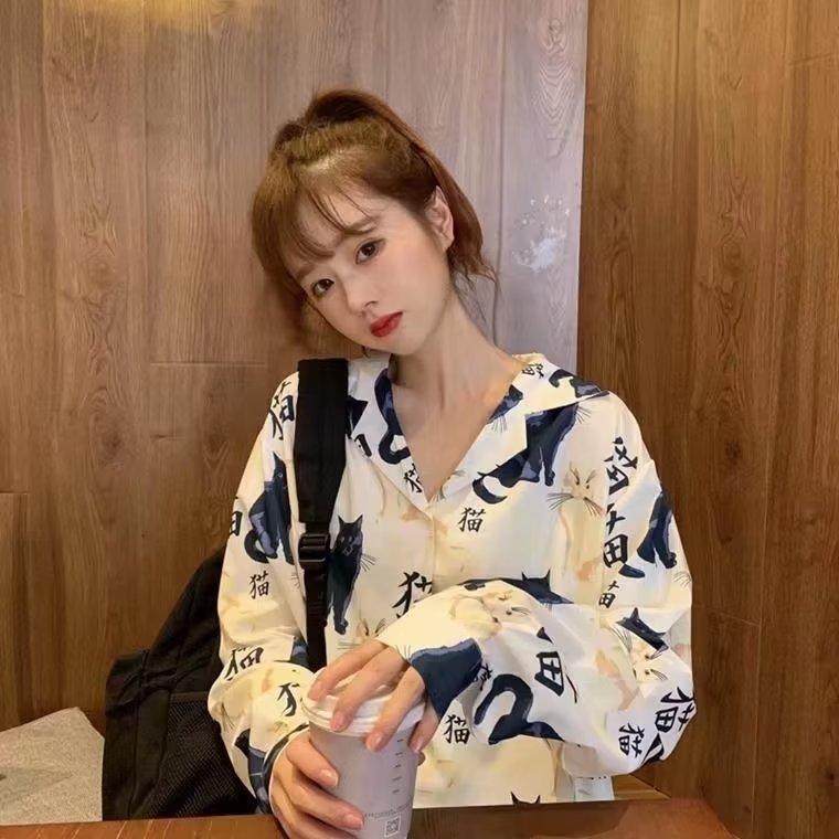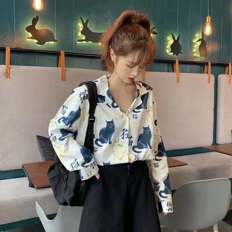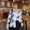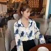 Primavera y Otoño 2025 Nuevo Estilo Coreano Estilo Hong Kong Retro Diseño Holgado Nicho Estampado Camisa de Manga Larga Top de Mujer