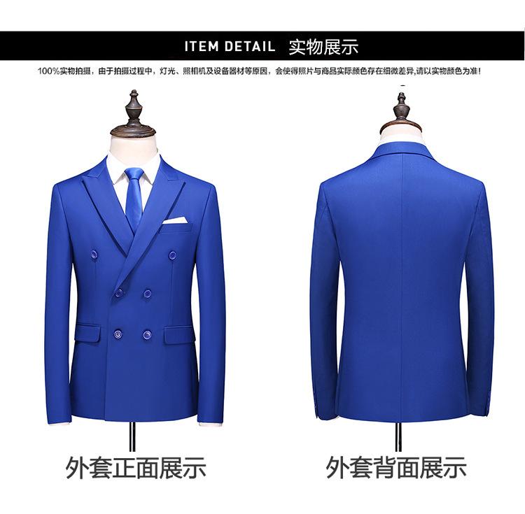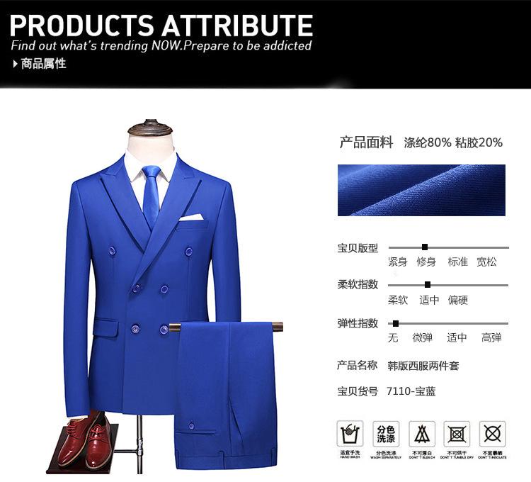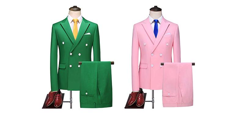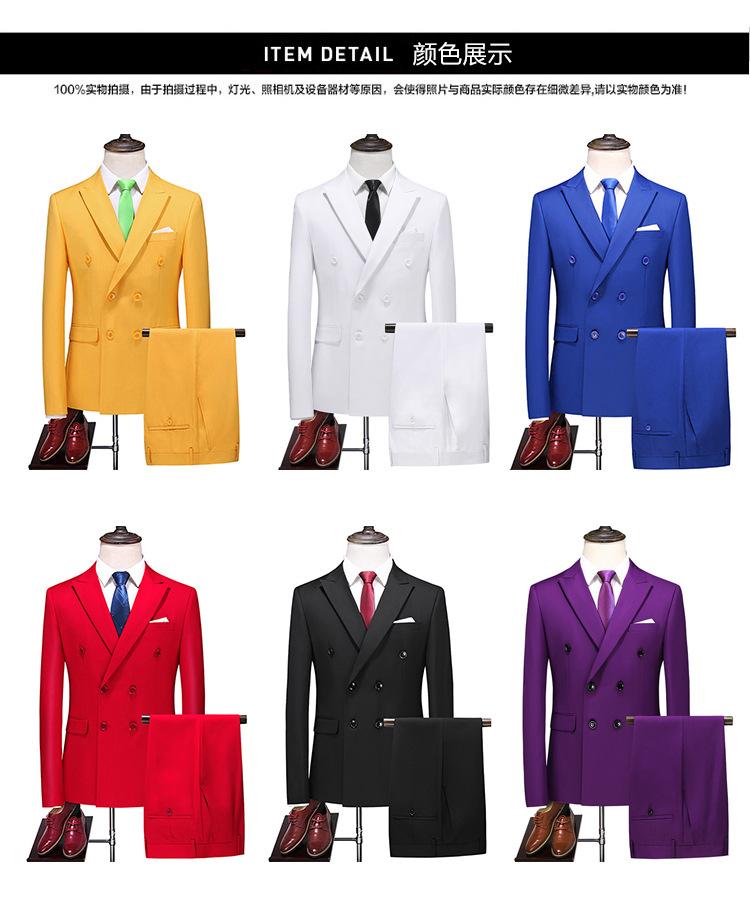 Traje de Talla Grande para Hombre Nuevo Transfronterizo de Comercio Exterior Dos Piezas Doble Botonadura Color Sólido Soporte Traje Británico Slim