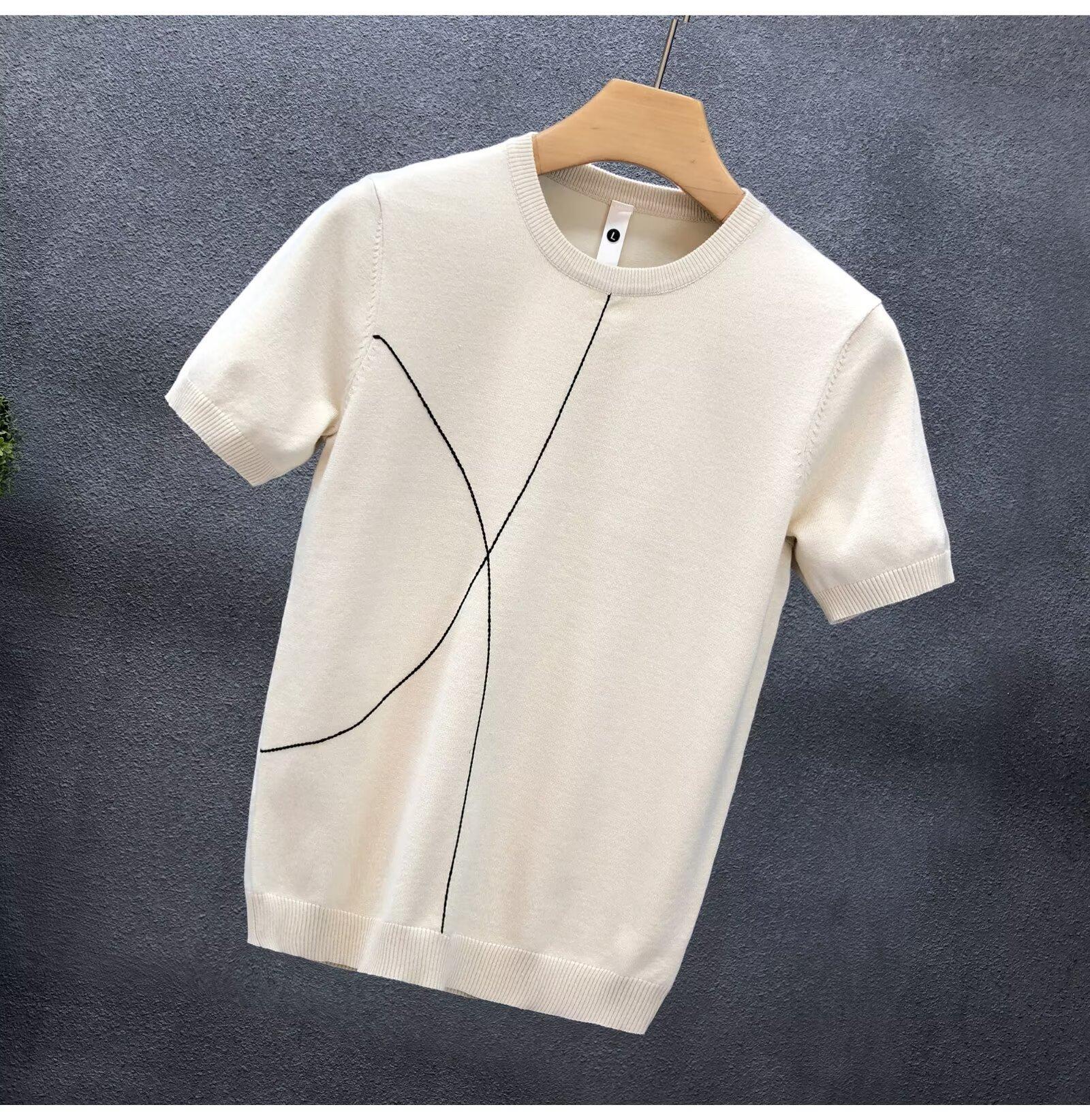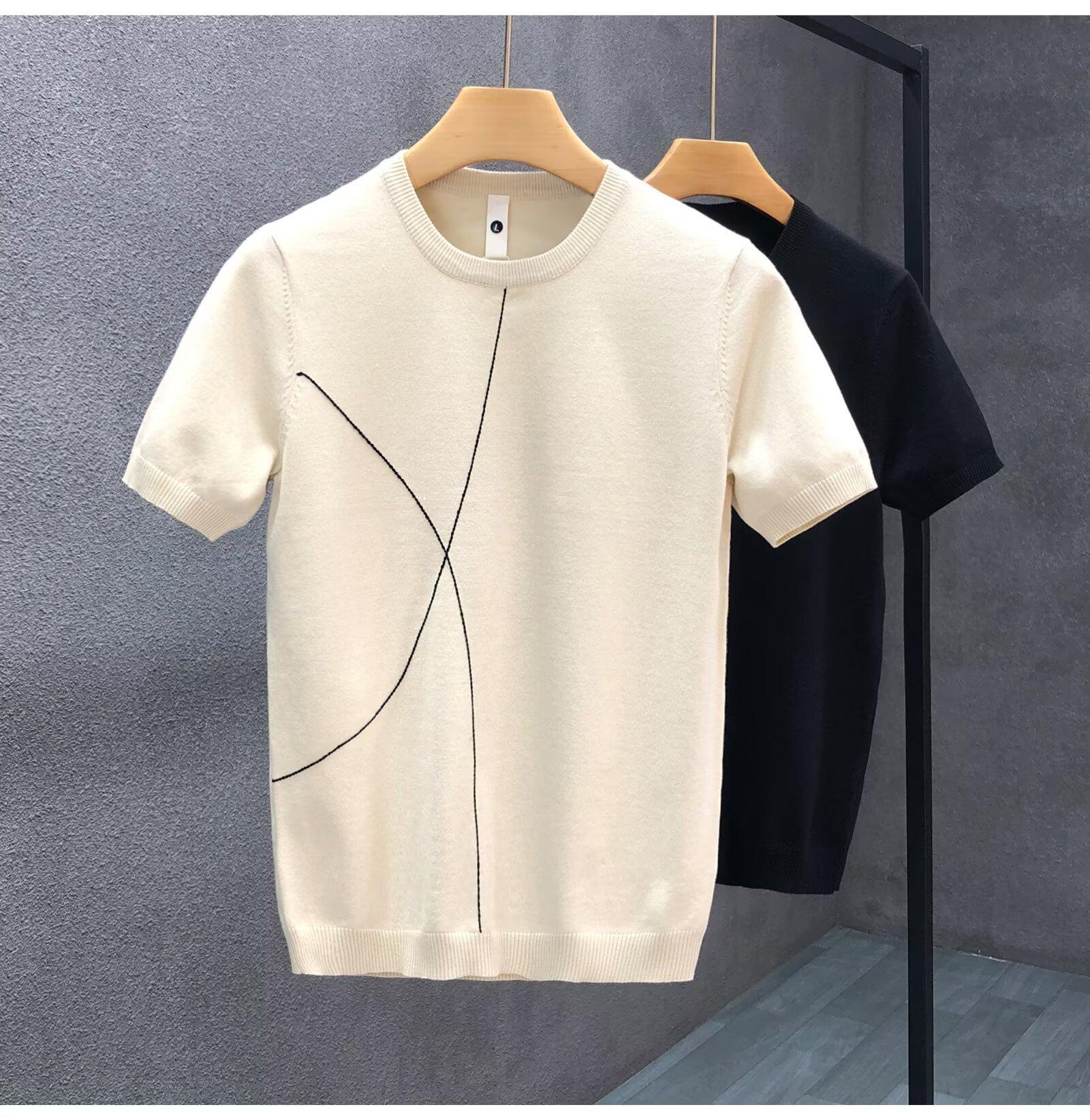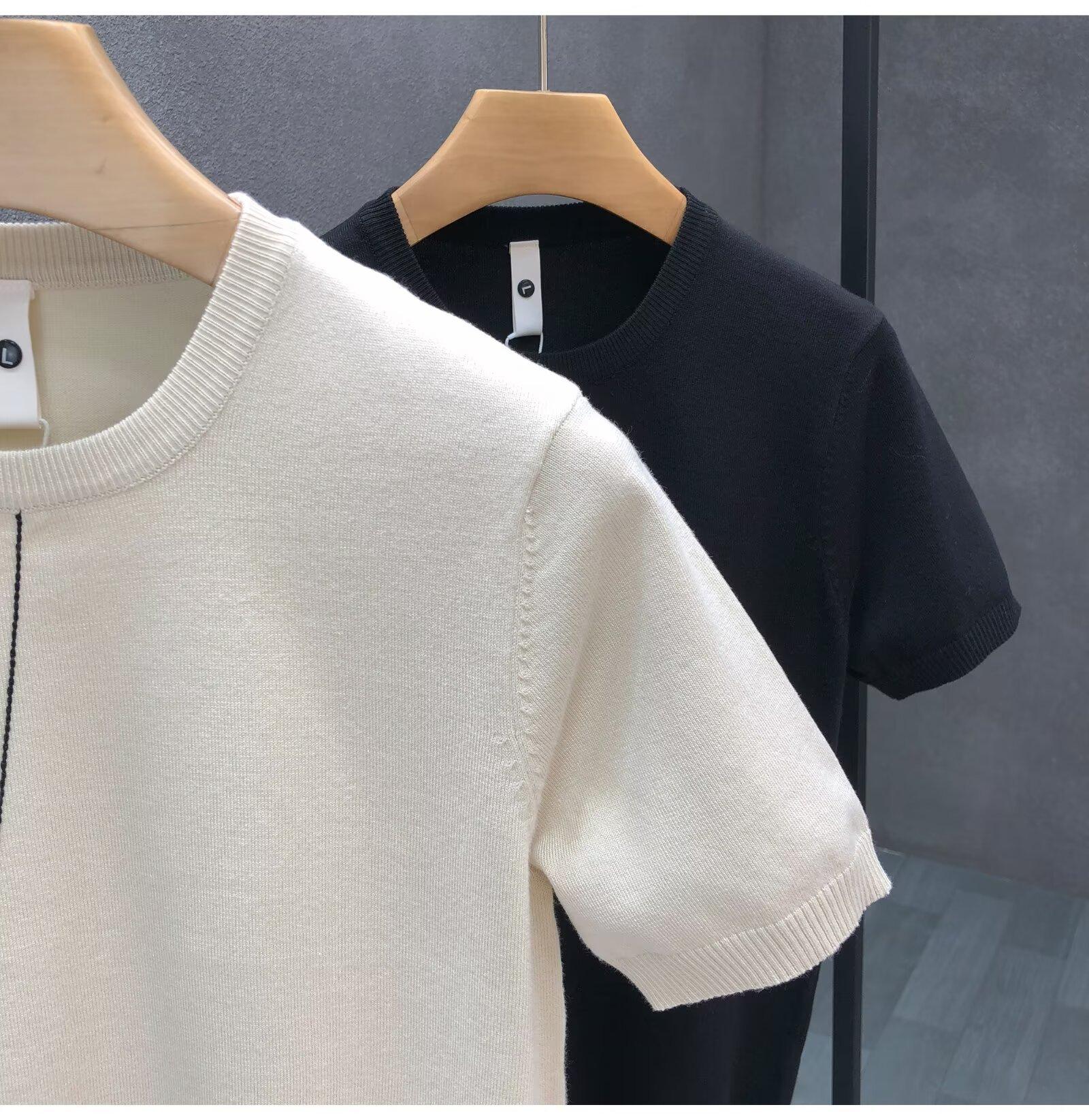 Suéter de Punto de Manga Corta de Seda de Hielo Retro Japonés para Hombre Cuello Redondo Verano Nuevo Suelto Elegante Moderno Camiseta de Media Manga para Hombre