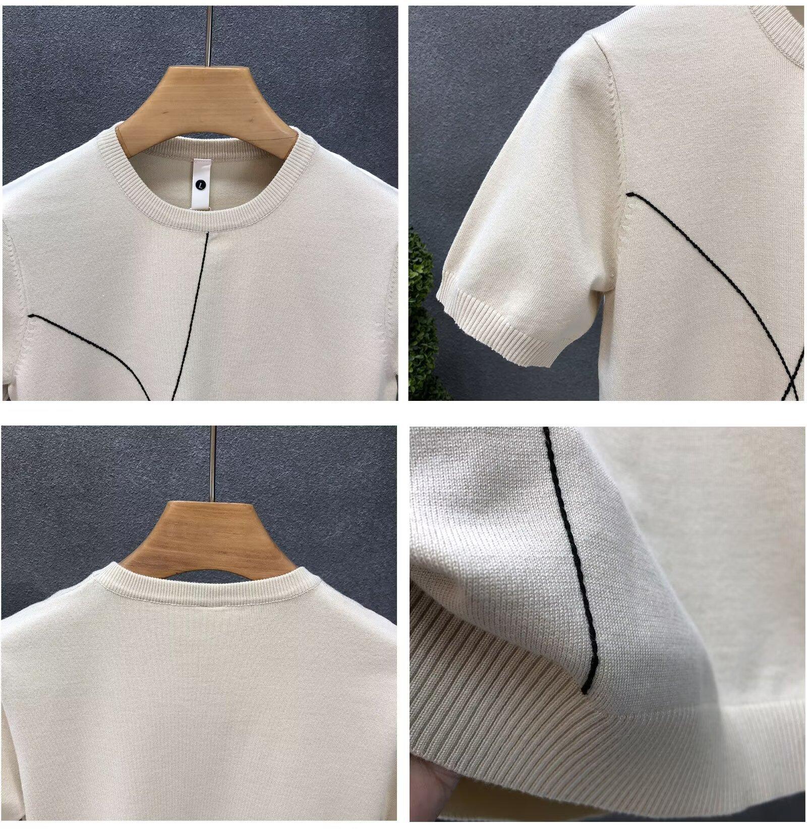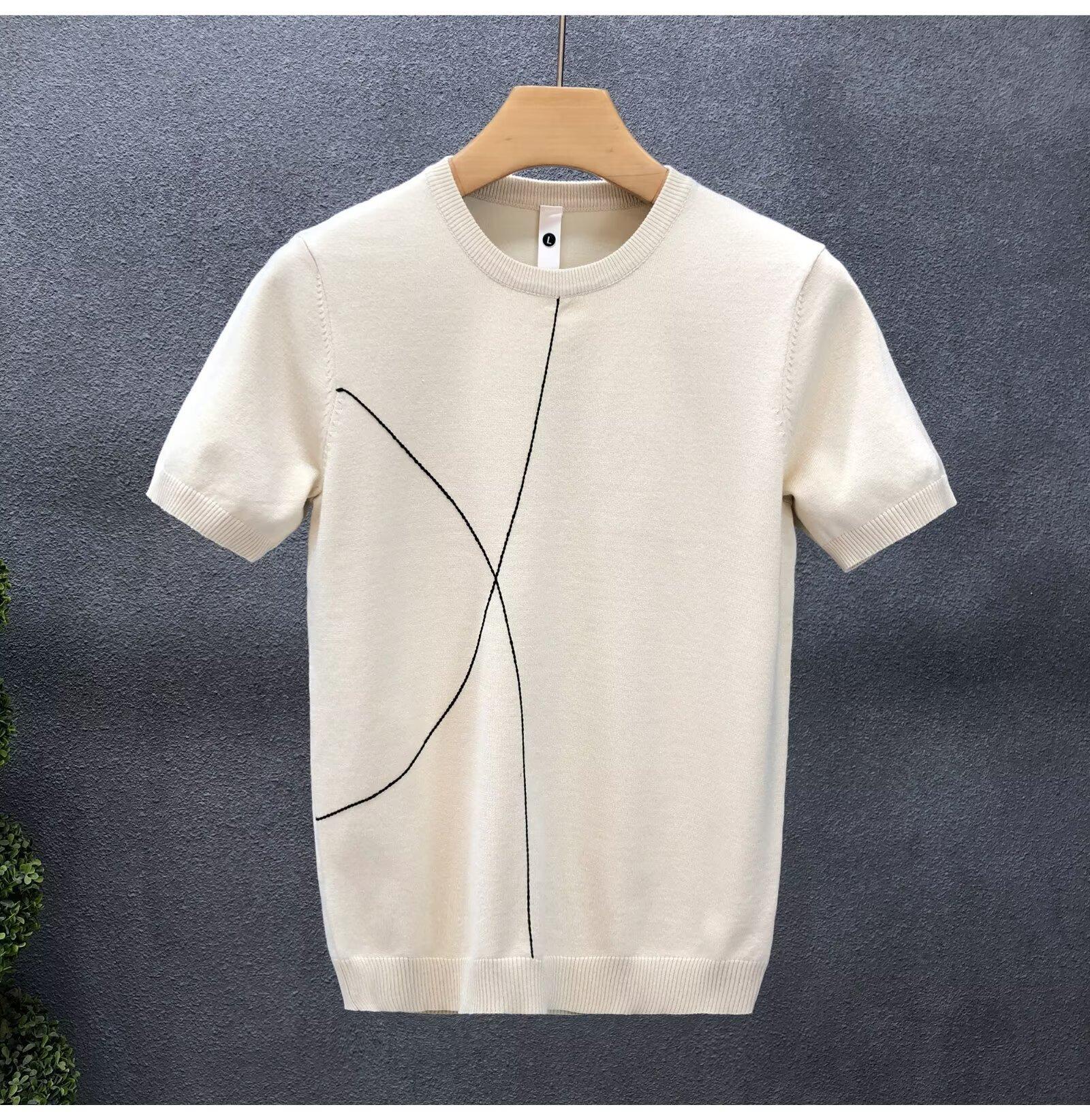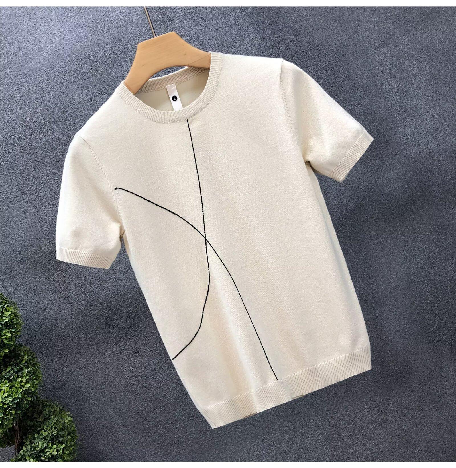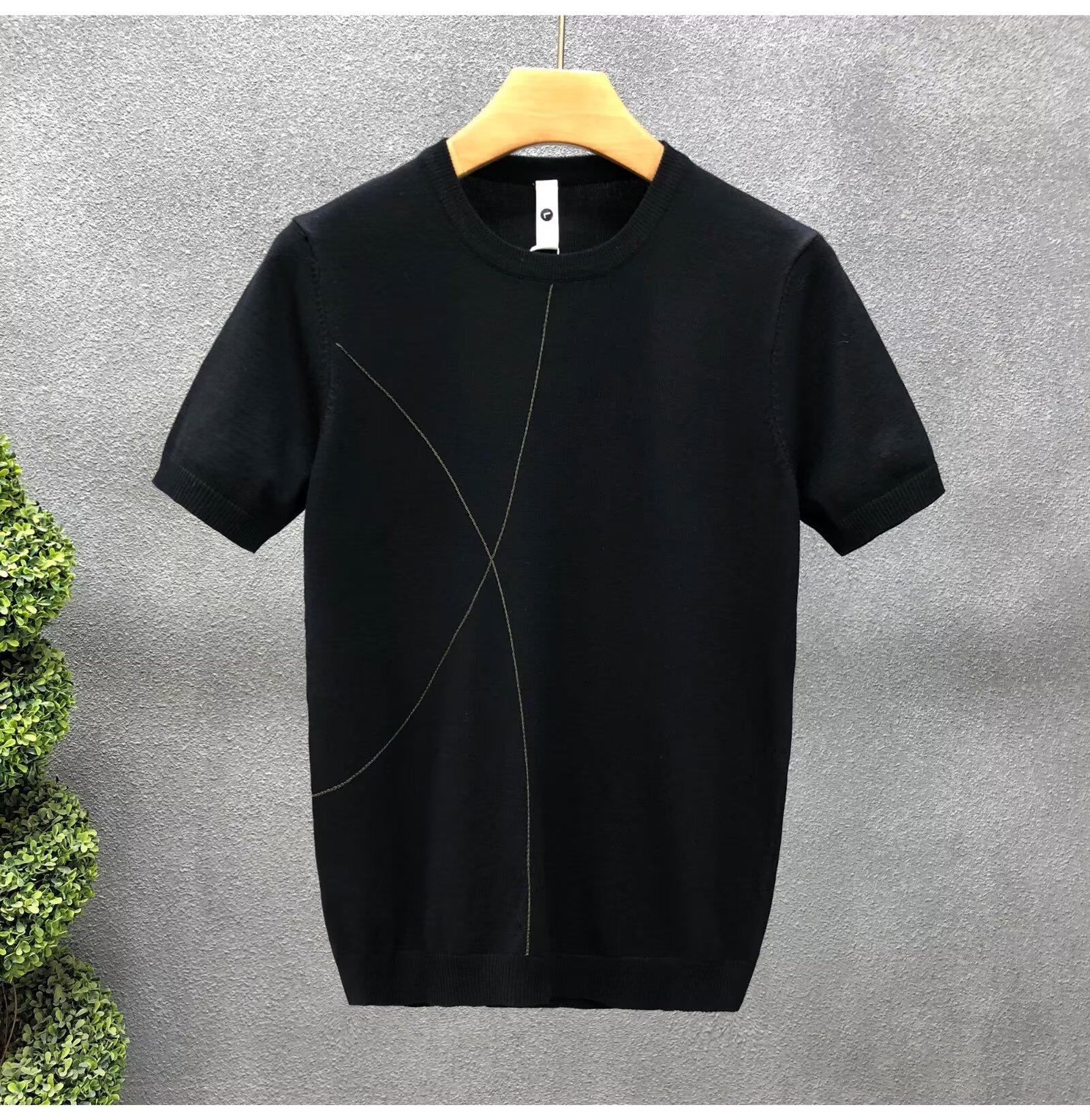 Suéter de Punto de Manga Corta de Seda de Hielo Retro Japonés para Hombre Cuello Redondo Verano Nuevo Suelto Elegante Moderno Camiseta de Media Manga para Hombre