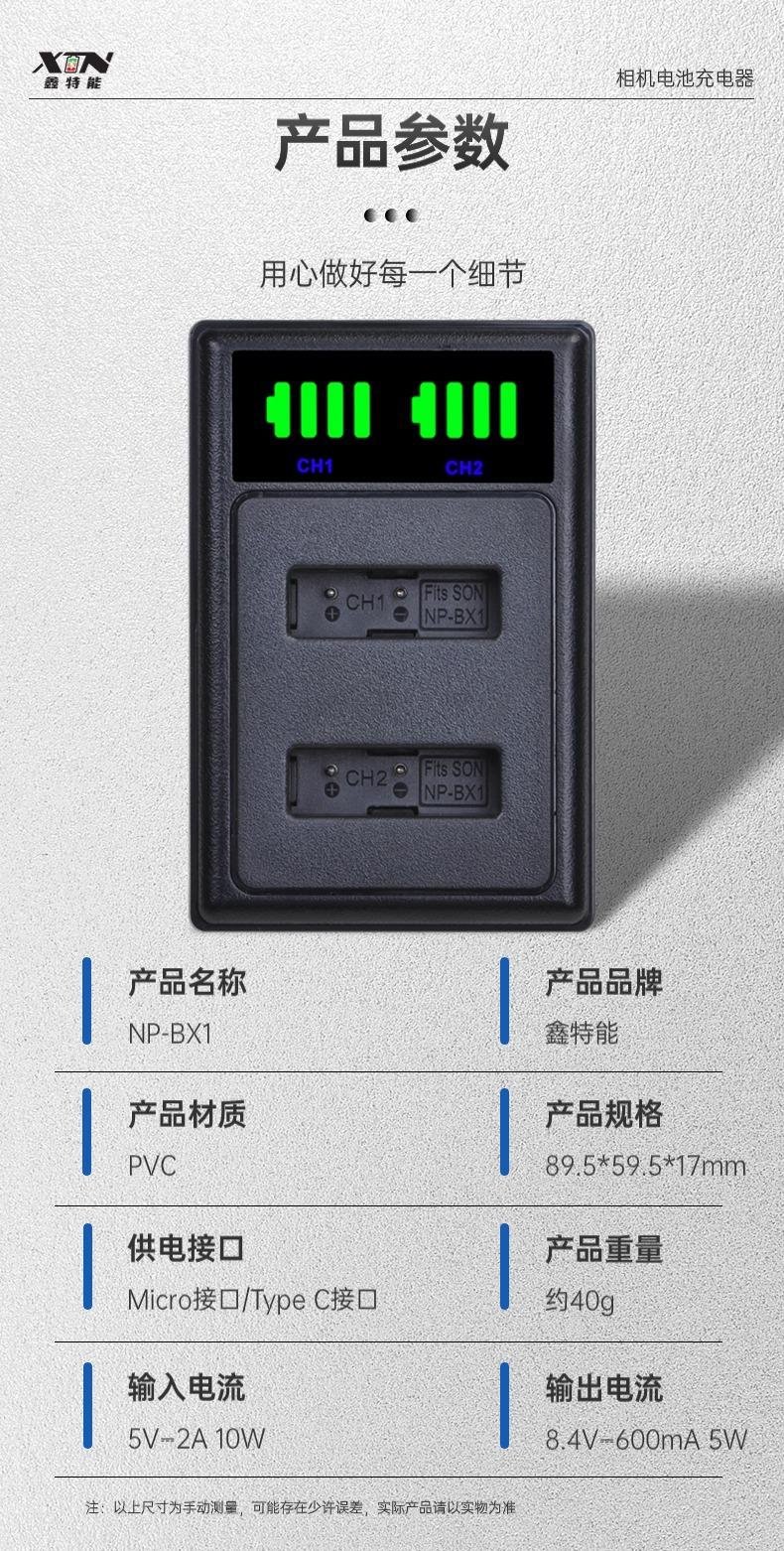 Adecuado para Batería de Cámara Sony np-bx1 Juego de Cargador Negro Tarjeta zv1 RX100 HX50 Carga Rápida
