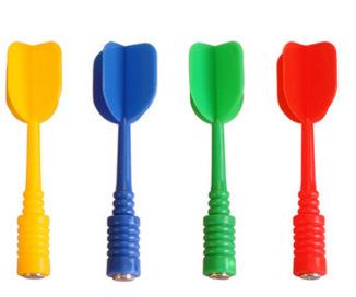 3: Accesorios: dardos magnéticos rojos, amarillos, azules, verdes