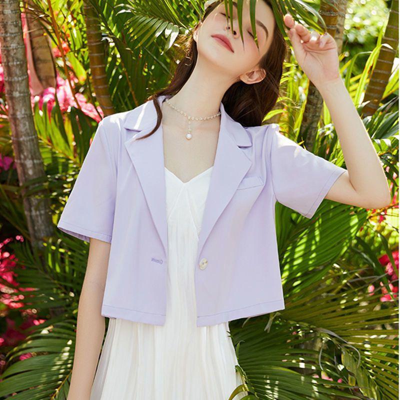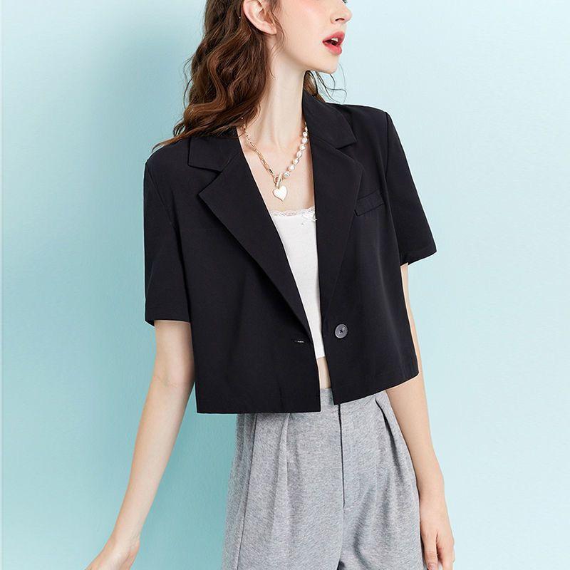 Chaqueta de Traje Pequeña Delgada de Manga Corta para Mujer Petite Estilo Corto 2025 Nuevo Verano Tendencia Nicho Francés ins Top