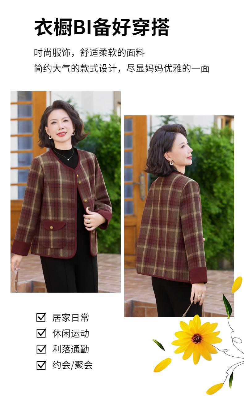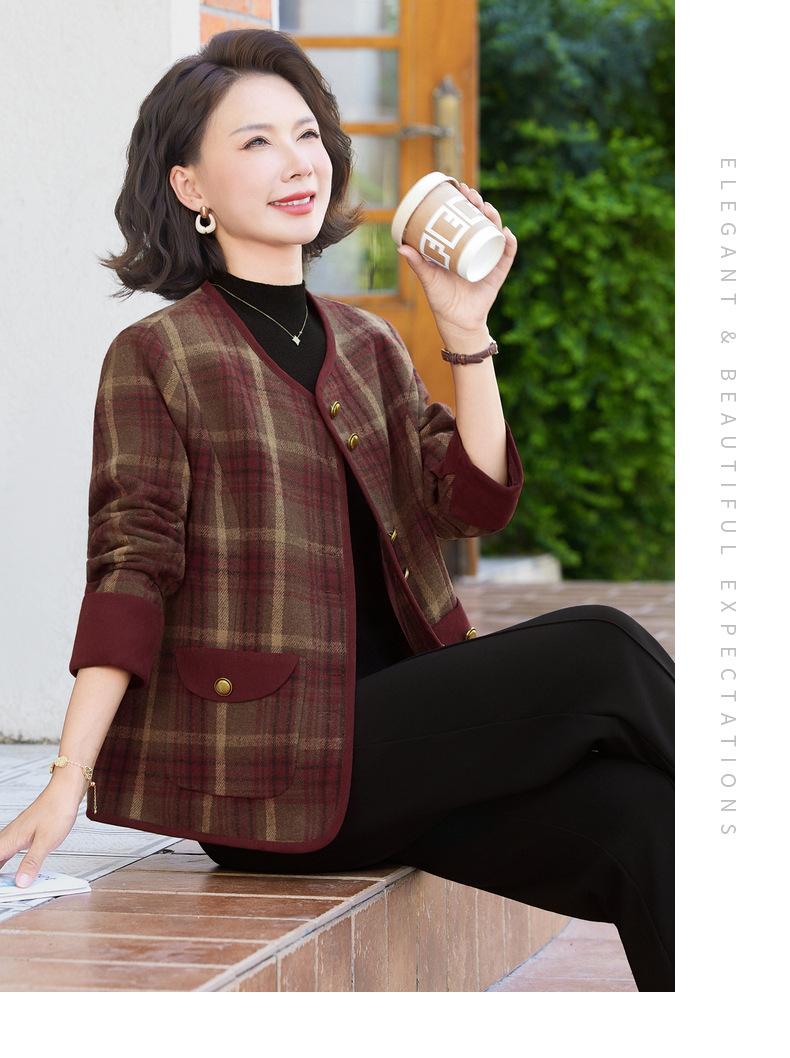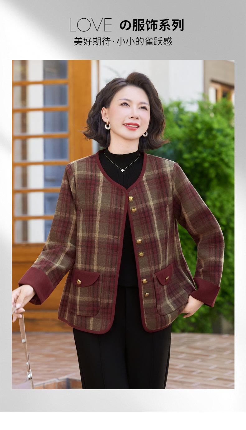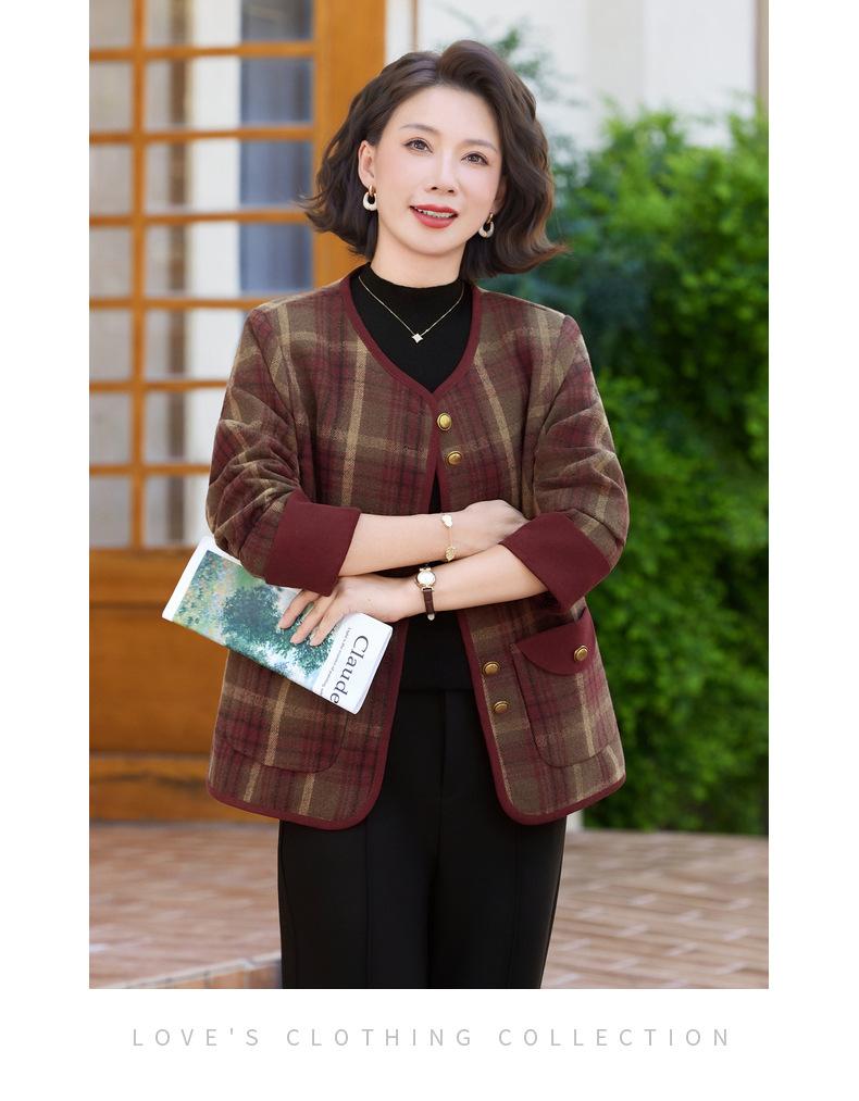 Ropa de Moda de Primavera y Otoño para Mamá, Elegante Holgada Nueva Llegada, Chaqueta de Moda, Chaqueta, Top, Abrigo de Cuadros para Mujeres de Mediana Edad y Mayores