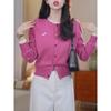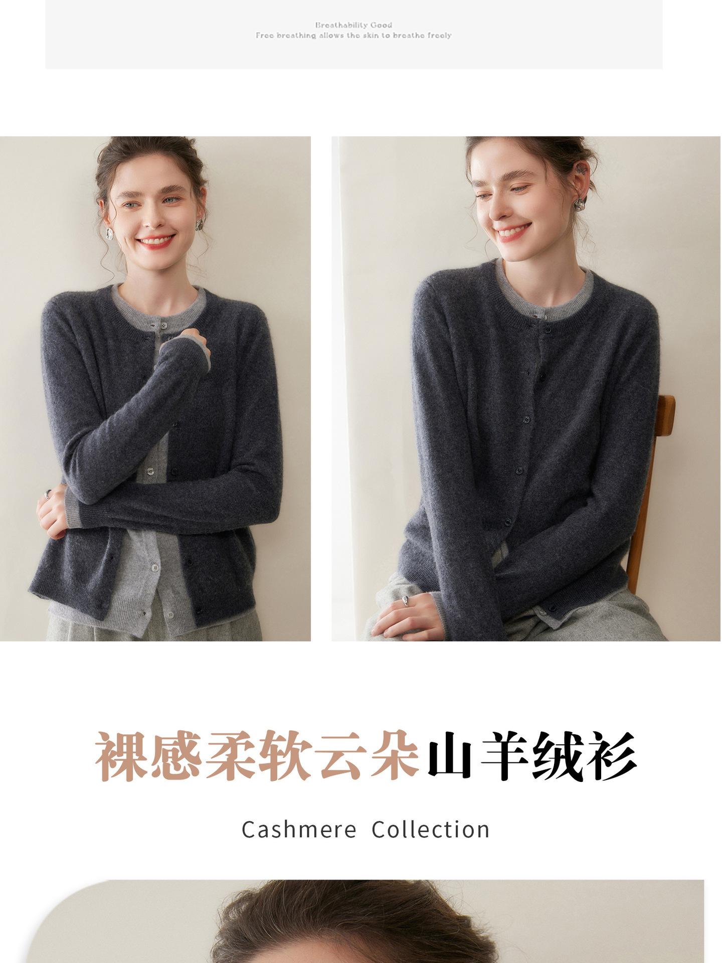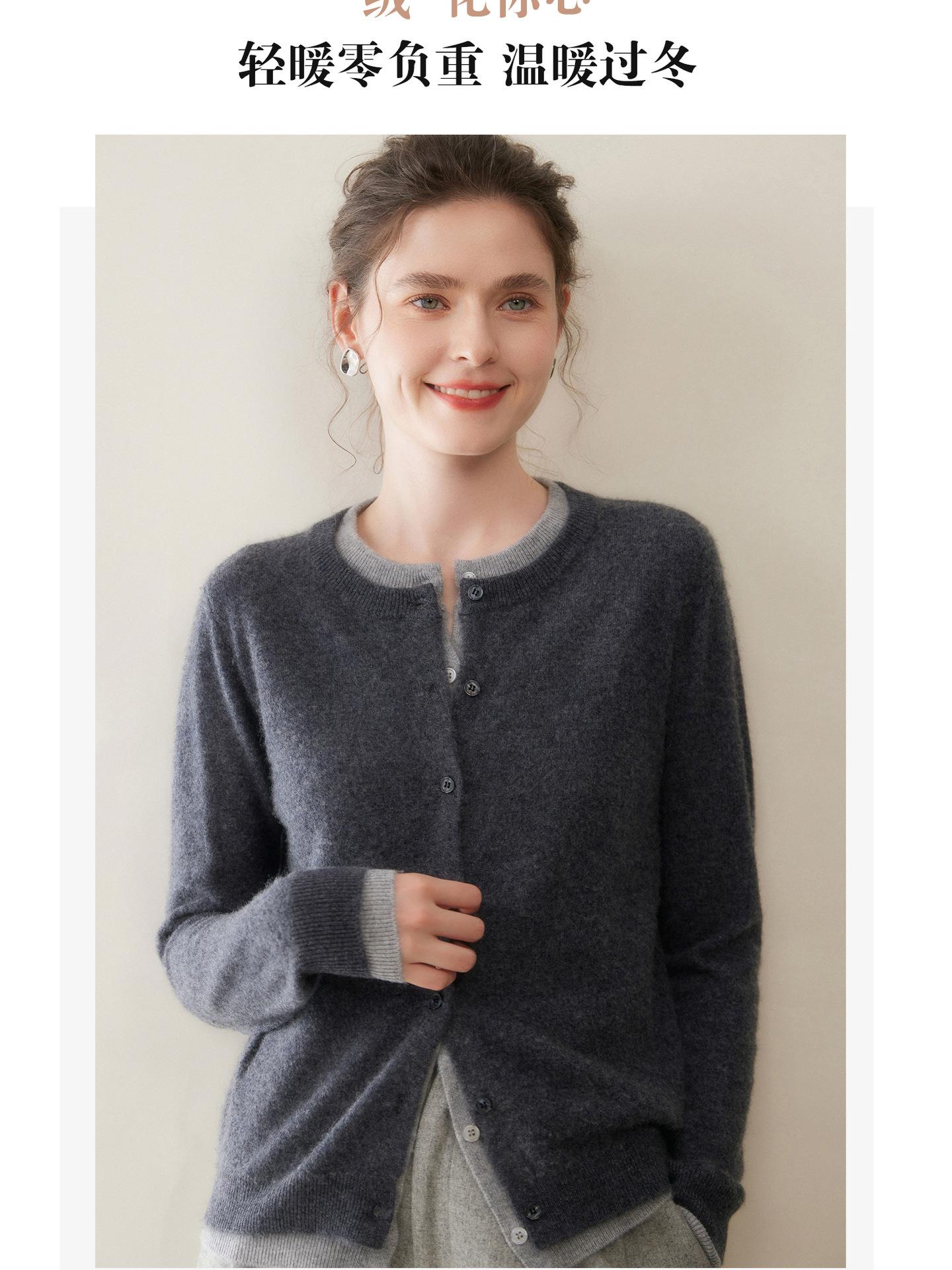 Cárdigan de punto gris de dos piezas falsas con bloques de color, abrigo para mujer, suéter exterior, otoño e invierno, nuevo temperamento, suéter de cachemira, top