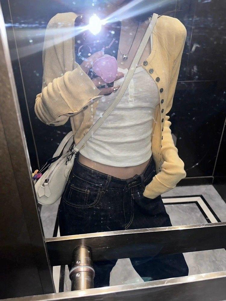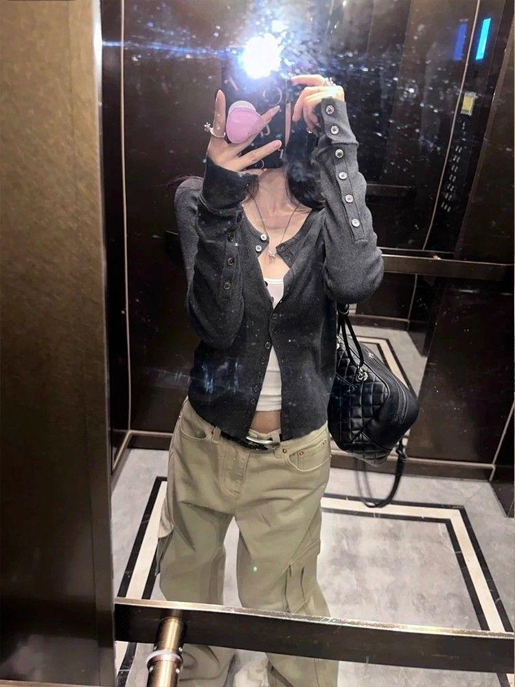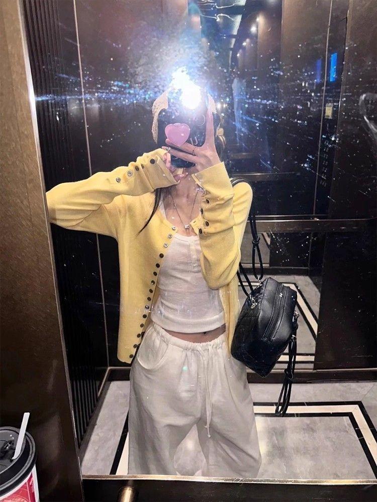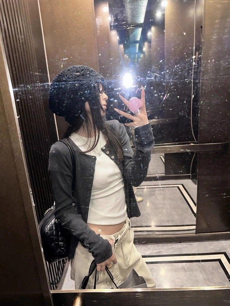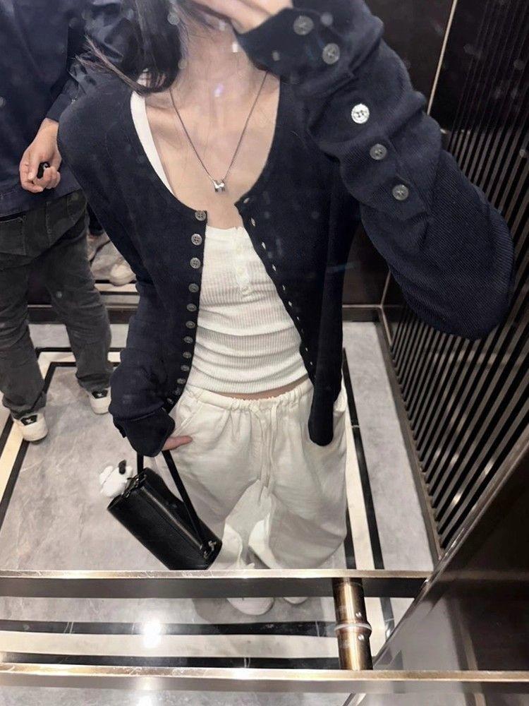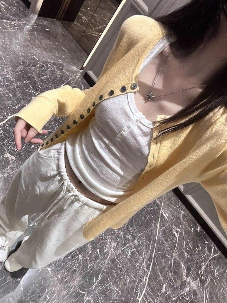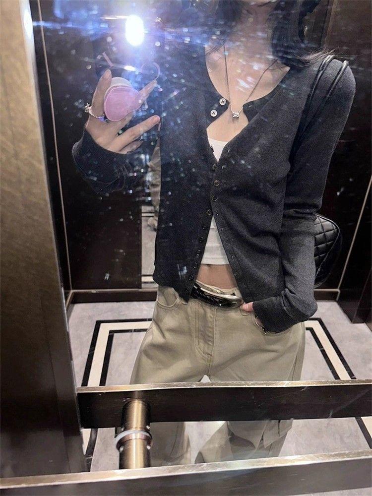 Cárdigan Suéter Tejido Otoño Nuevo Coreano Mambo Menta Suave Adelgazante Simple Moda