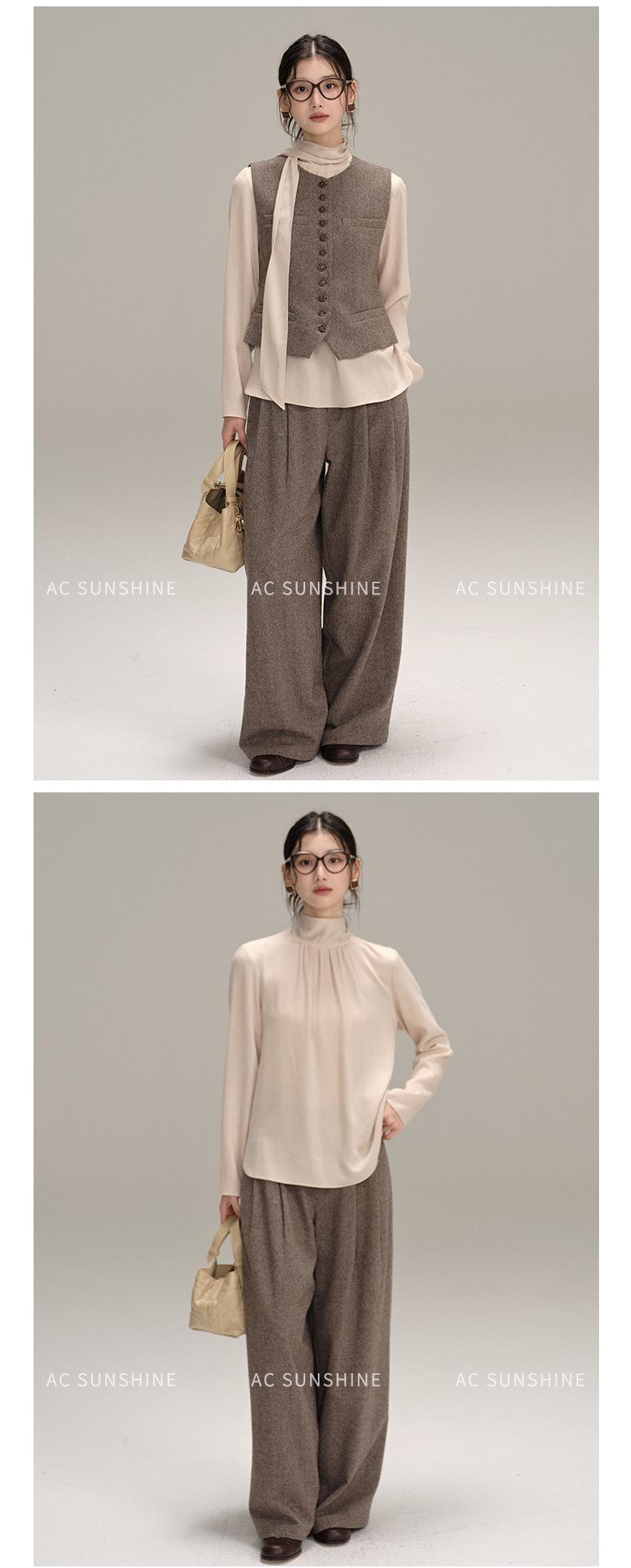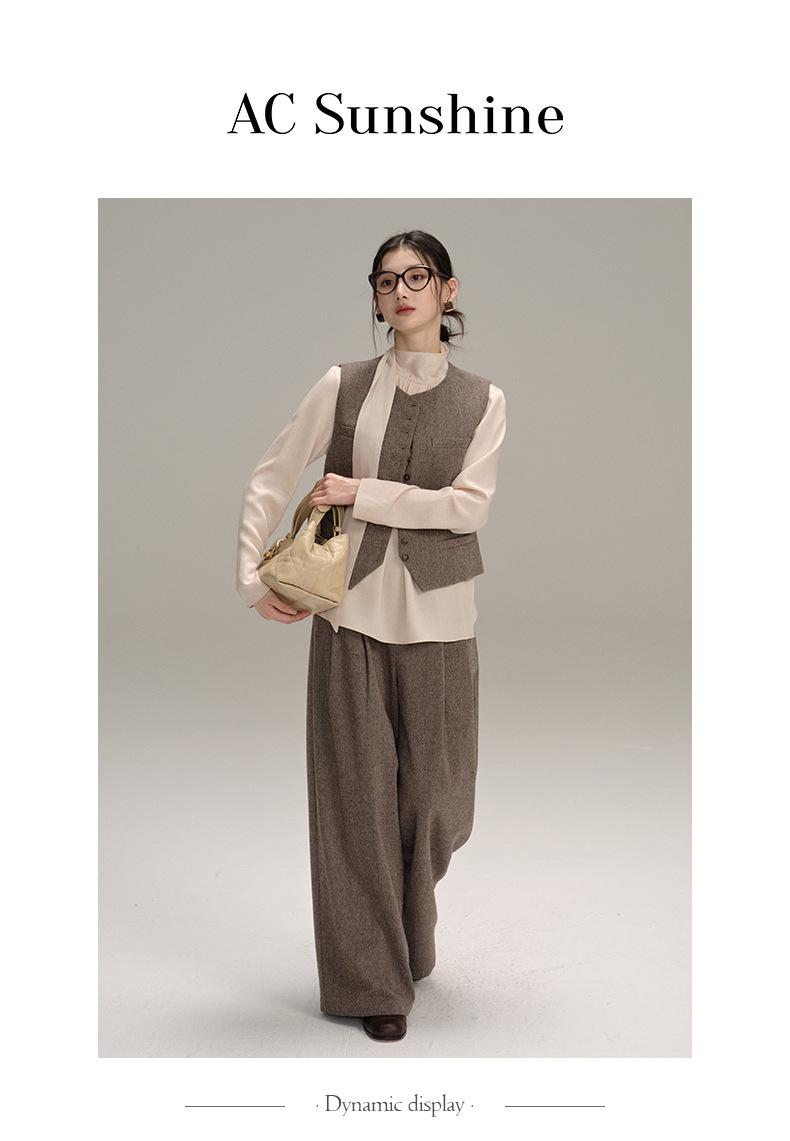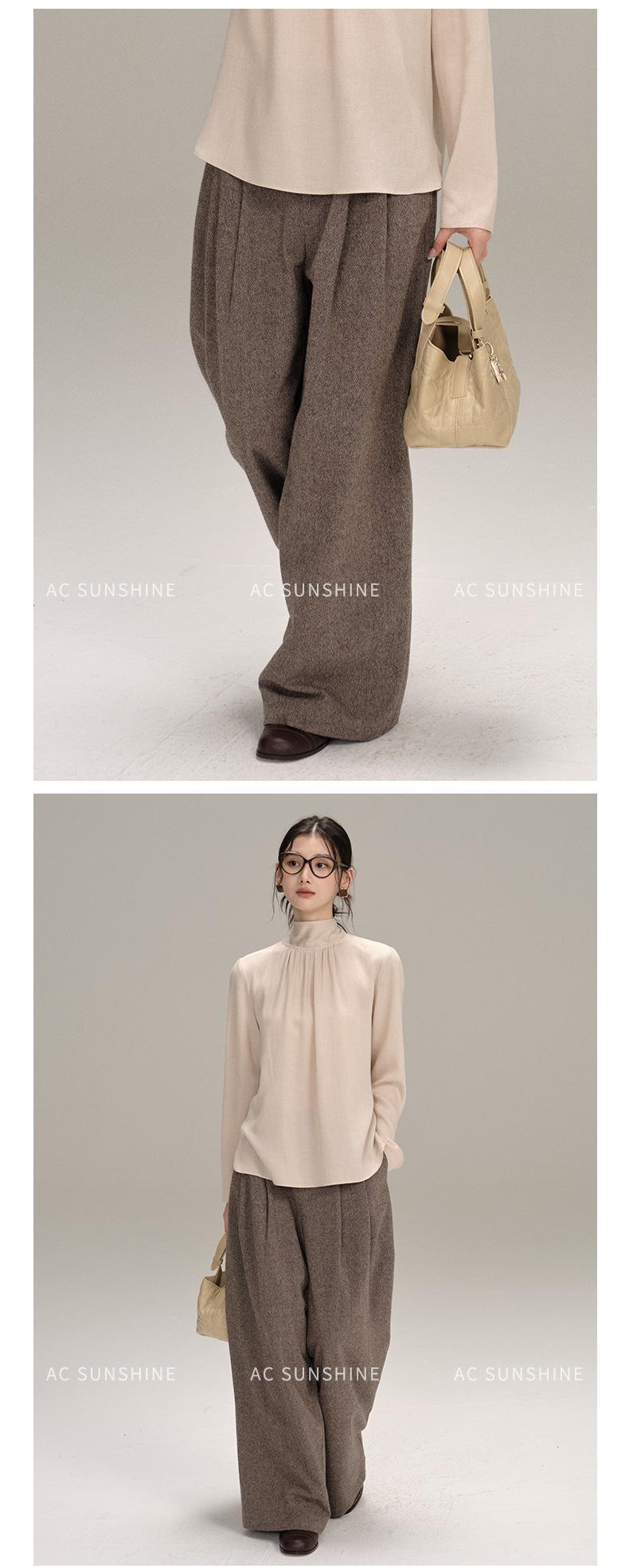Pantalones Casuales de Pierna Ancha Mezcla de Lana AC para Mujer Nuevos de Cintura Alta Adelgazantes Versátiles para Ir al Trabajo Pantalones Largos H8126