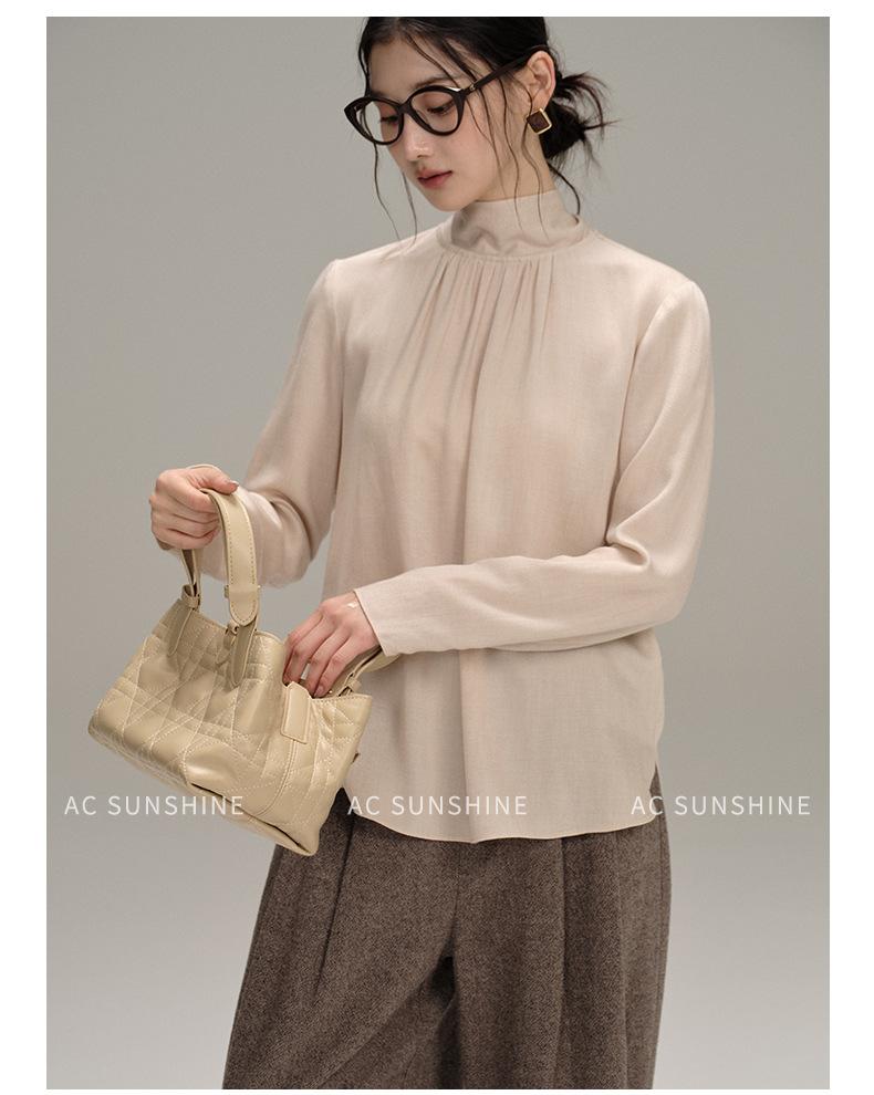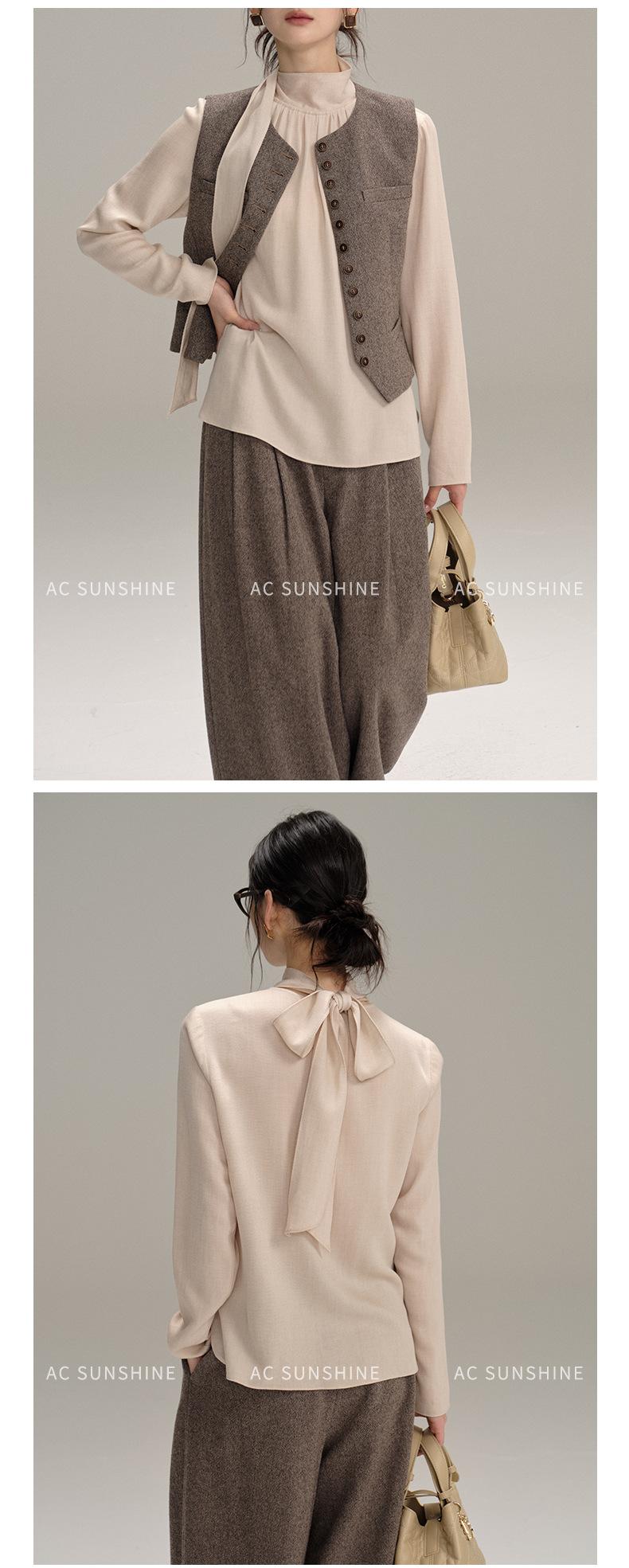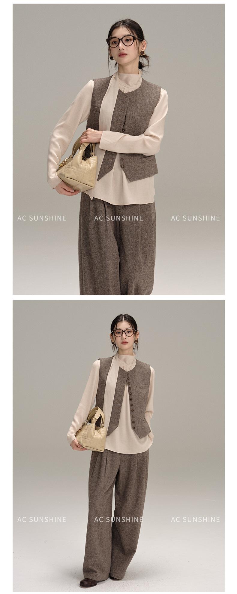 Pantalones Casuales de Pierna Ancha Mezcla de Lana AC para Mujer Nuevos de Cintura Alta Adelgazantes Versátiles para Ir al Trabajo Pantalones Largos H8126