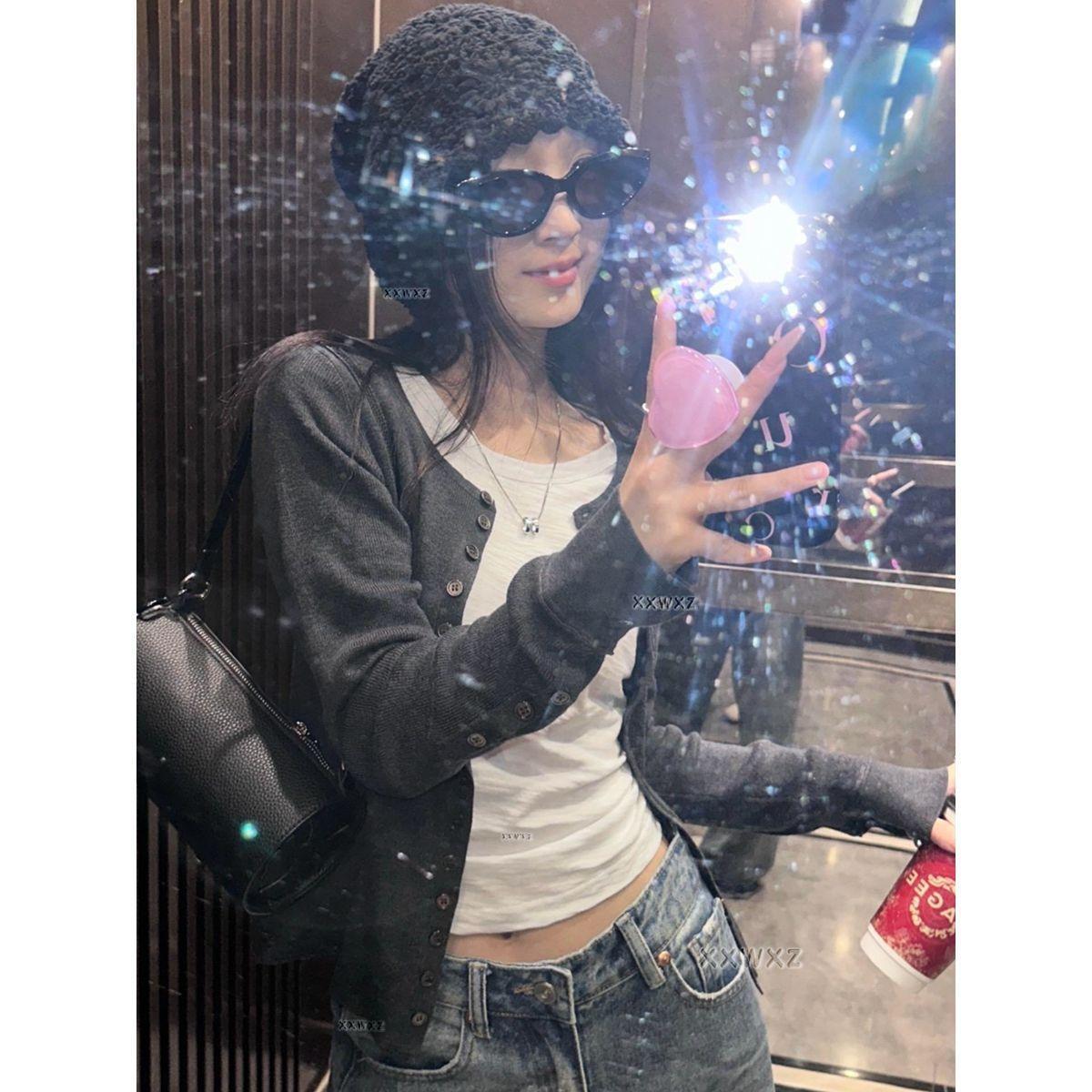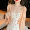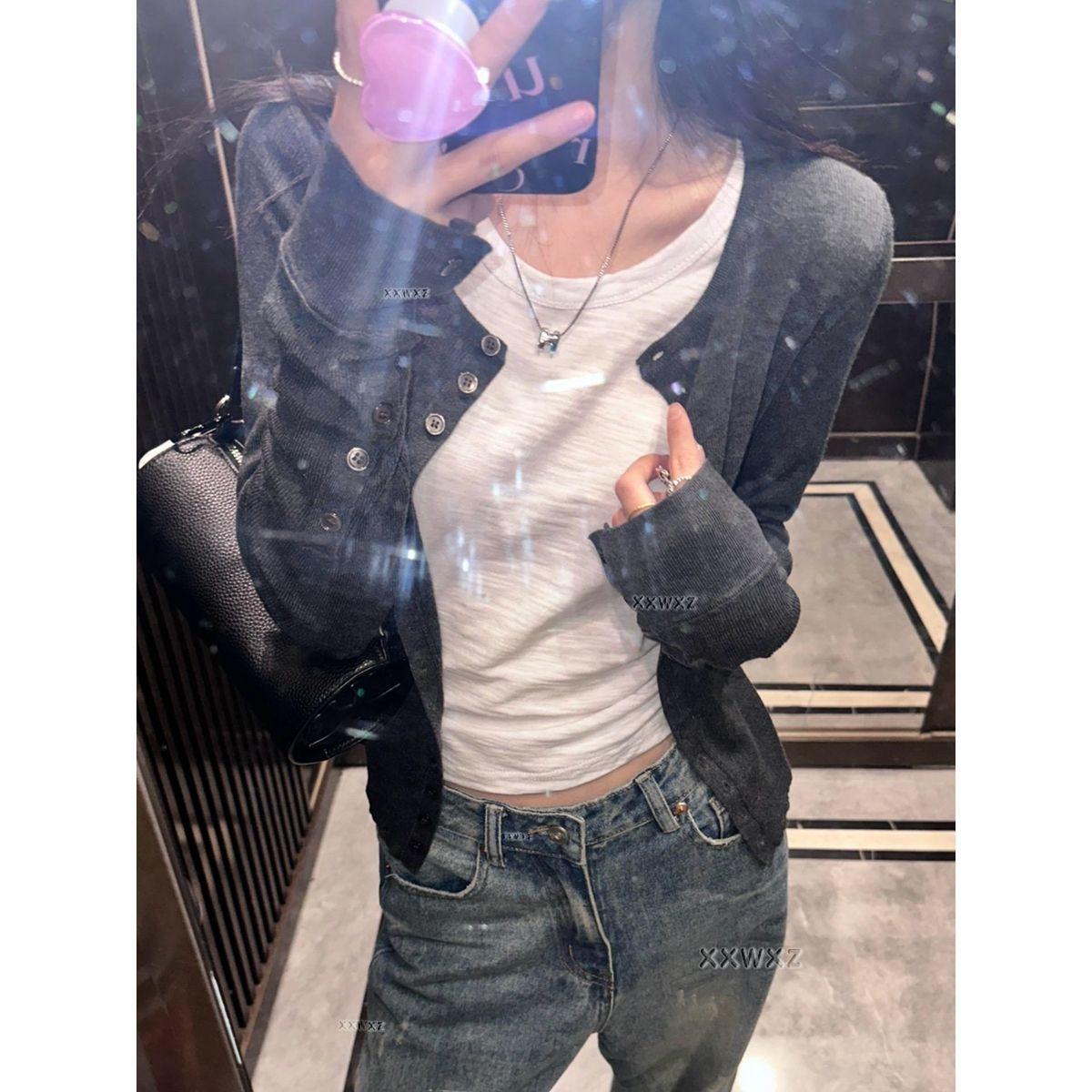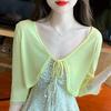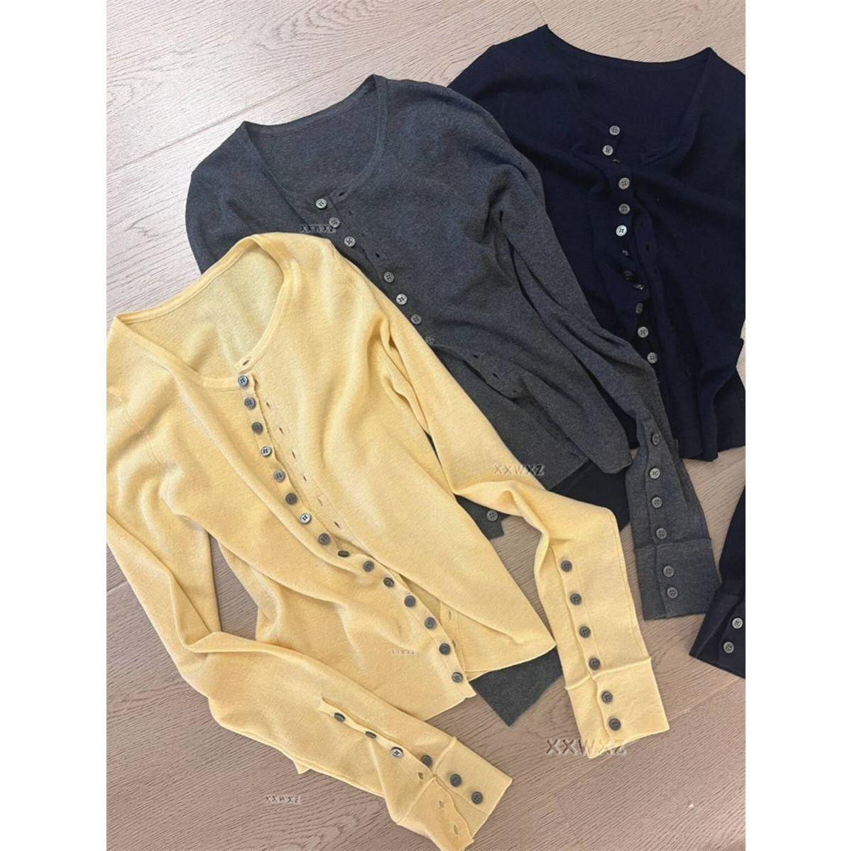 Cárdigan de Cuello Redondo y Hombro Recto Tejido de Manga Larga Adelgazante para Mujer 2025 Chal Protector Solar Camisa para Aire Acondicionado Top Chaqueta Amarilla