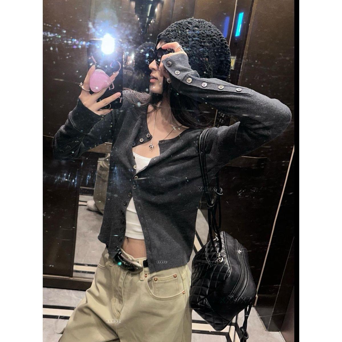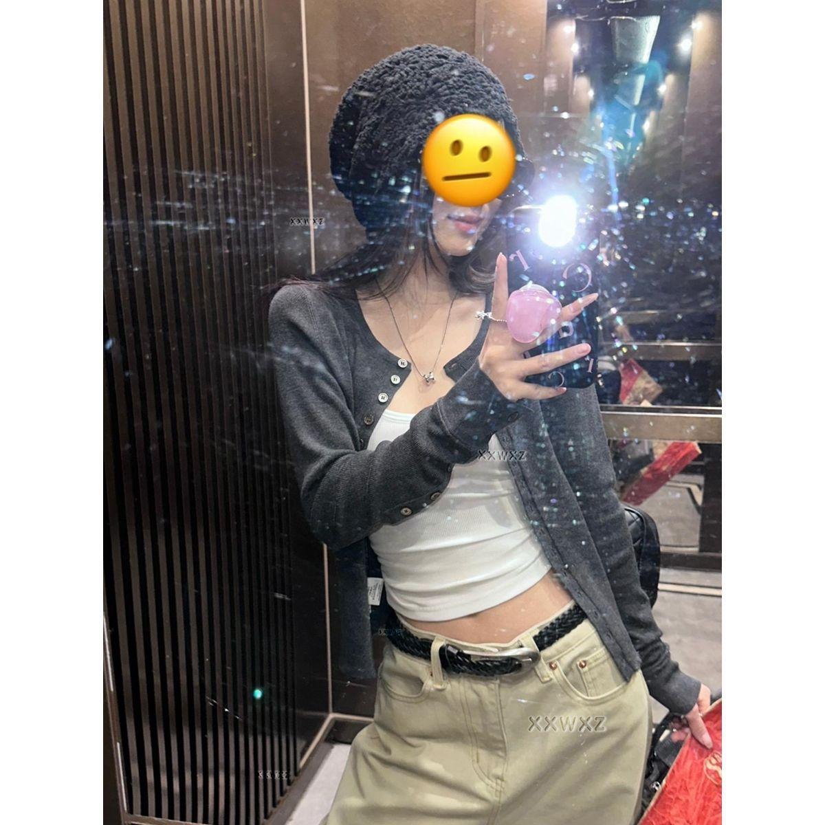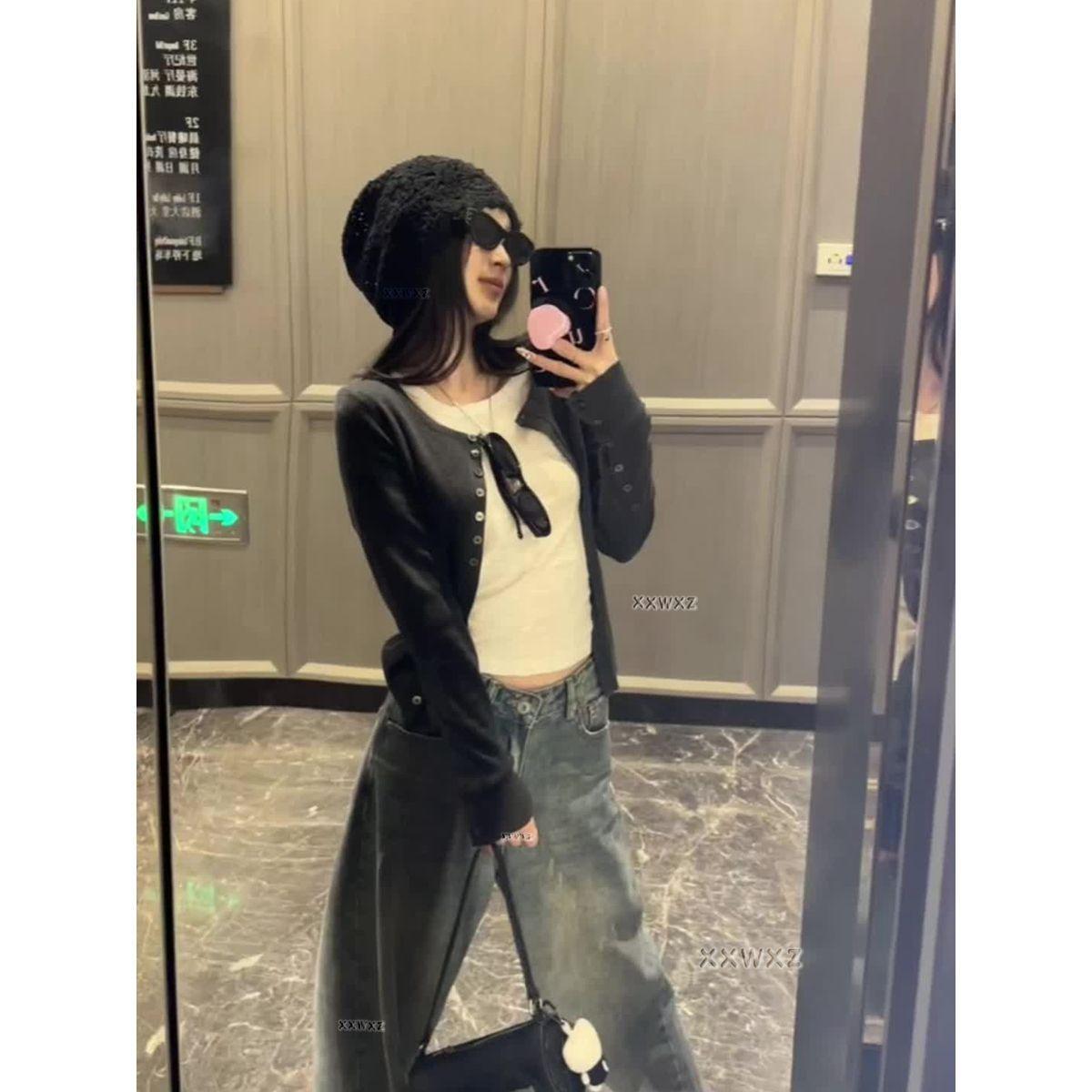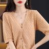 Cárdigan de Cuello Redondo y Hombro Recto Tejido de Manga Larga Adelgazante para Mujer 2025 Chal Protector Solar Camisa para Aire Acondicionado Top Chaqueta Amarilla