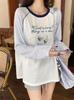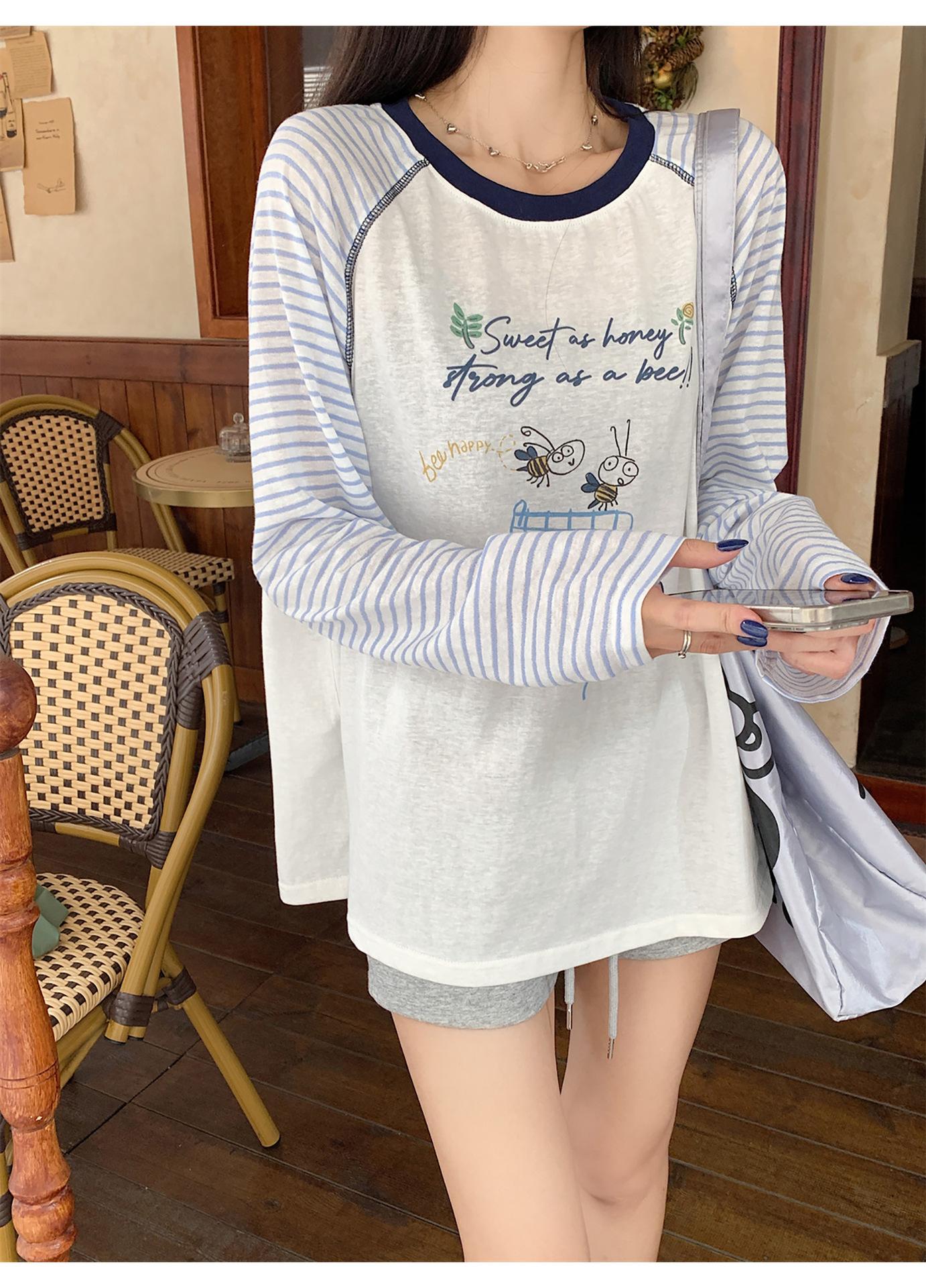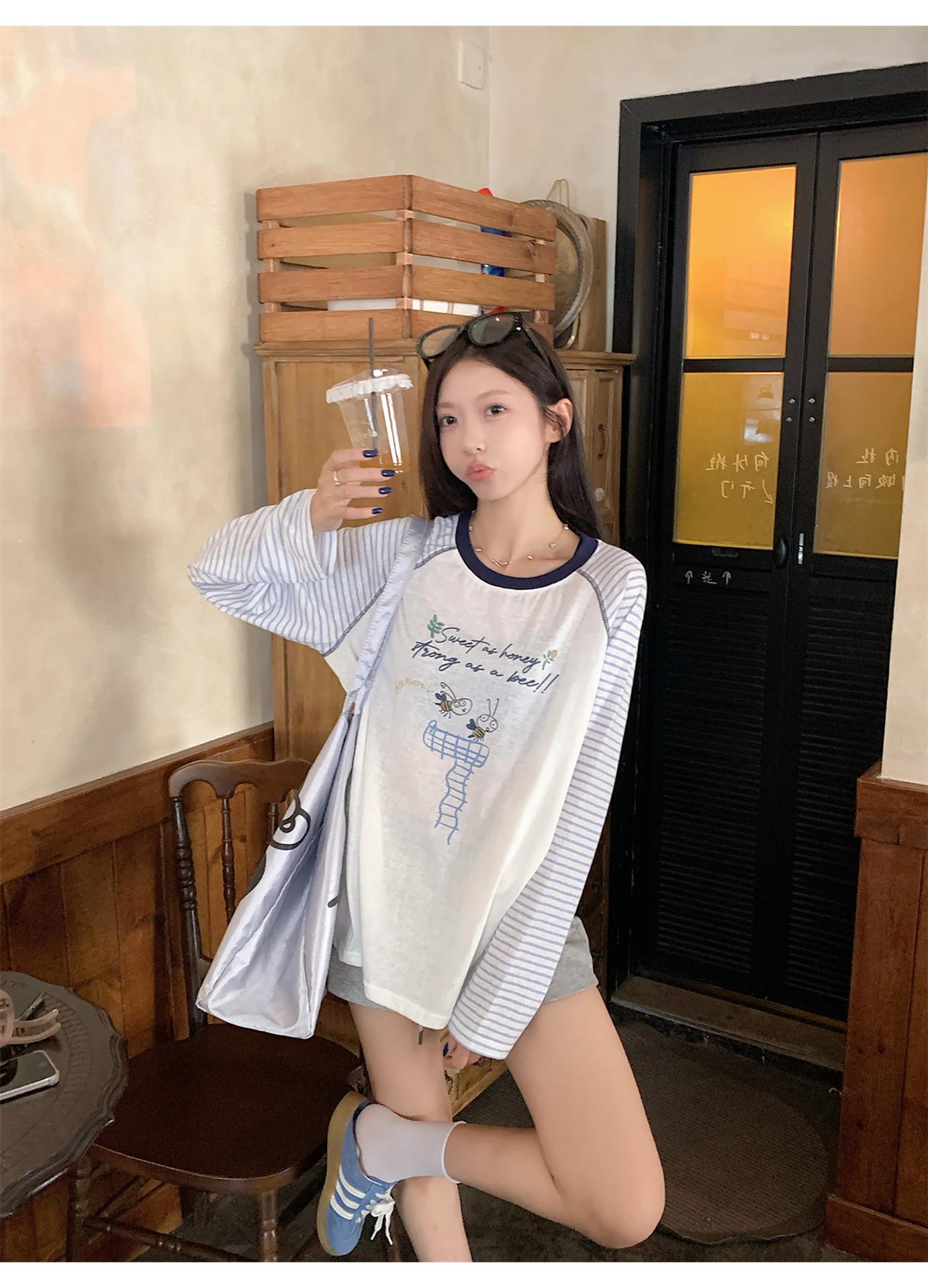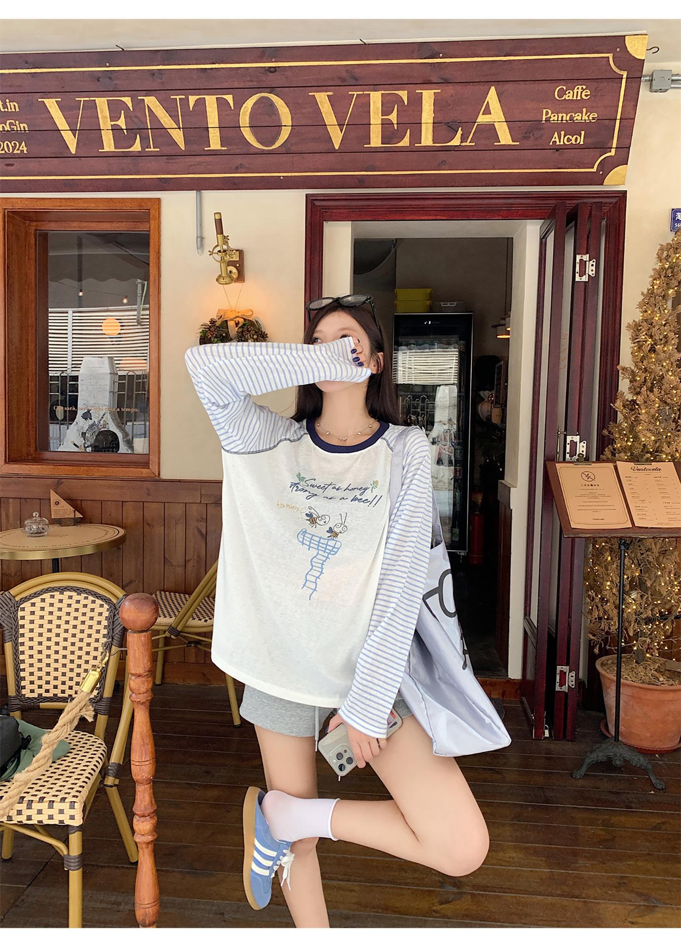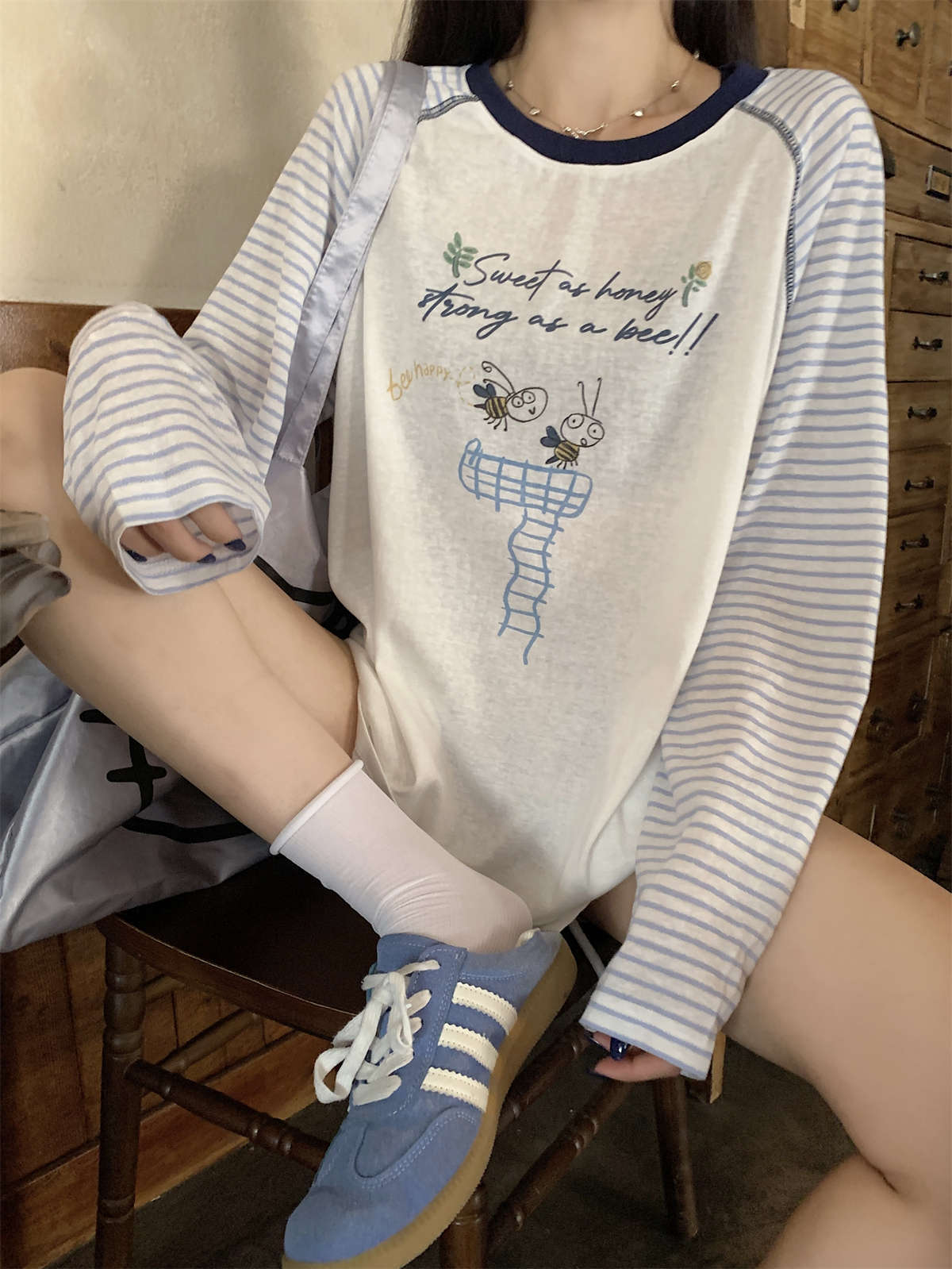 Principios de la Primavera 2025 Estilo Coreano Suelto Perezoso Bloque de Color Rayado Manga Raglán Estampado Reductor de Edad Jersey Camiseta de Manga Larga Top Mujer