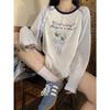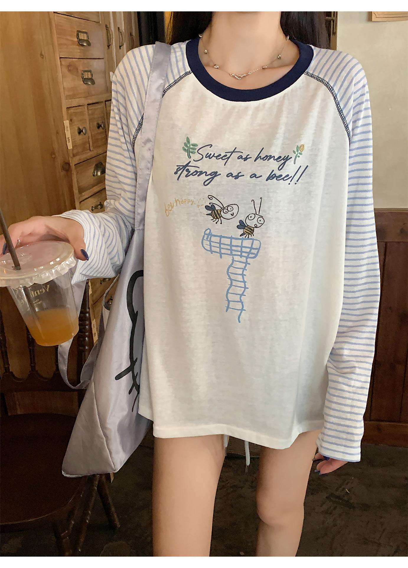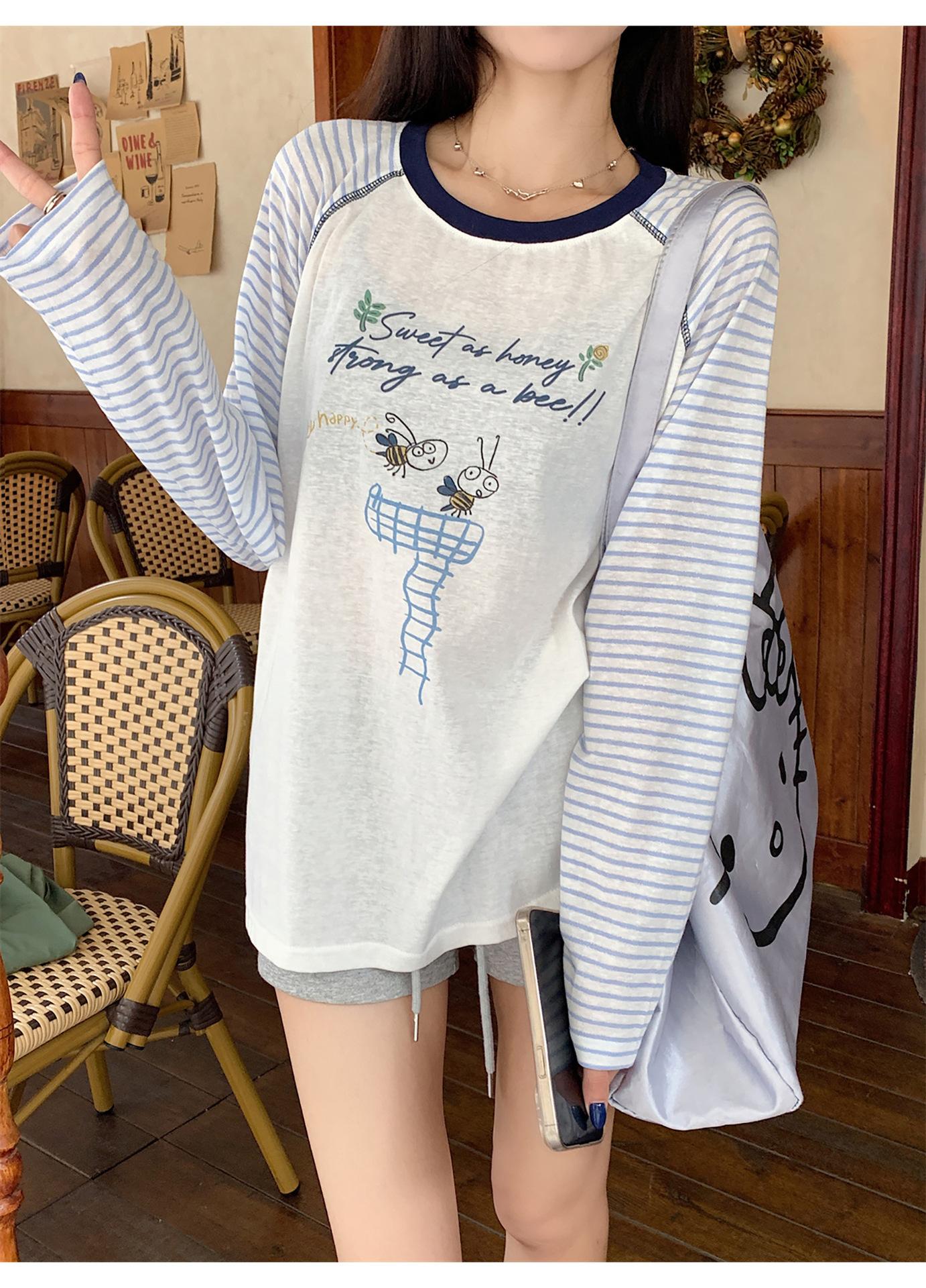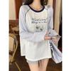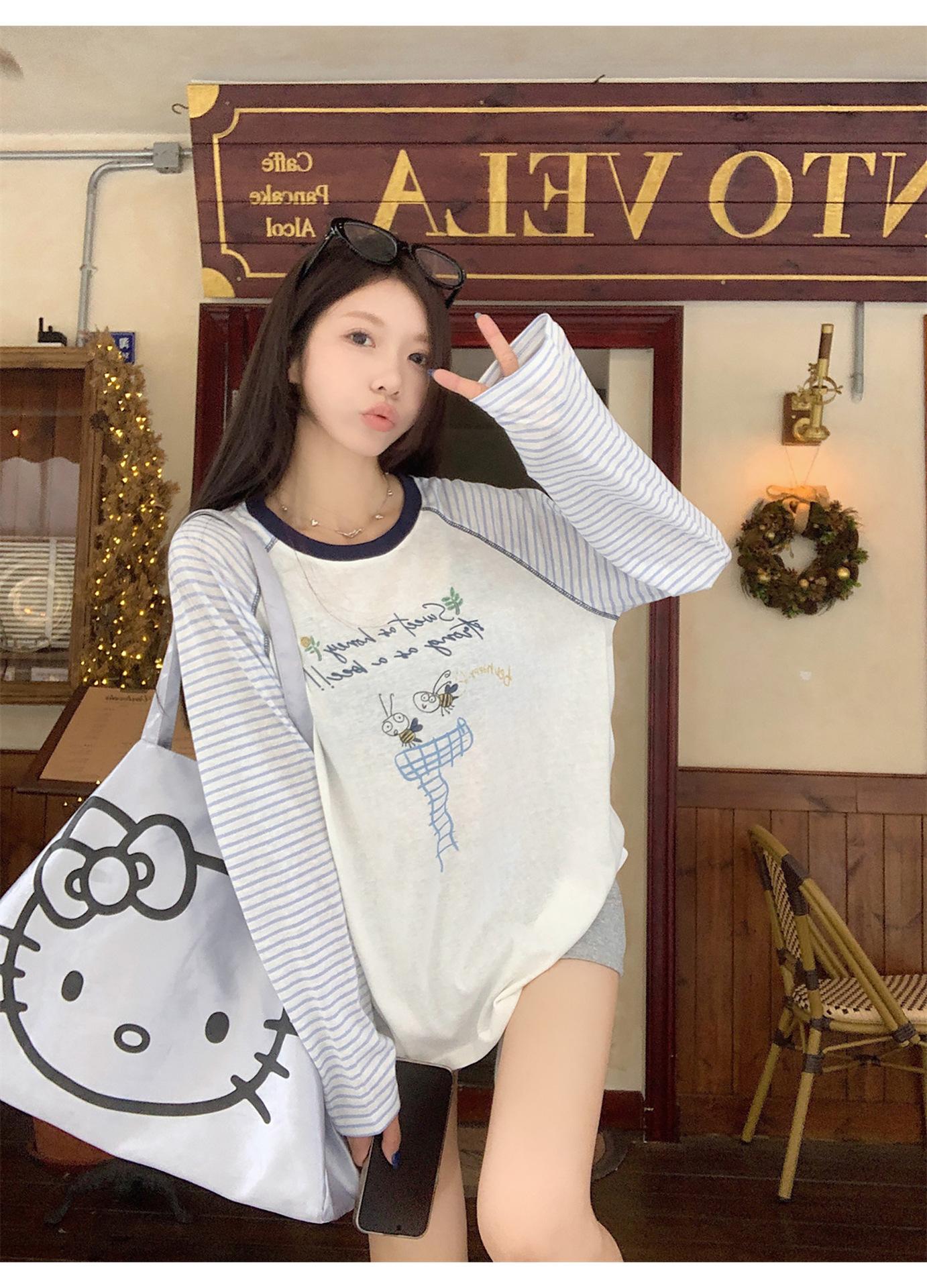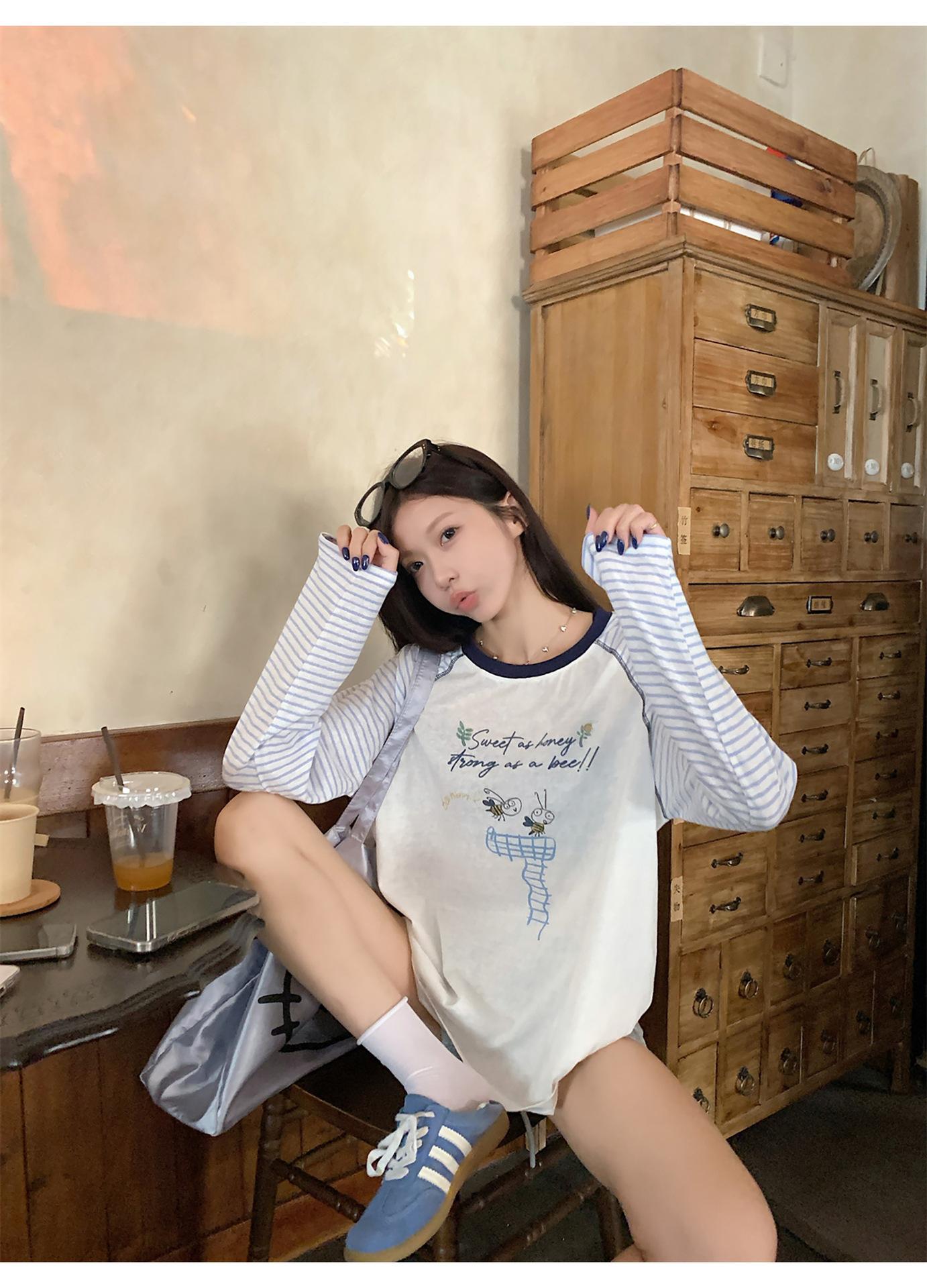 Principios de la Primavera 2025 Estilo Coreano Suelto Perezoso Bloque de Color Rayado Manga Raglán Estampado Reductor de Edad Jersey Camiseta de Manga Larga Top Mujer