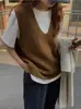 Chaleco Estilo Coreano Sencillo Tejido Cárdigan Top Mujer Suave Casual Estilo Perezoso 2025 Otoño Suéter sin Mangas