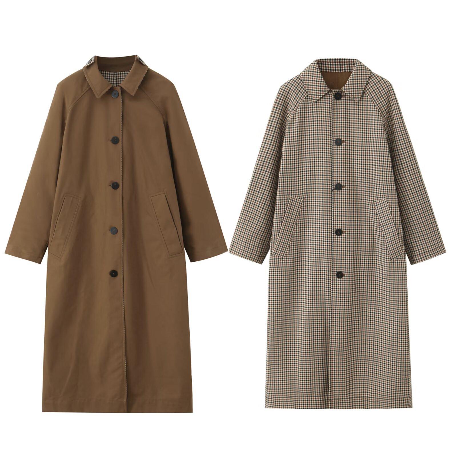 Ropa de Mujer de Comercio Exterior Transfronterizo Otoño/Invierno 2025 Estilo Europeo y Americano Solapa Cruzado Reversible Gabardina de Mujer E26197