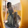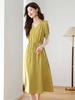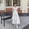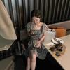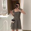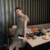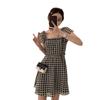 2025 Nuevo Verano para Mujer Mangas Francesas Voladoras, Estilo Suave, Chic e Impresionante Vestido de Cuello Cuadrado con Estampado de Pata de Gallo