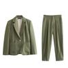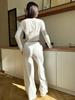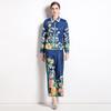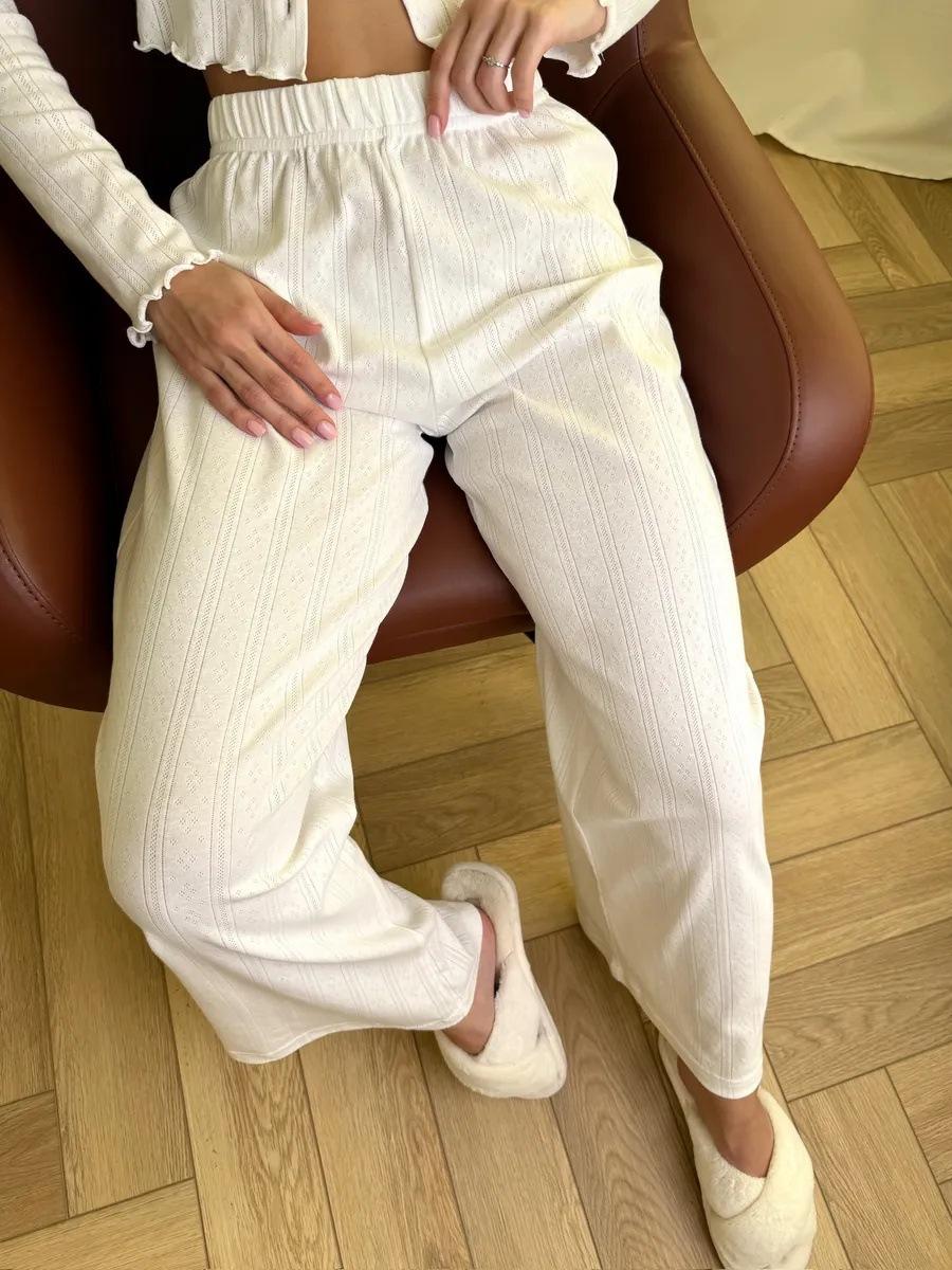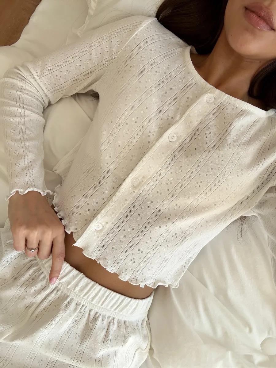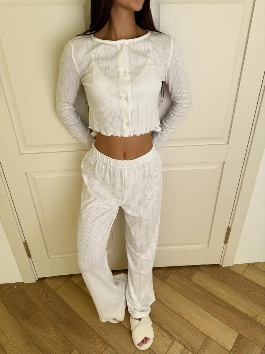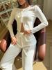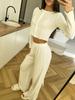 Moda Europea y Americana Conjunto Casual para Mujer Jacquard Adorno de Volantes Adelgazante Temperamento Hogar Cuello Redondo Manga Larga Pantalón Largo Conjunto de Dos Piezas