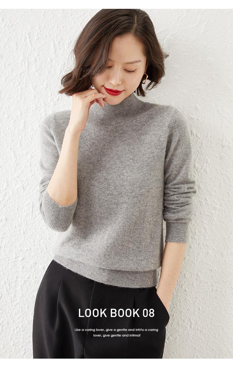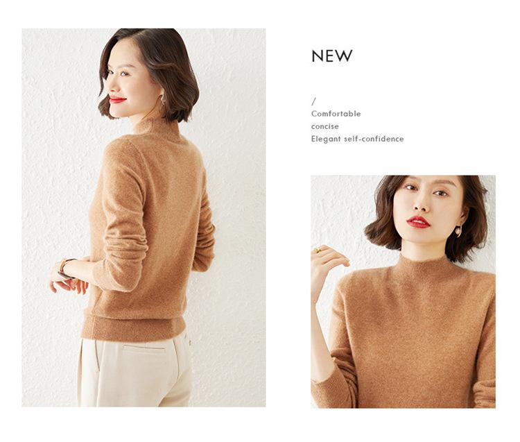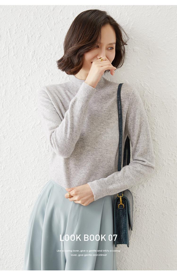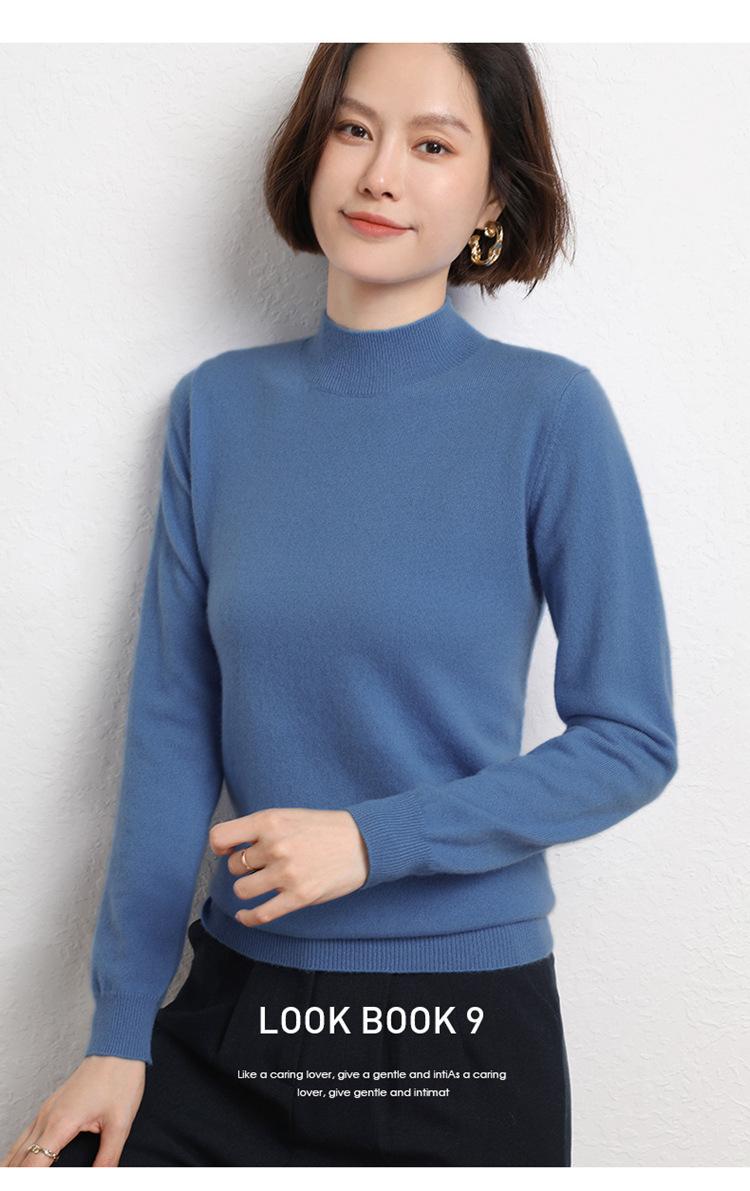 Suéter Top para Mujer Holgado Básico Tejido Patchwork Transfronterizo Transfronterizo Hilo Core-spun Suéter Tejido Cuello Alto Otoño Manga Larga