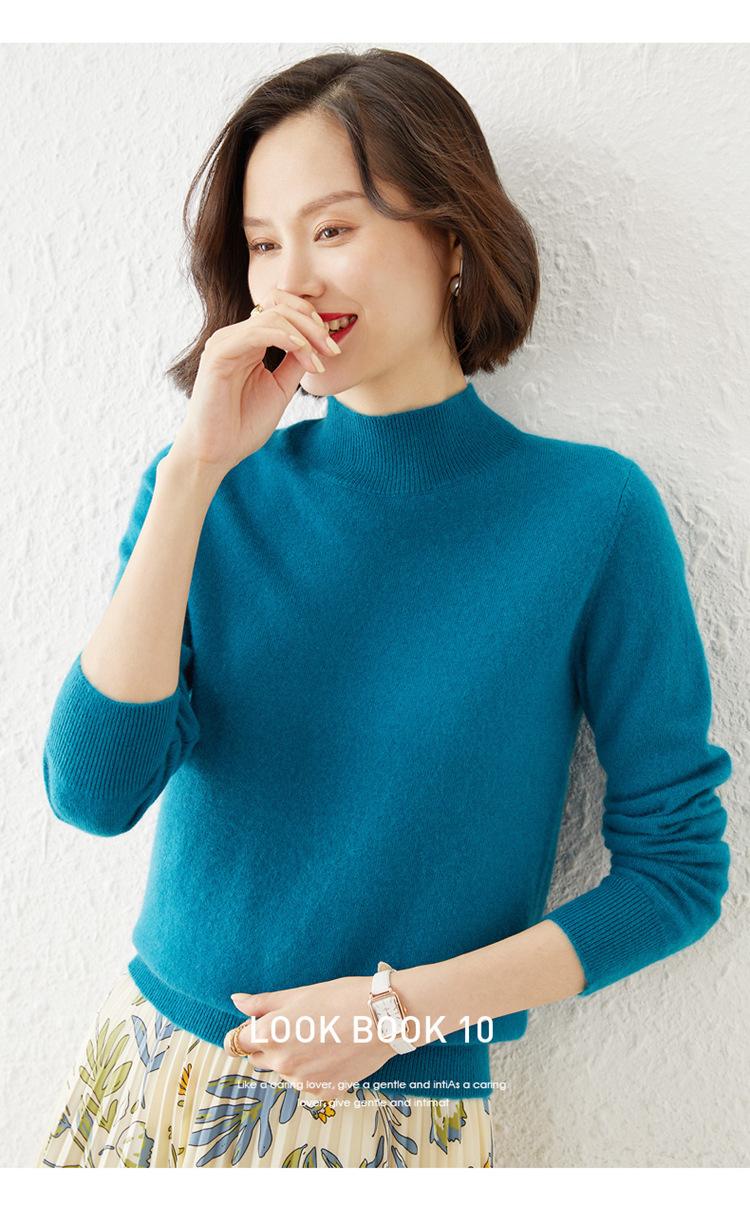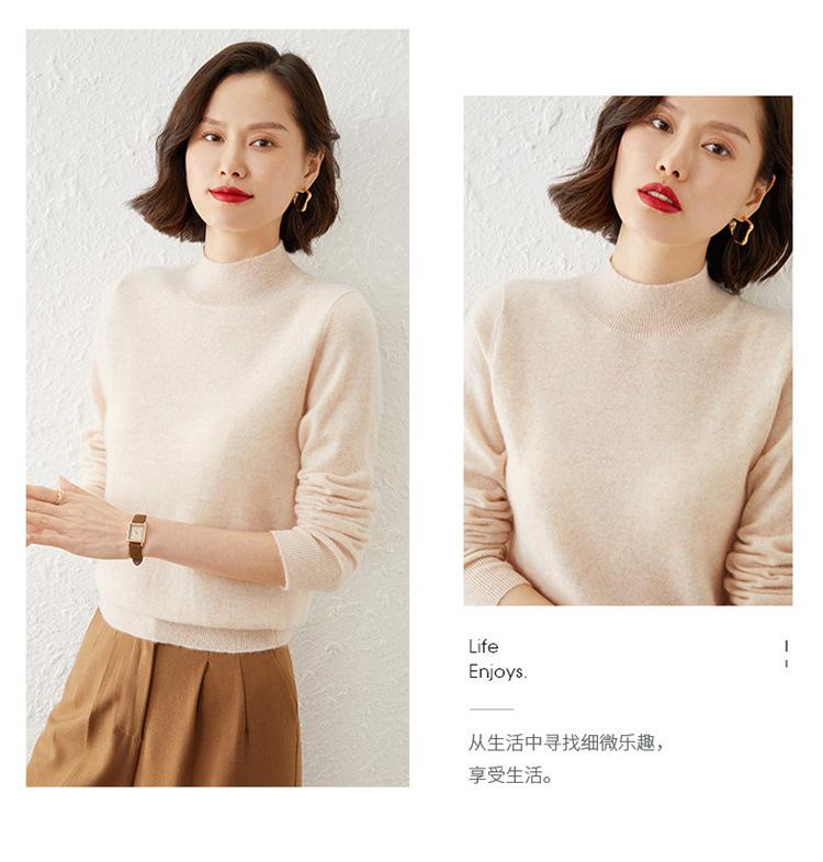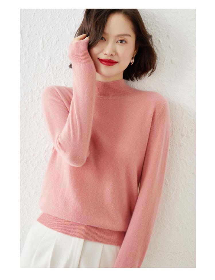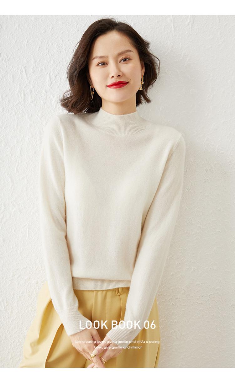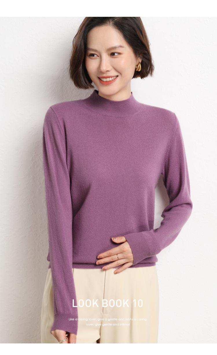 Suéter Top para Mujer Holgado Básico Tejido Patchwork Transfronterizo Transfronterizo Hilo Core-spun Suéter Tejido Cuello Alto Otoño Manga Larga