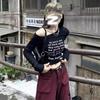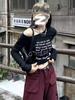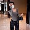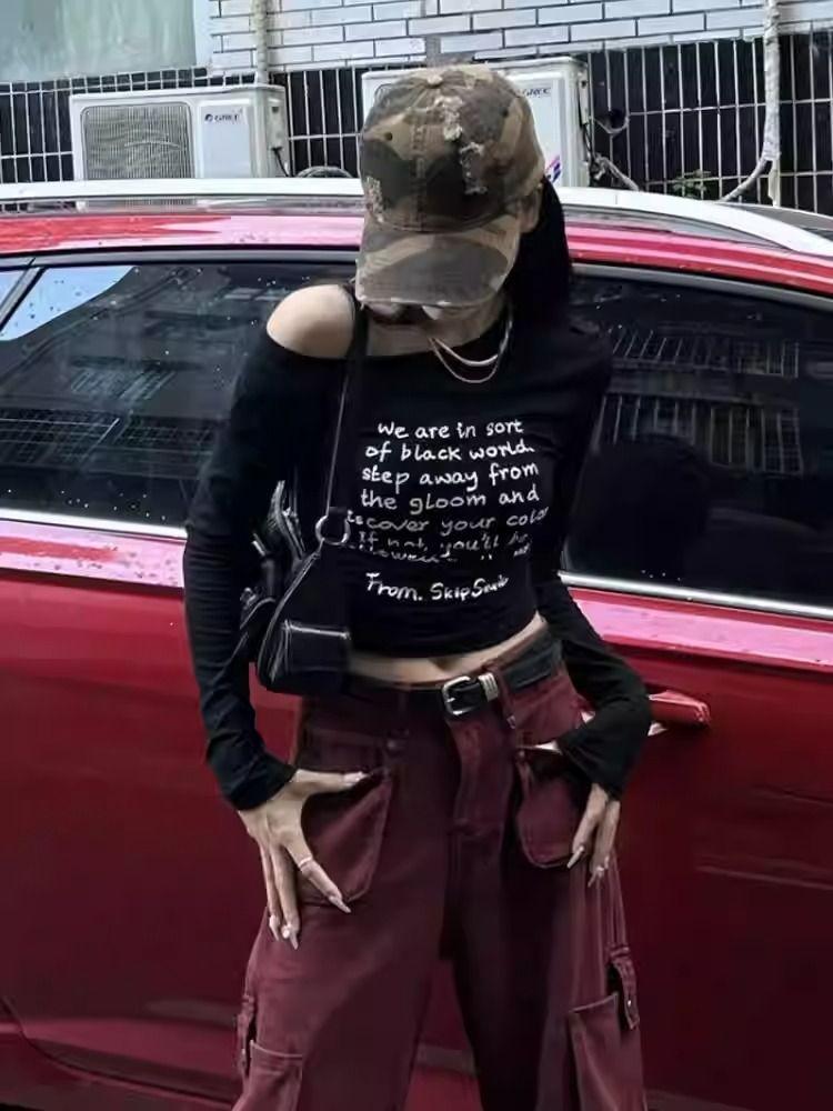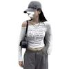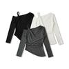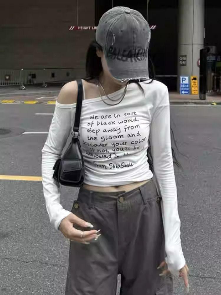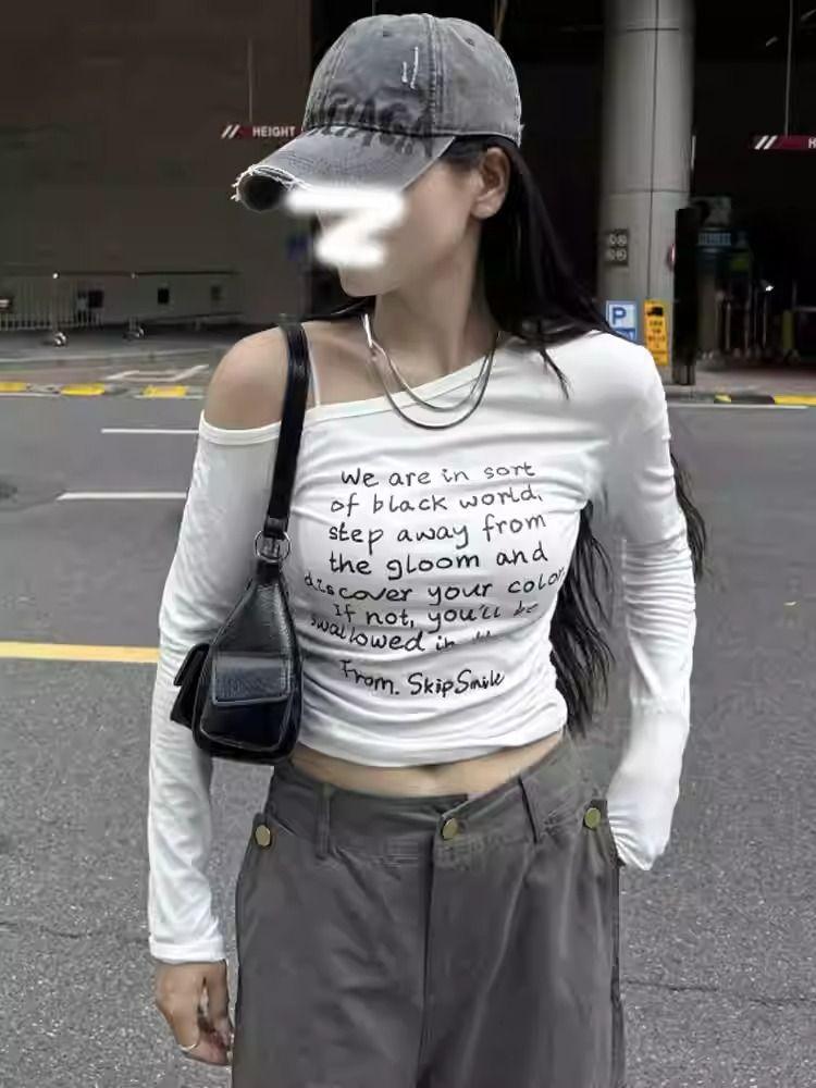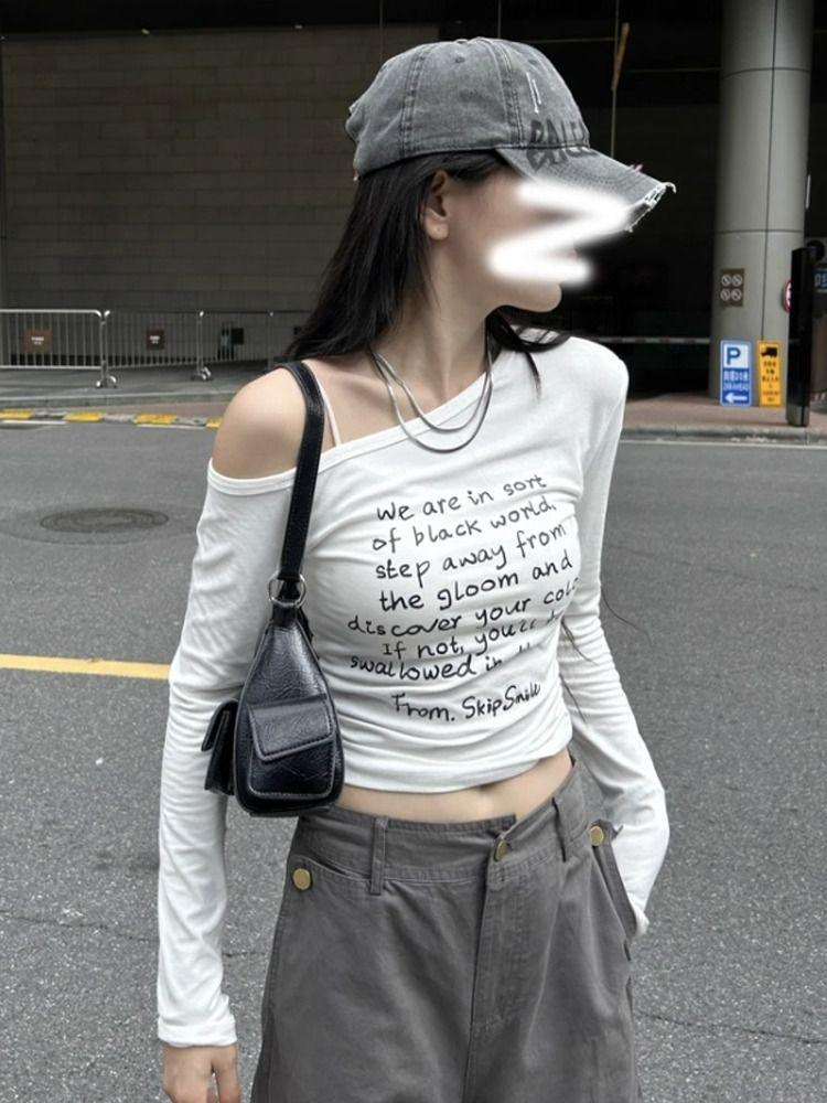Ropa de Primavera Deseo Puro Camiseta de Manga Larga con un Hombro Descubierto para Mujer Otoño e Invierno Adelgazante Camiseta Base Corta Top Hot Girl con Hombros Descubiertos