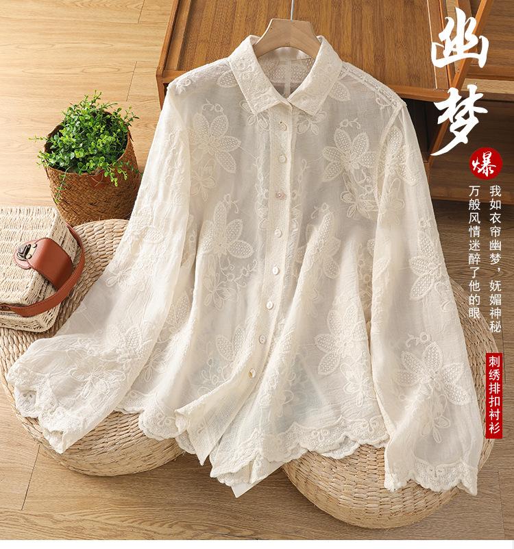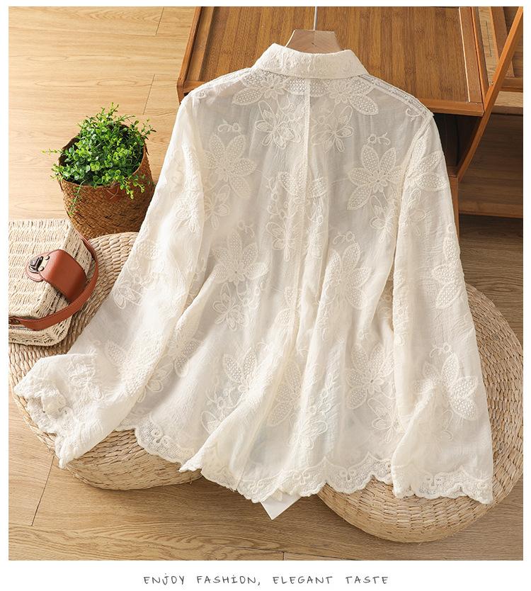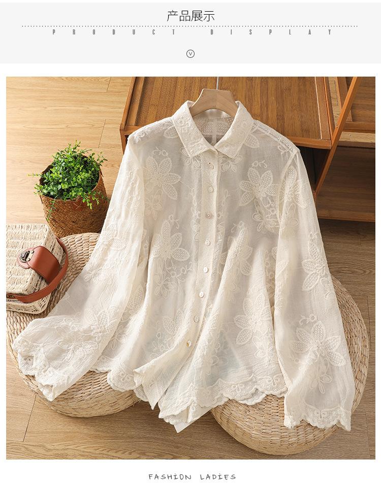 Ropa de Mujer Nueva de Otoño y Primavera Estilo Occidental Camisa de Encaje Crochet Ropa de Protección Solar Cárdigan de Verano Camisa Exterior Delgada