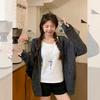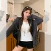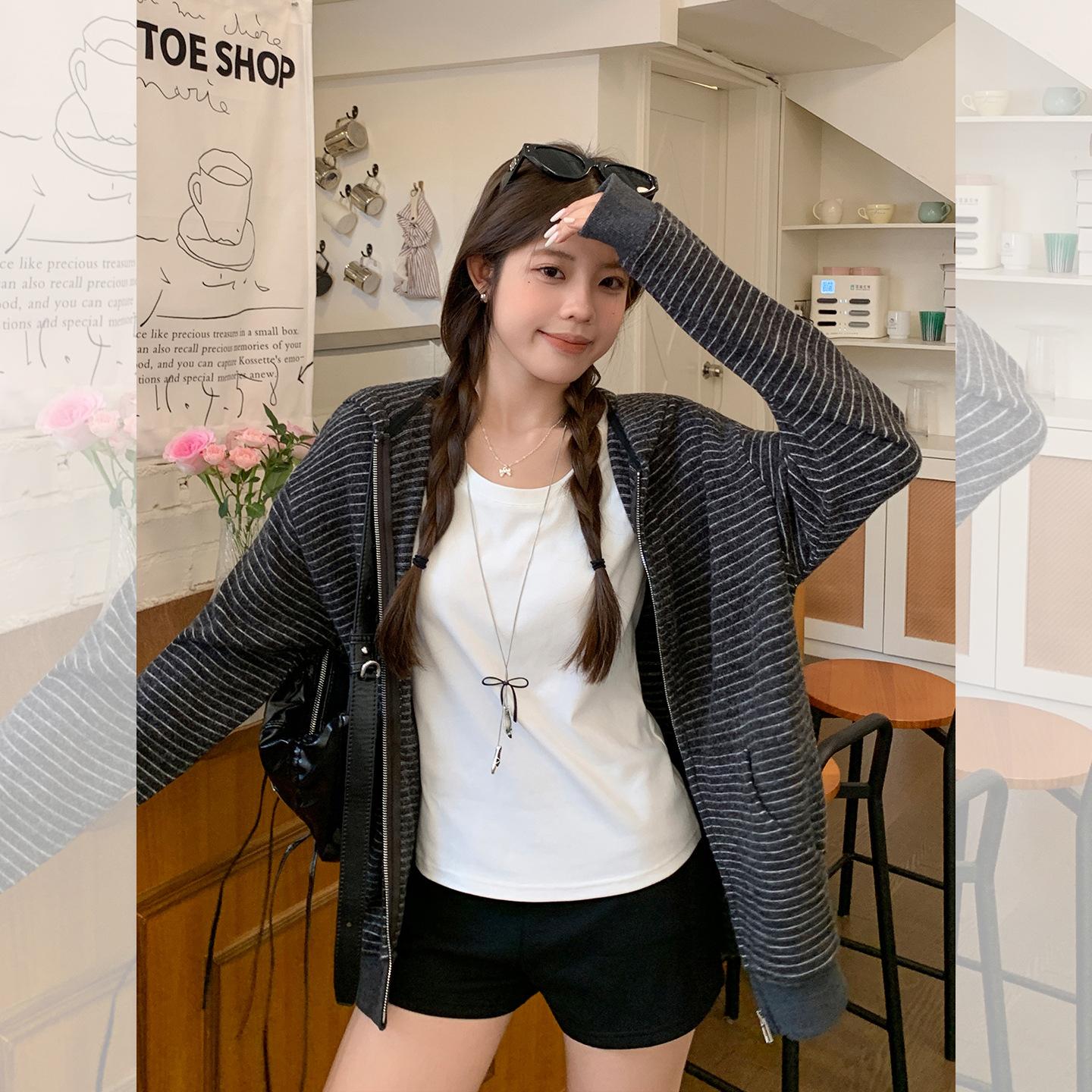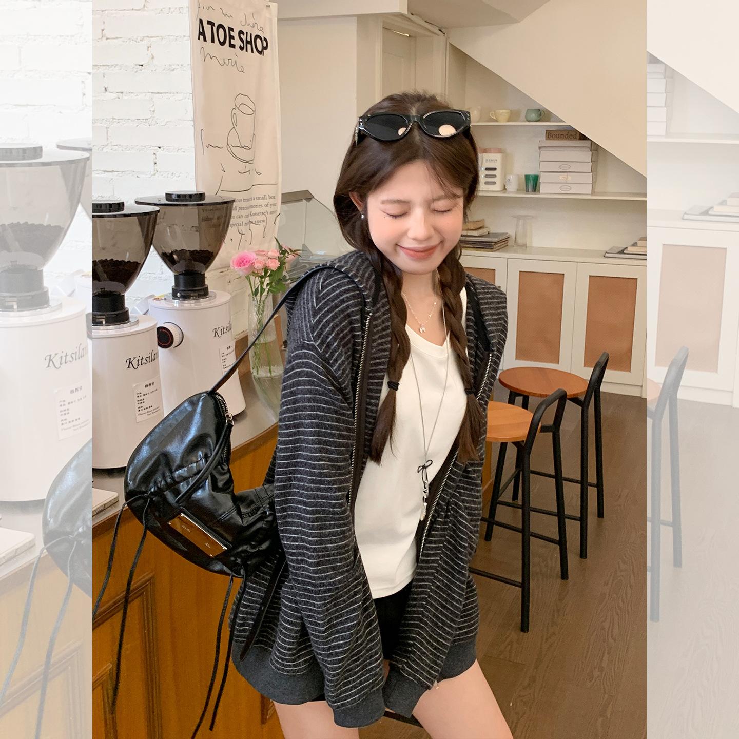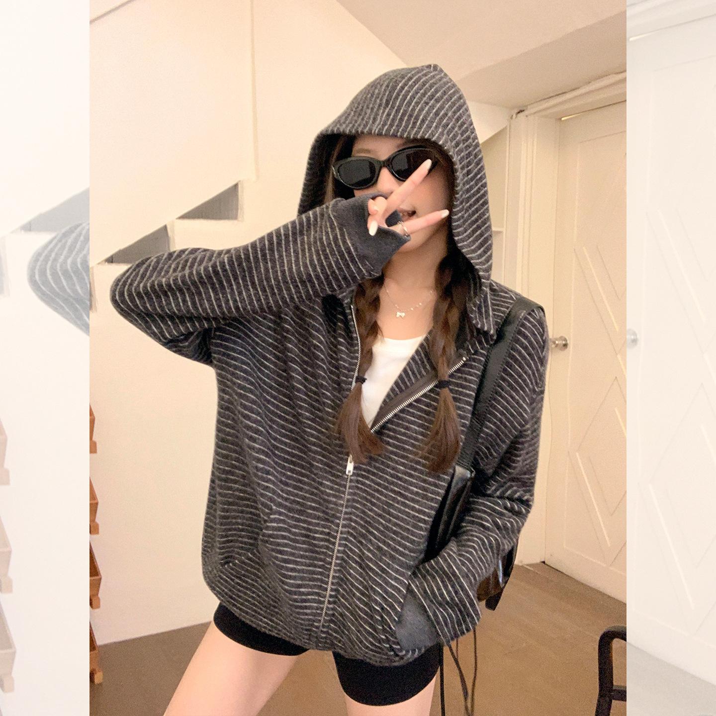 Toma real Sudadera con capucha americana chaqueta mujer otoño estilo perezoso suelta color block a rayas cárdigan top suelto versátil