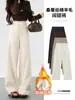 Pantalones Casuales de Nueva Colección Otoño e Invierno 2026, Forrados de Polar, Engrosados, Textura de Seda, Cintura Alta, Caída Suelta, Pierna Recta, Pantalones de Lana de Pierna Ancha