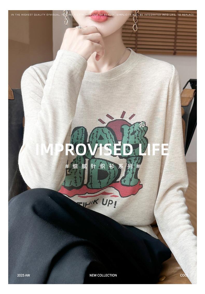 Suéter de manga larga con cuello redondo para mujer, diseño de nicho, sentido suelto, estilo perezoso, otoño e invierno, versátil, personalidad, ropa exterior, top de punto