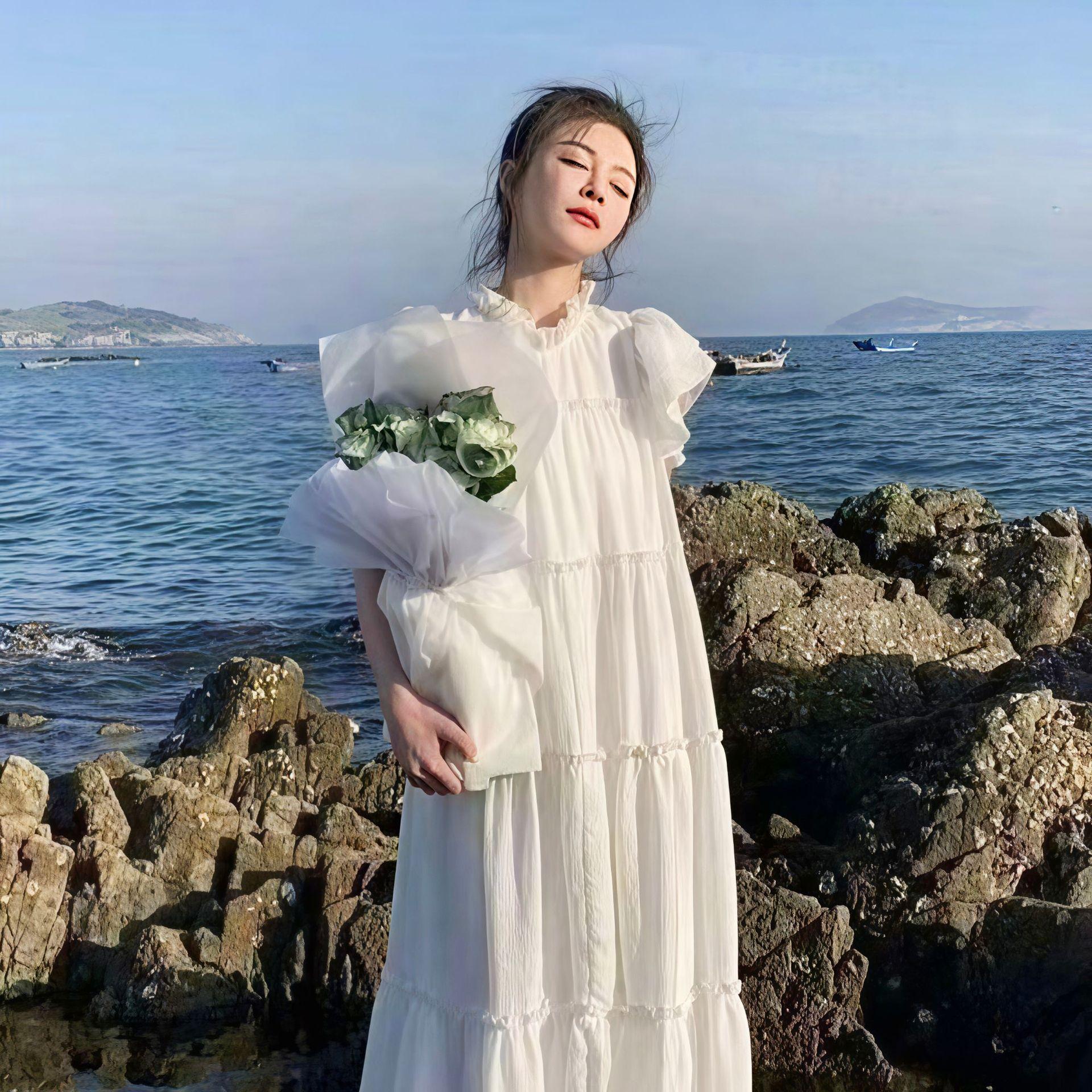 Vestido Francés Dulce de Manga Corta con Volantes para Mujer 2025 Nuevo Verano Suelto Adelgazante Vestido de Princesa