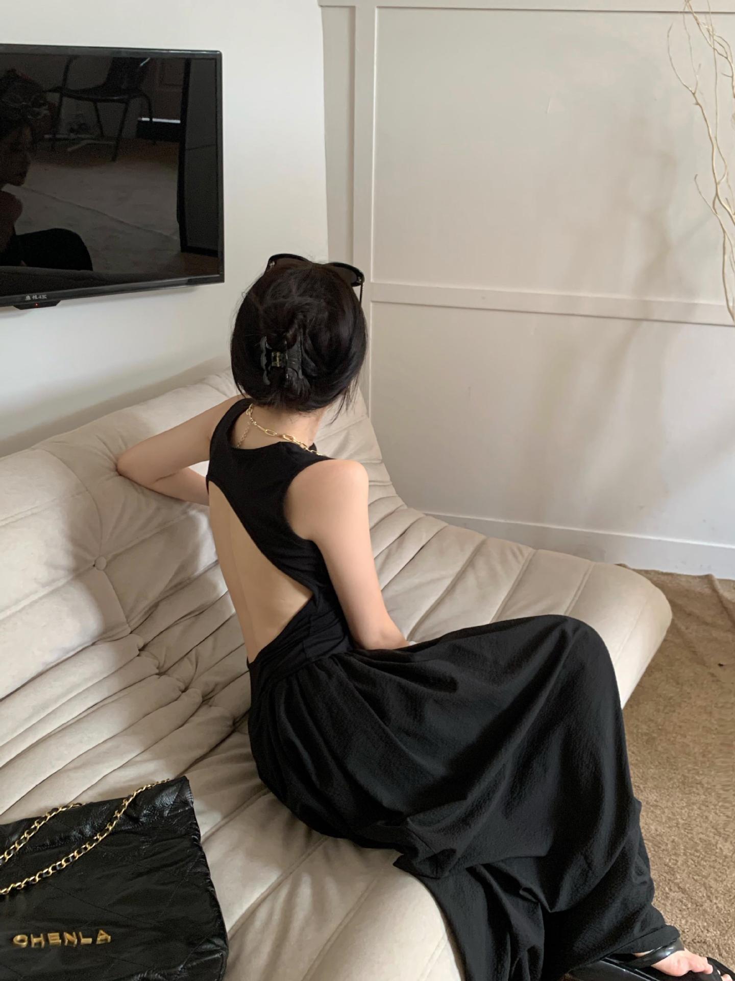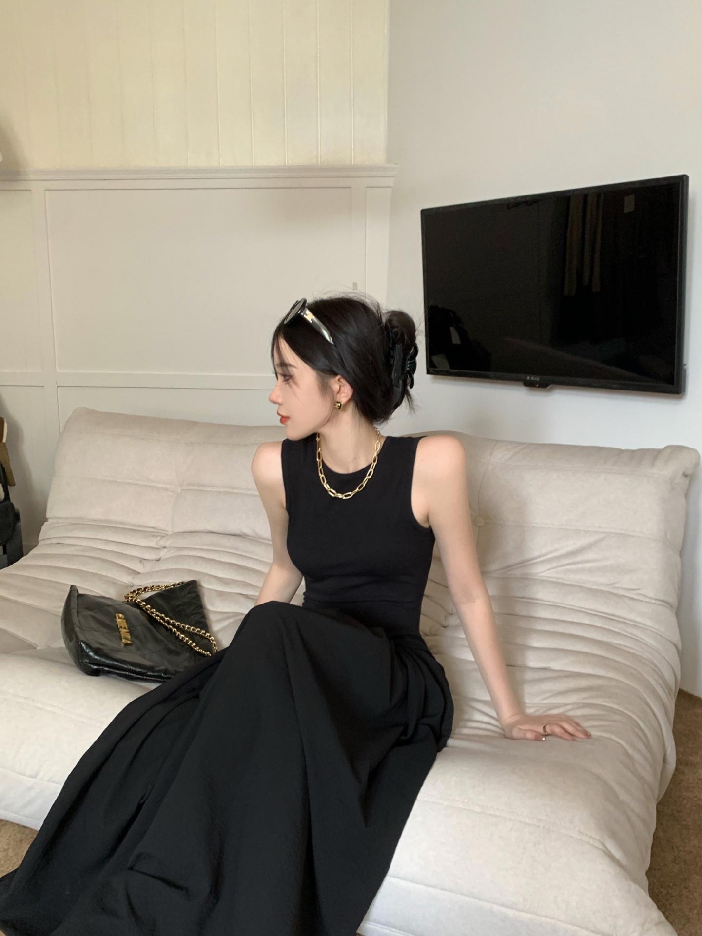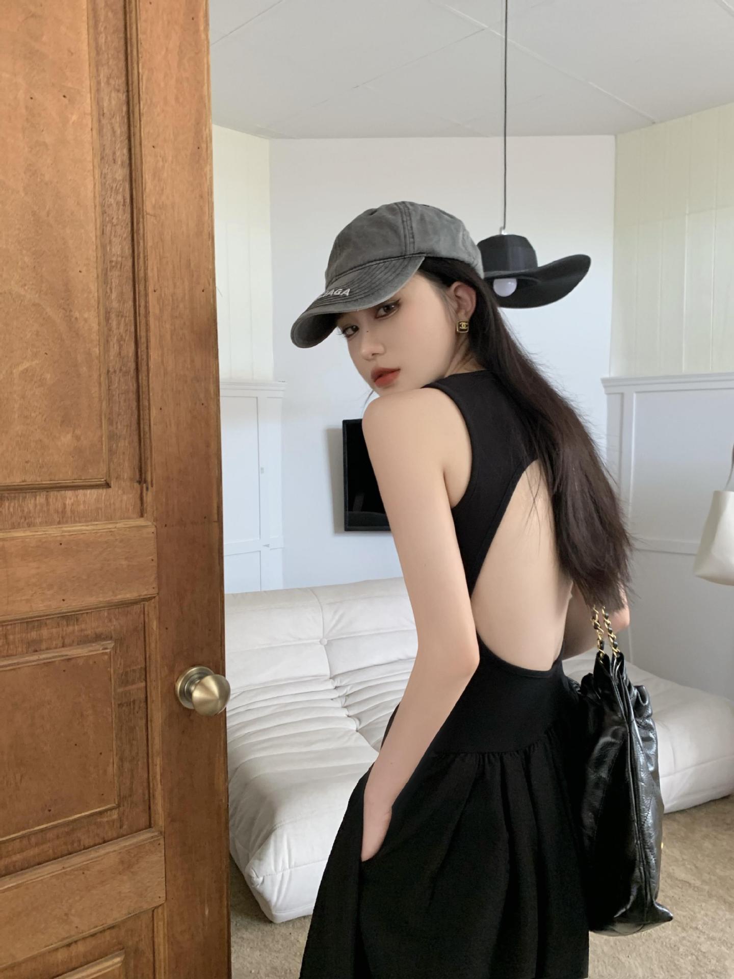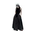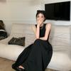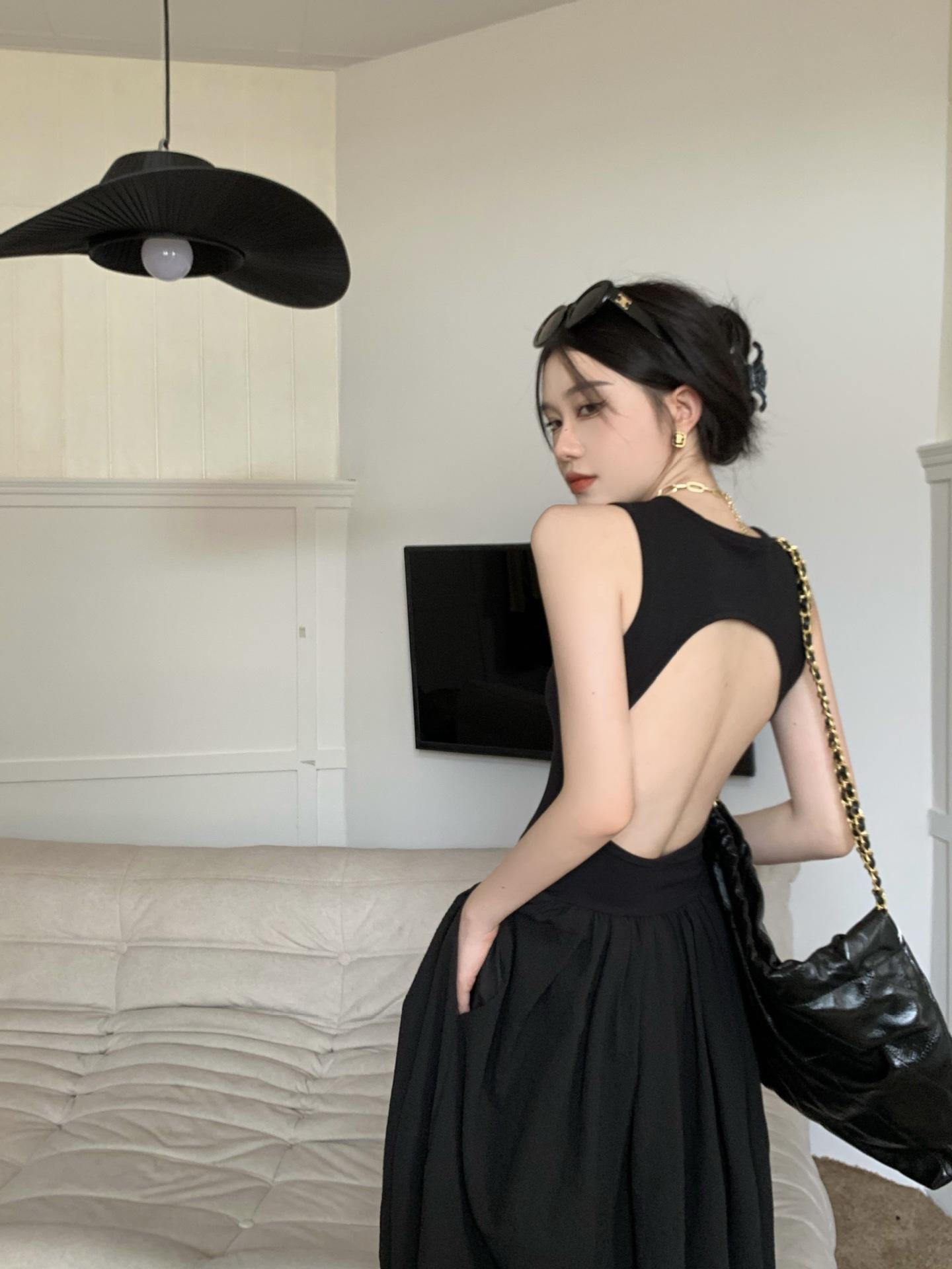 Nuevo vestido francés adelgazante de cintura corte A vestido negro vestido chaleco sin espalda para chica hot vestido de verano para mujer 2024
