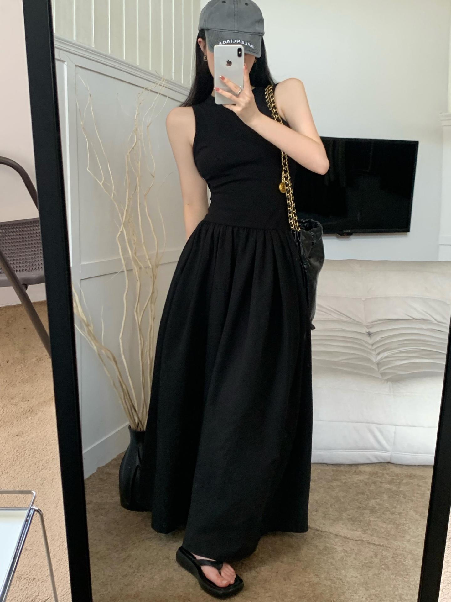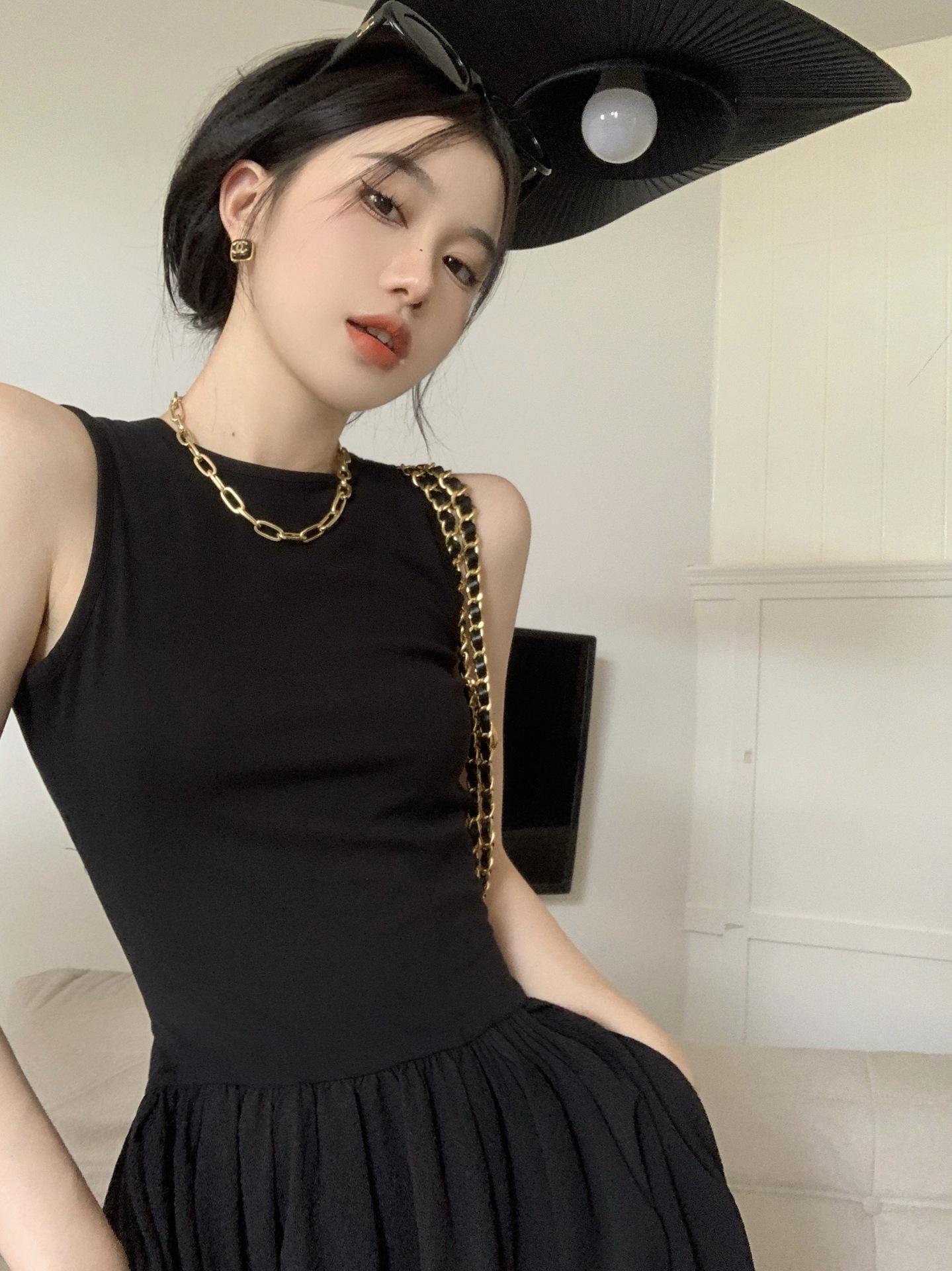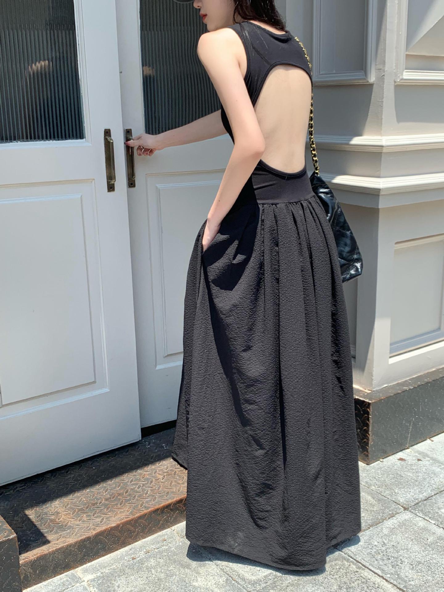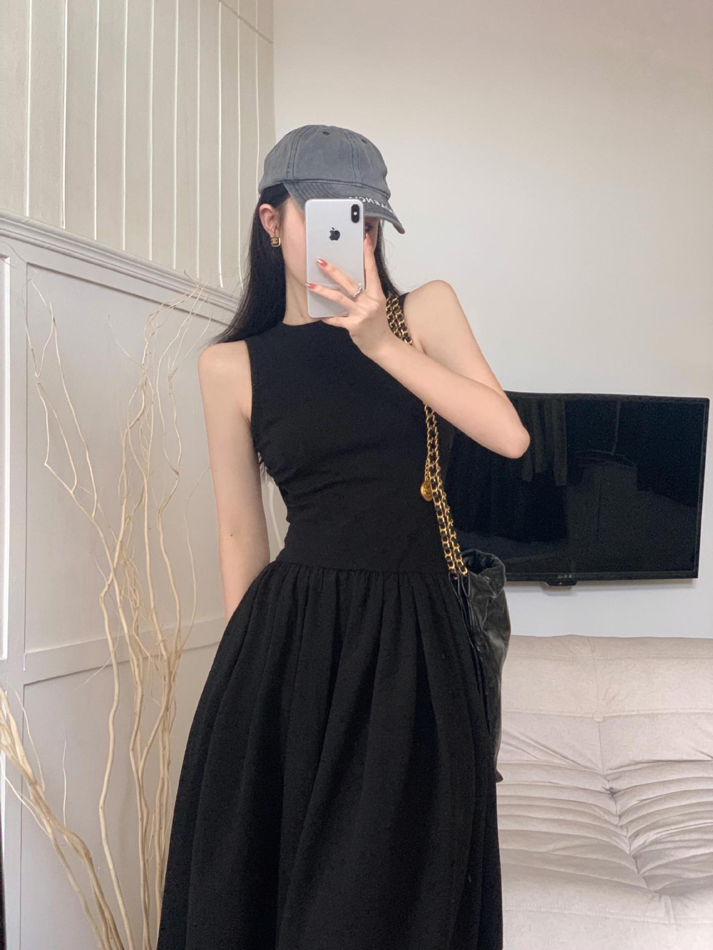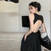Nuevo vestido francés adelgazante de cintura corte A vestido negro vestido chaleco sin espalda para chica hot vestido de verano para mujer 2024