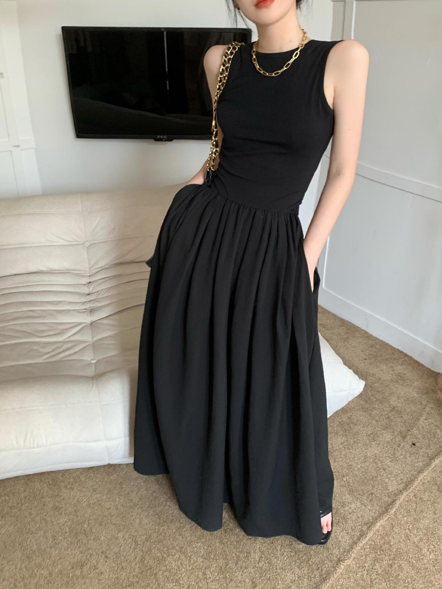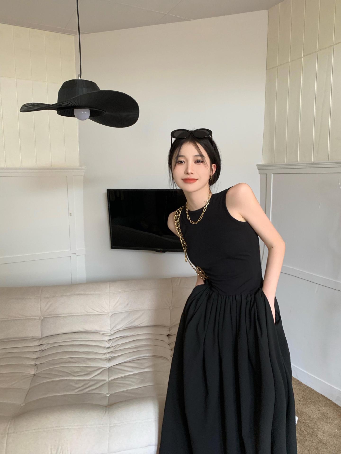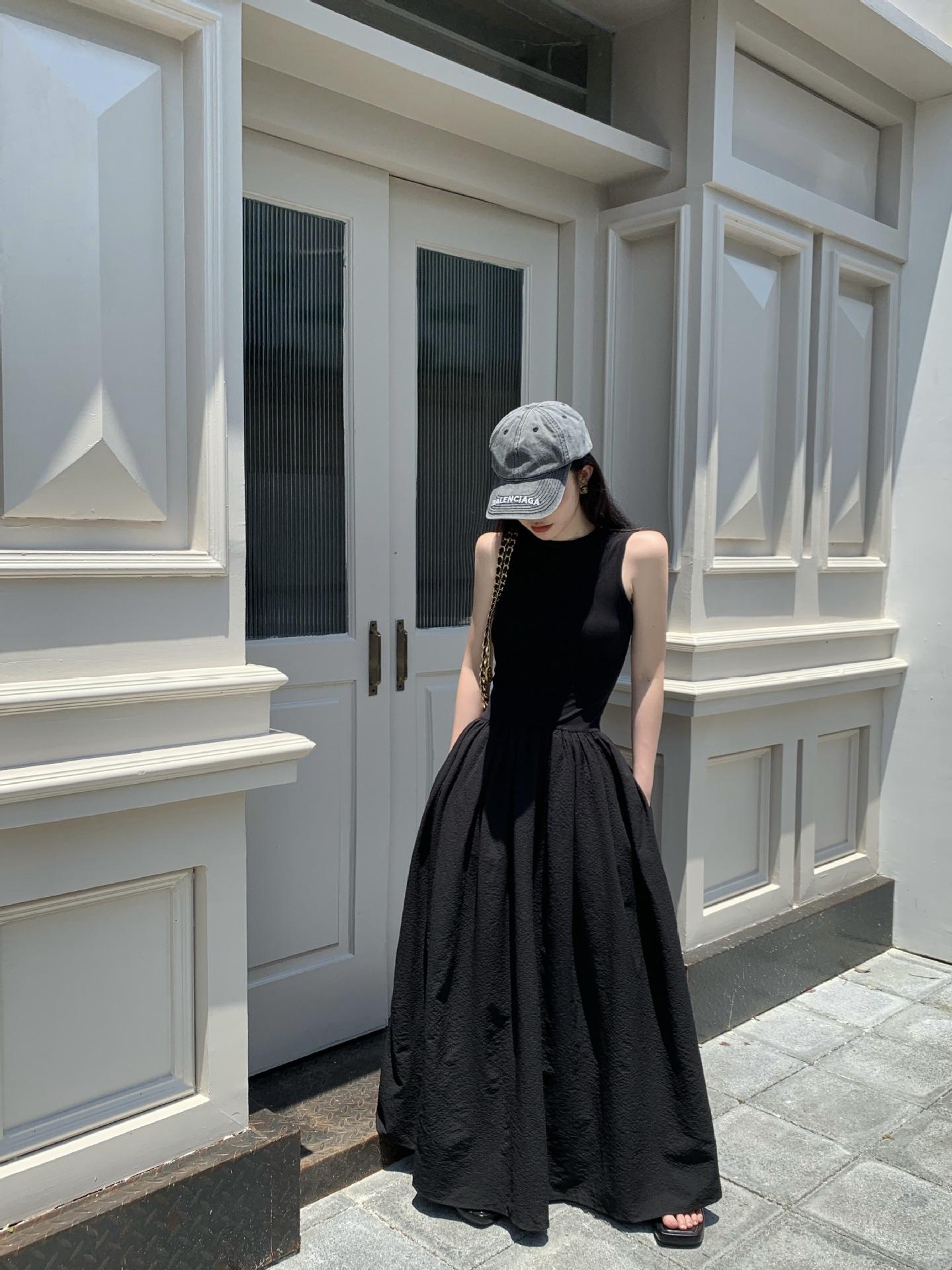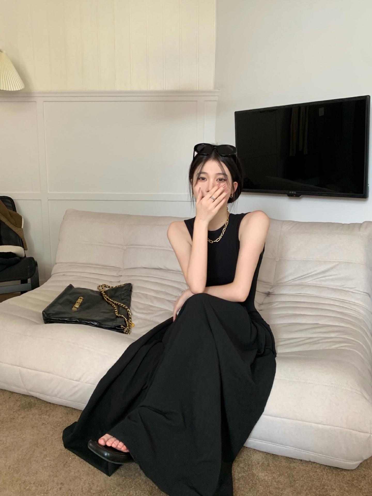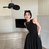 Nuevo vestido francés adelgazante de cintura corte A vestido negro vestido chaleco sin espalda para chica hot vestido de verano para mujer 2024
