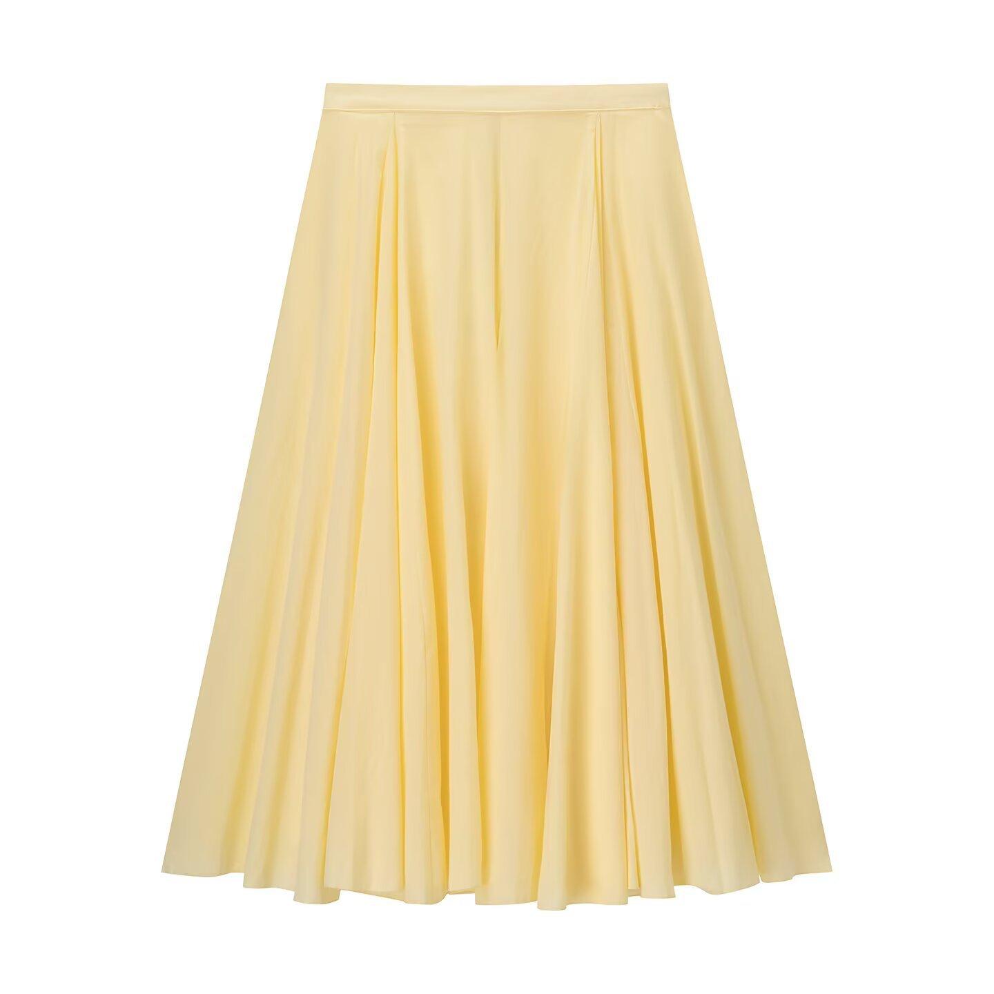 Ropa de Mujer Transfronteriza Europea y Americana Falda Midi de Cintura Alta con Vuelo Amplio para Mujer