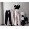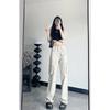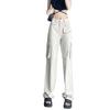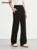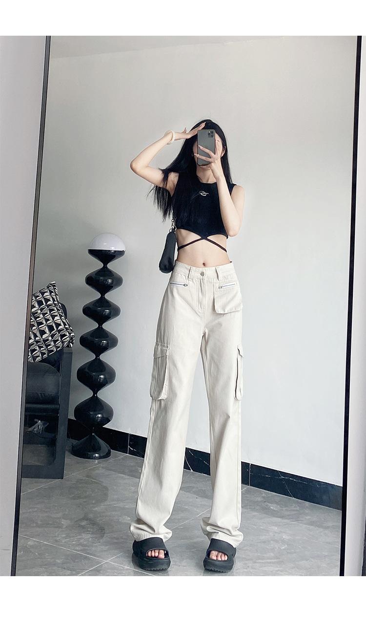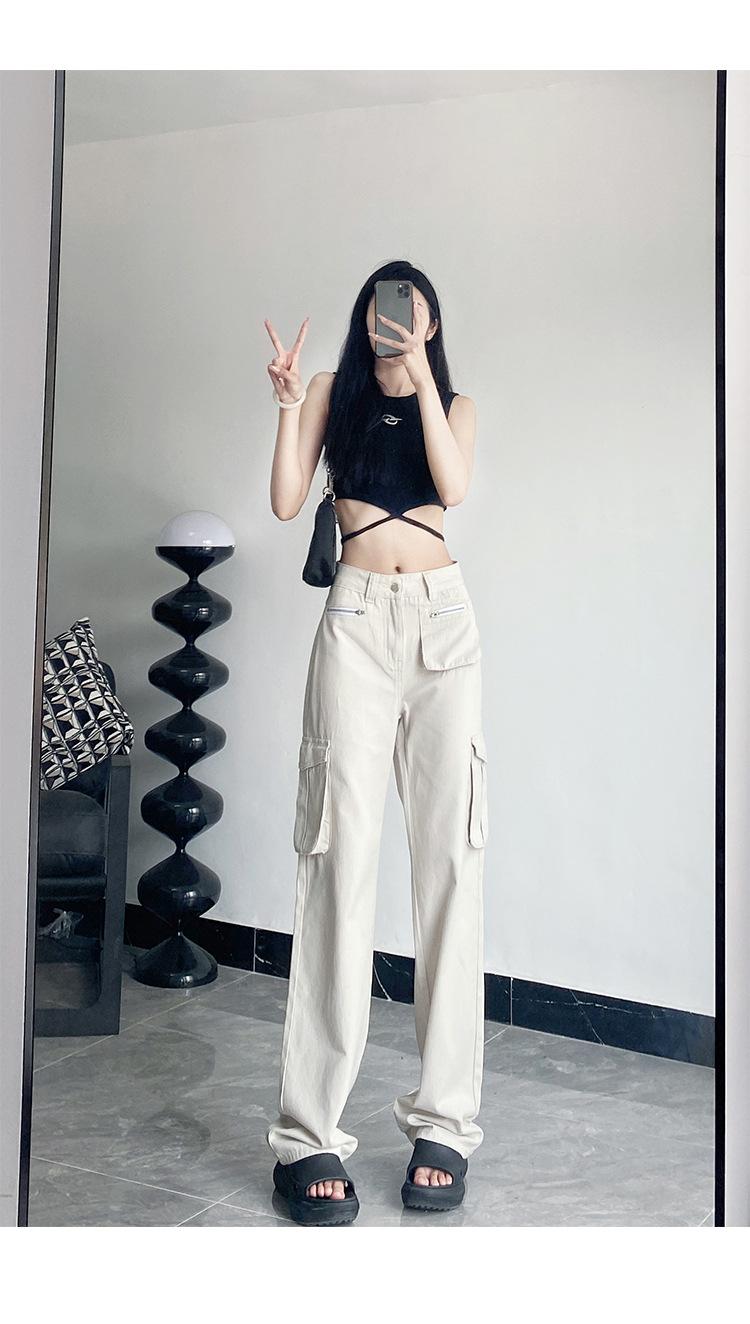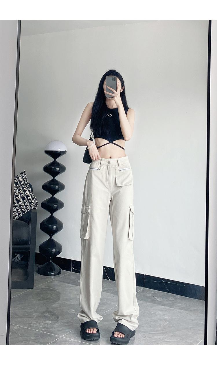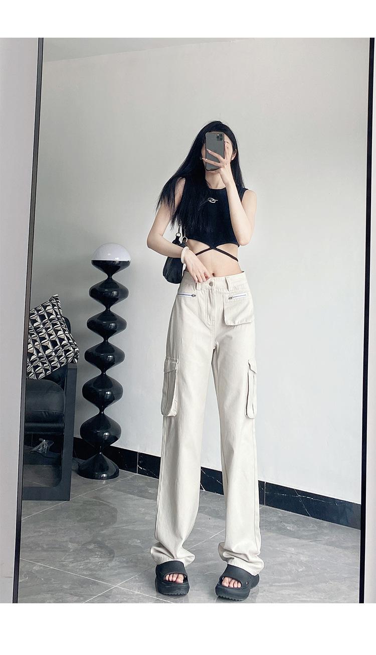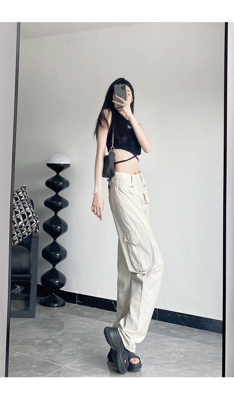 Pantalones Casuales de Primavera y Otoño Negros Altos Rectos Multibolsillos para Mujer Adelgazantes High Street Spice Girls Forrados Hasta el Piso