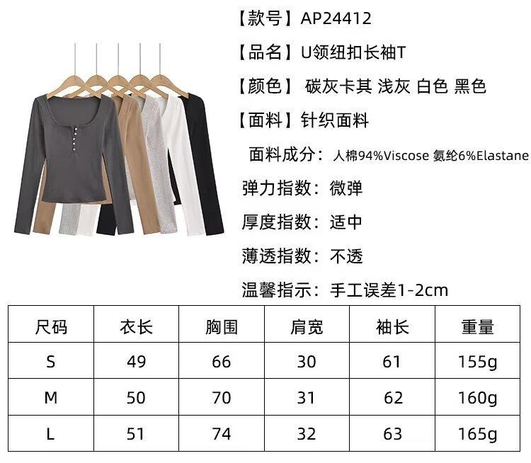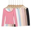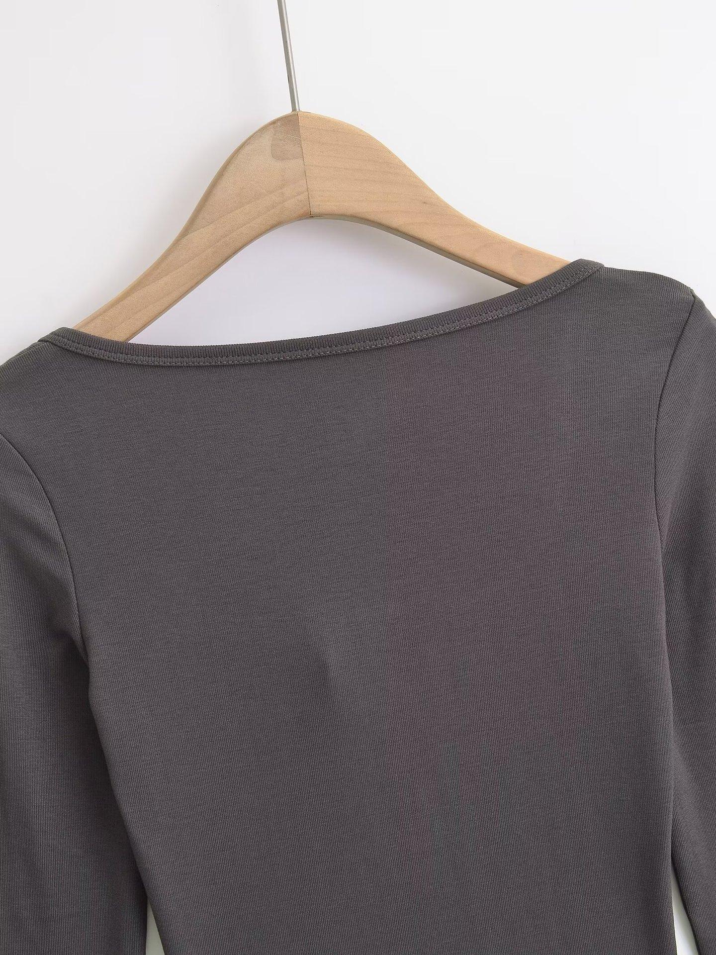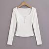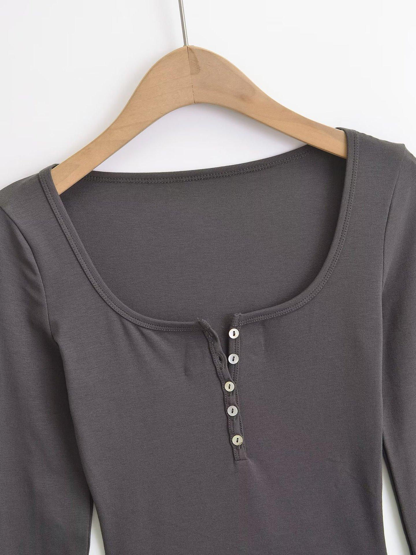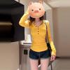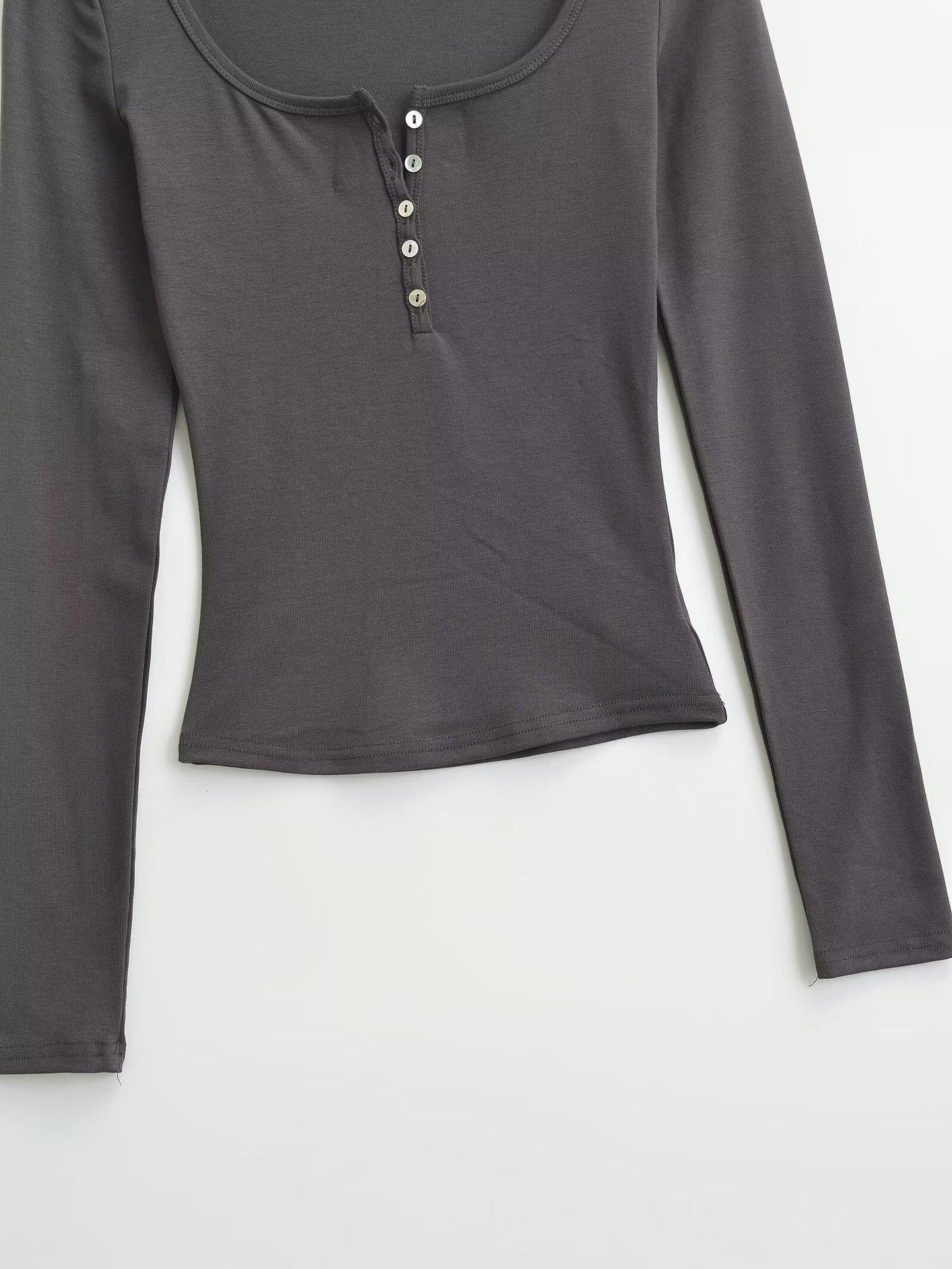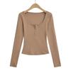 Camiseta de Estilo Deseo Puro con Cuello Semiabierto para Chica Picante, Ajustada, para Mujer, Camiseta Básica, Primavera y Otoño, Nueva, Hilo Americano, Botones, Manga Larga
