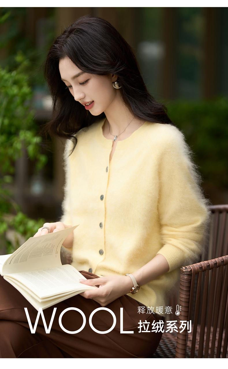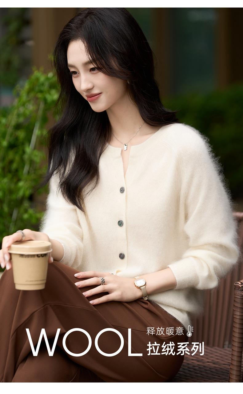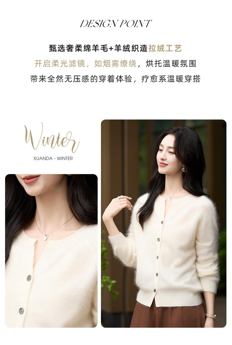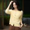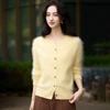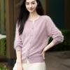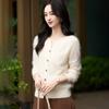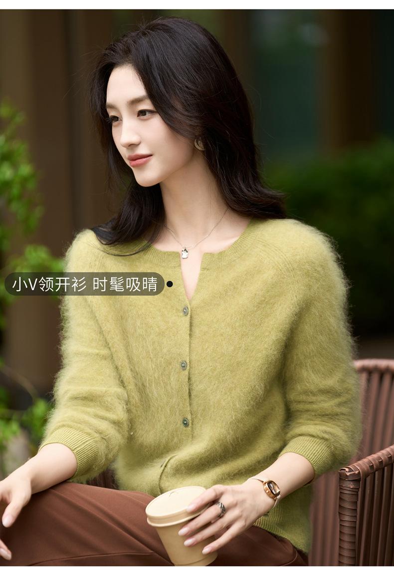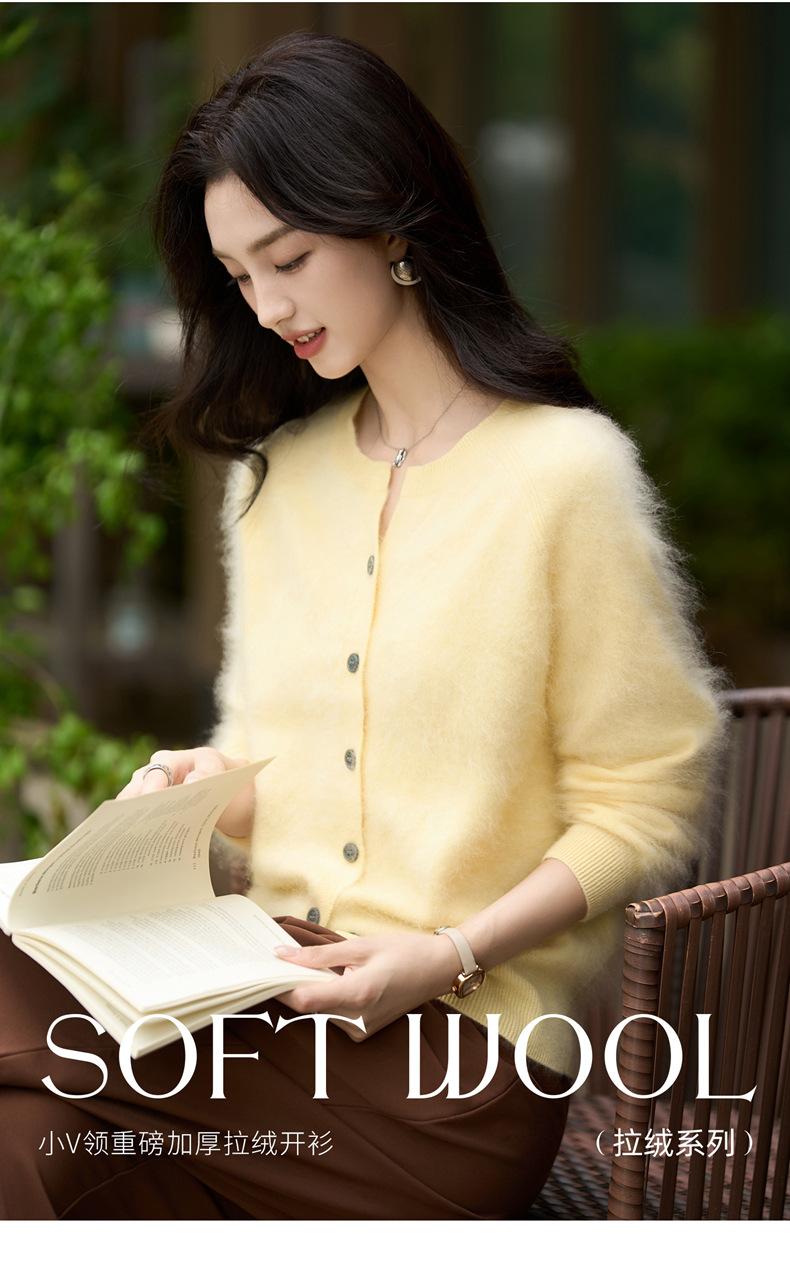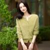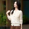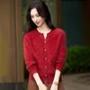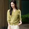 Cárdigan de Punto Cepillado de Lana 100% Pura para Mujer con Cuello en V, Abrigo Corto Grueso, Suéter de Estilo Moderno y Elegante