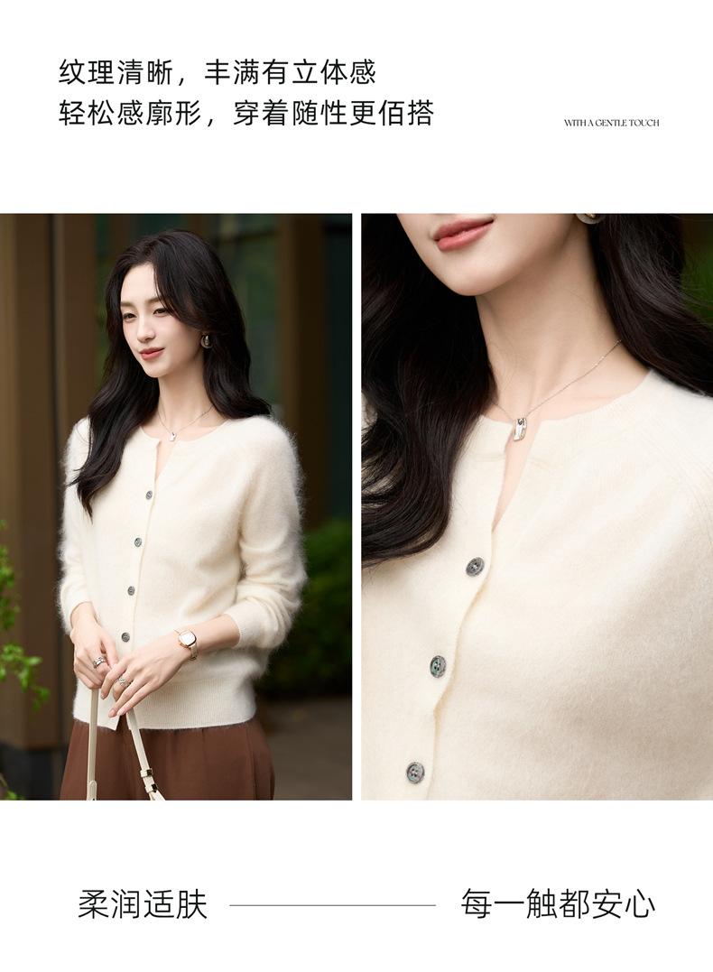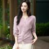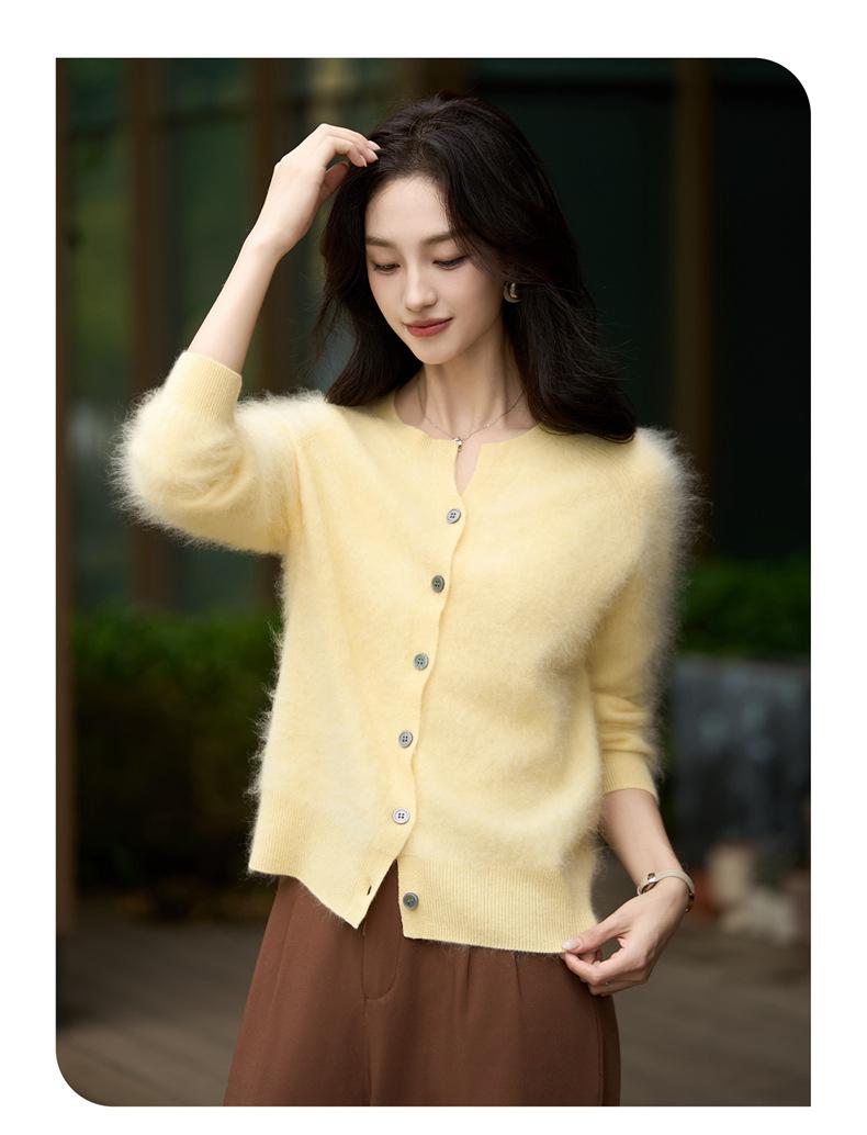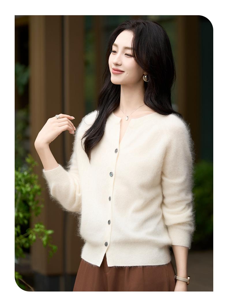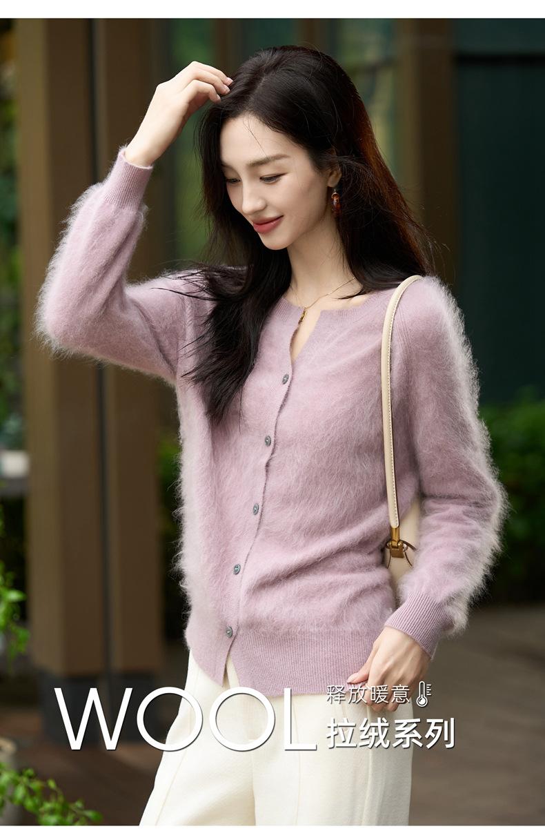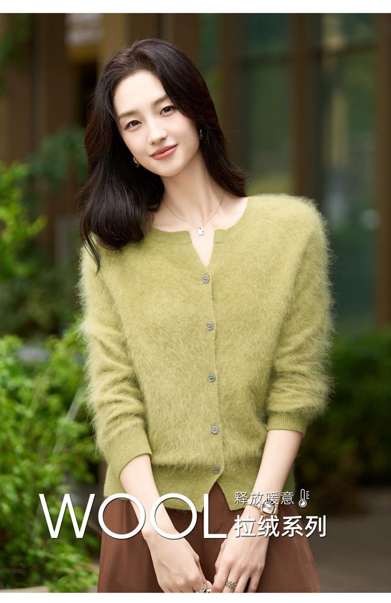 Cárdigan de Punto Cepillado de Lana 100% Pura para Mujer con Cuello en V, Abrigo Corto Grueso, Suéter de Estilo Moderno y Elegante