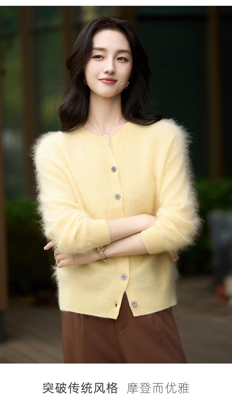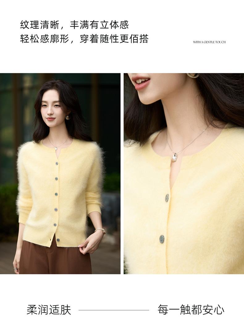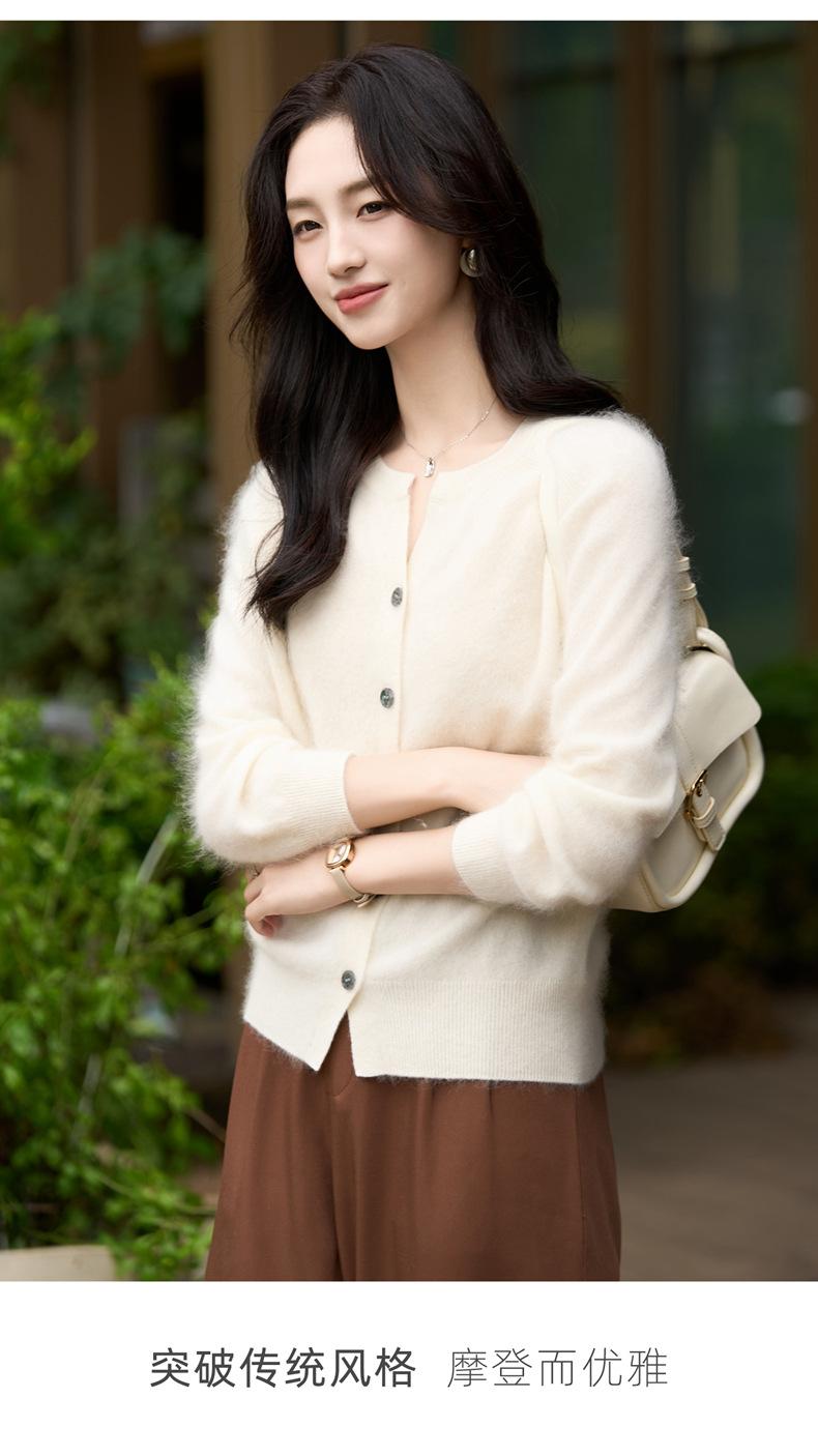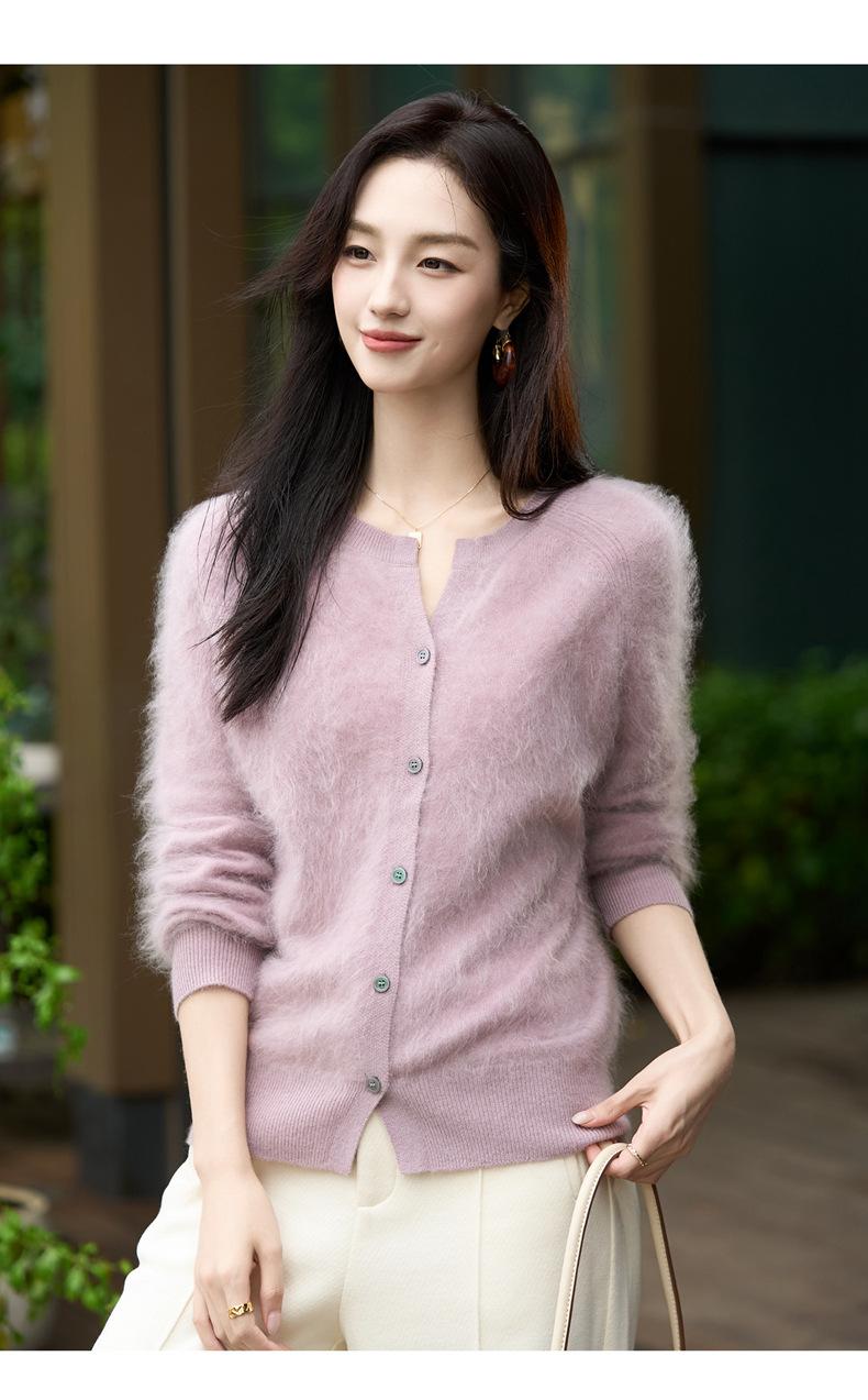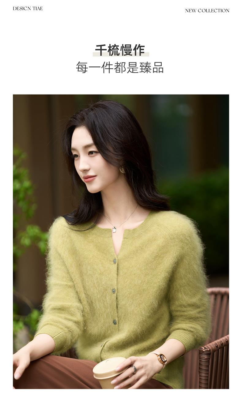Cárdigan de Punto Cepillado de Lana 100% Pura para Mujer con Cuello en V, Abrigo Corto Grueso, Suéter de Estilo Moderno y Elegante