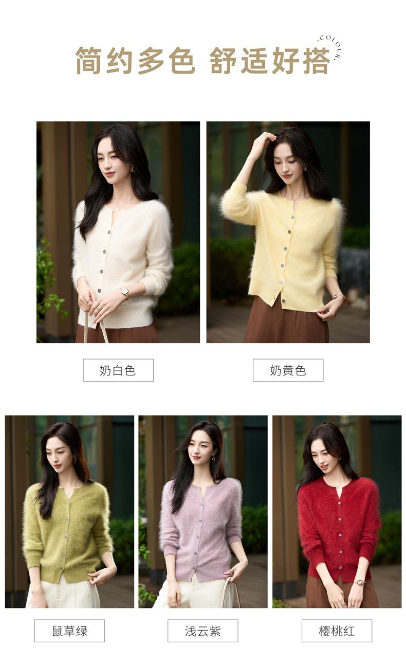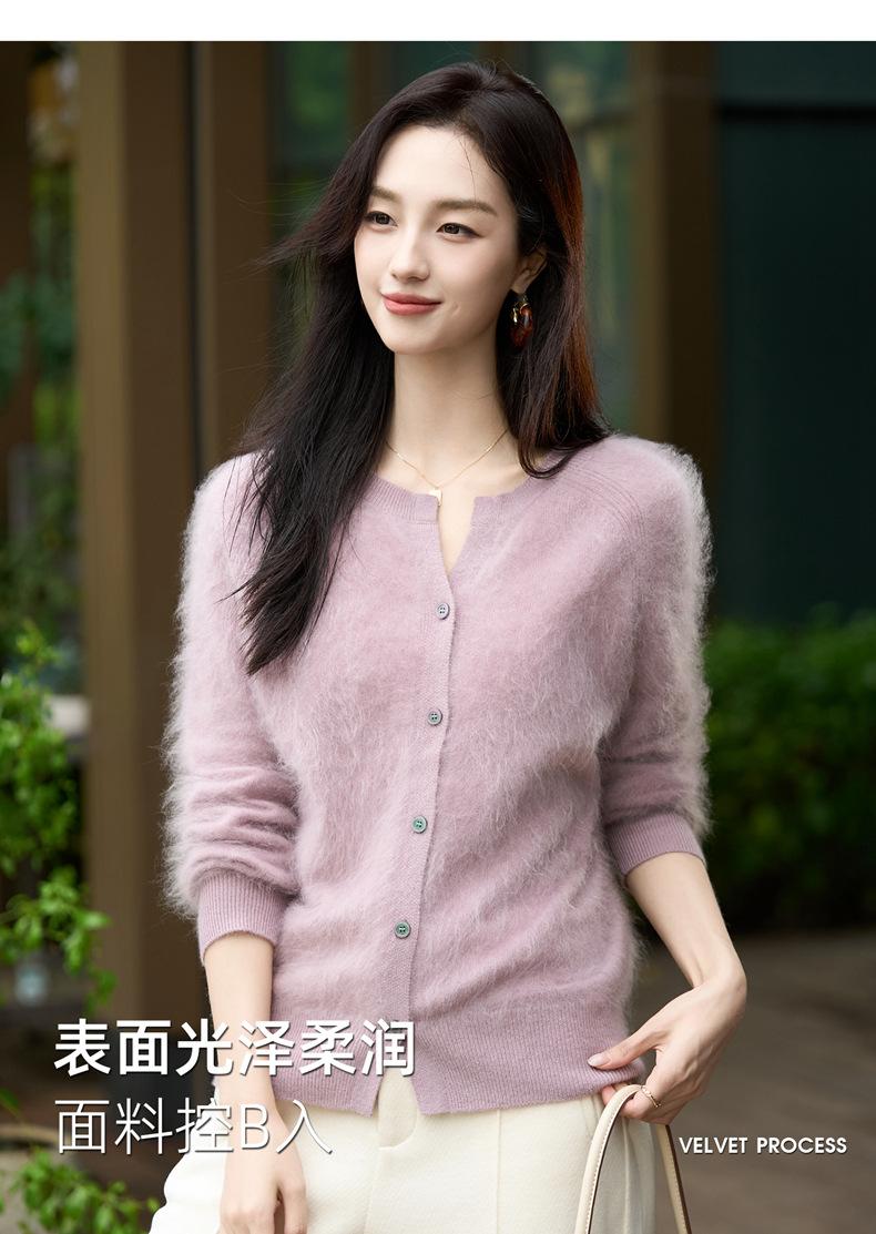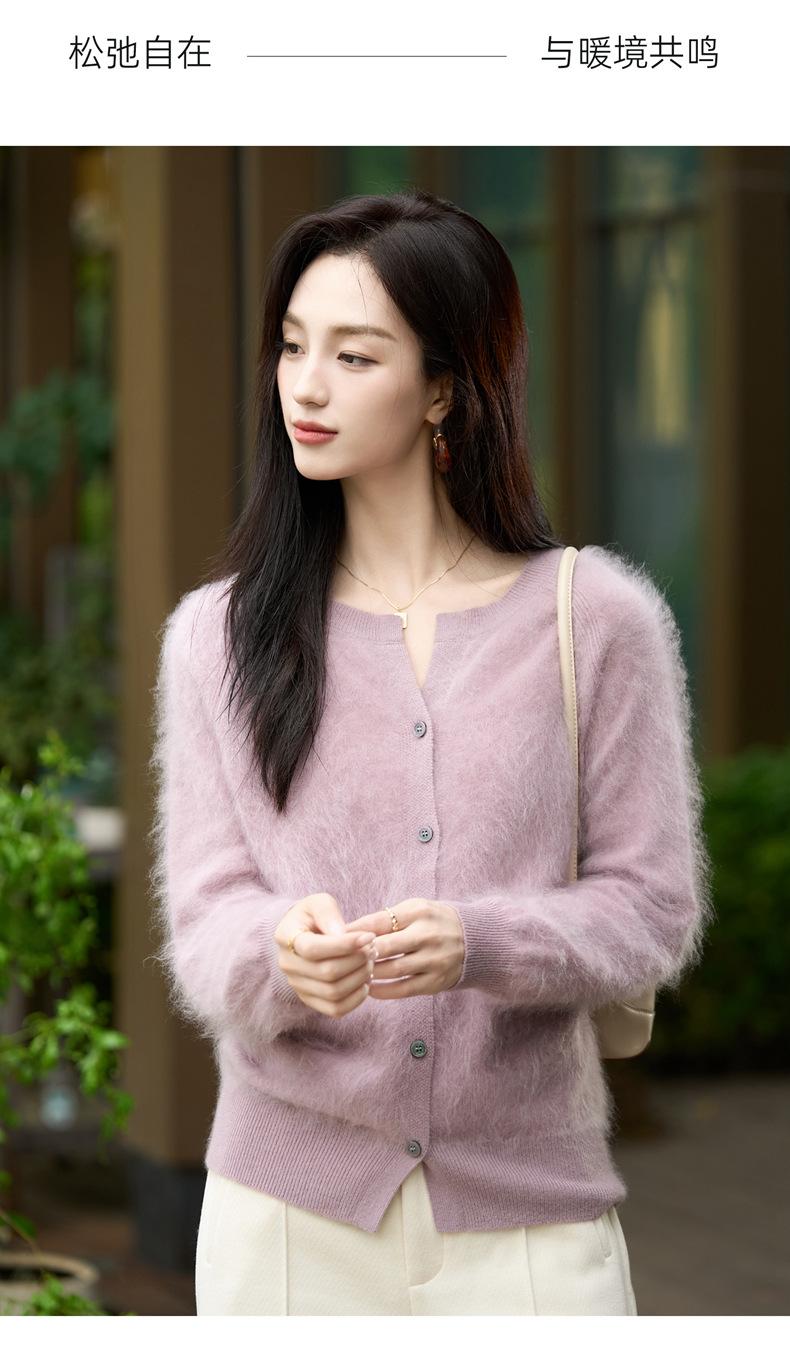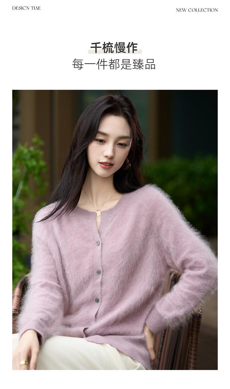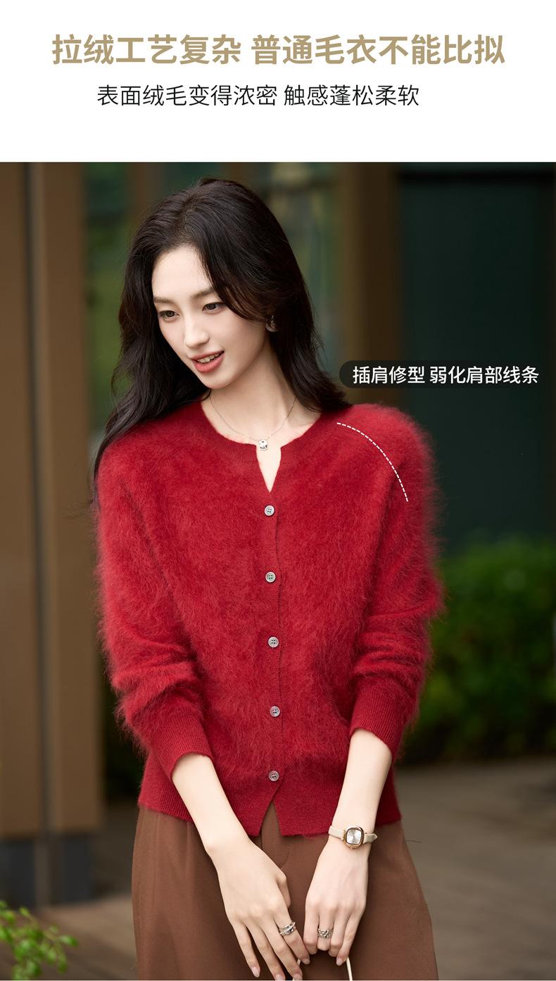 Cárdigan de Punto Cepillado de Lana 100% Pura para Mujer con Cuello en V, Abrigo Corto Grueso, Suéter de Estilo Moderno y Elegante