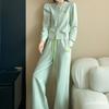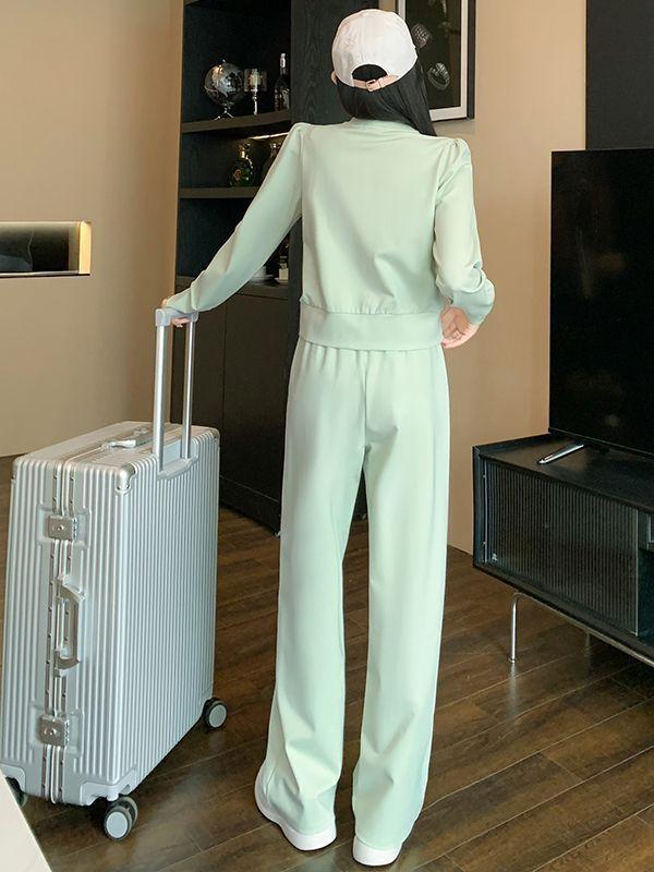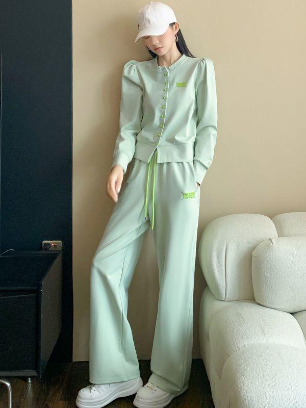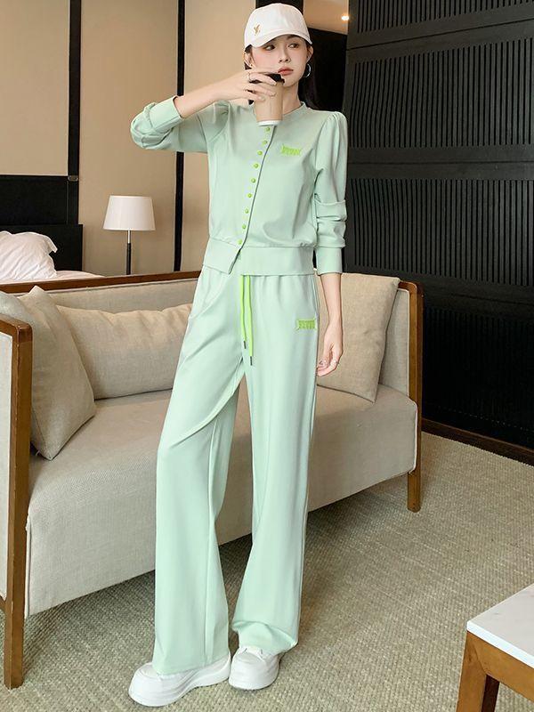 Conjunto deportivo casual nuevo 2025 para mujer, cárdigan, chaqueta, pantalones holgados de pierna ancha, conjunto de dos piezas, moderno, de alta gama