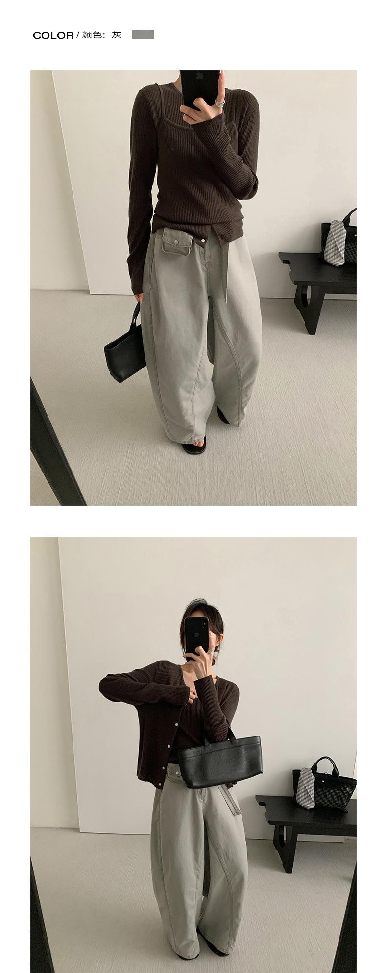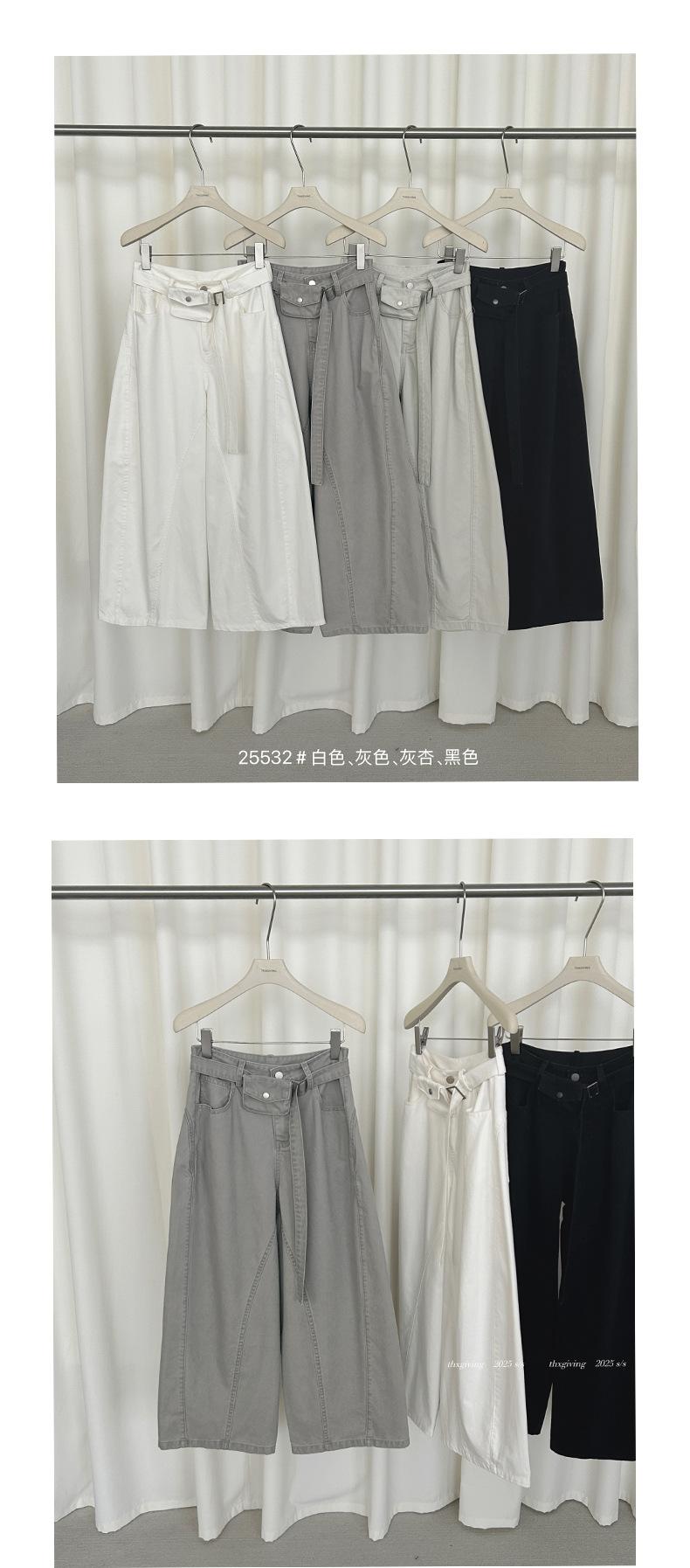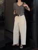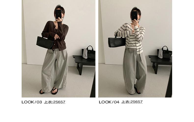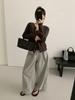 TG Diseño de Moda Bolsillo Cinturilla Pantalones de Pierna Ancha Mujer 2025 Otoño Nuevo Suelto Adelgazante Pantalones Recortados 25532