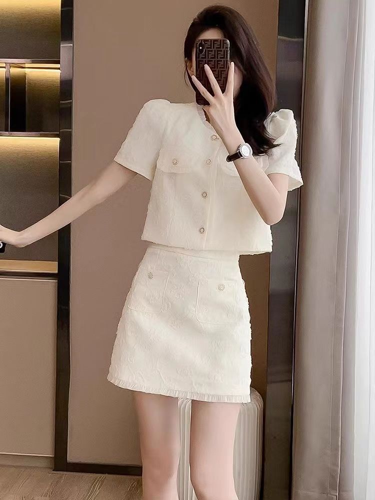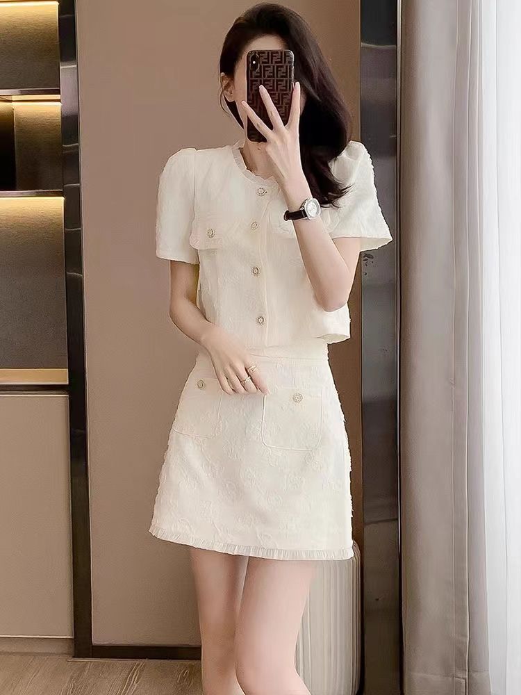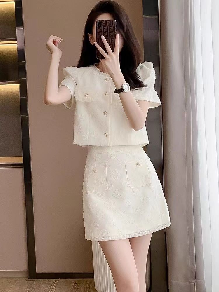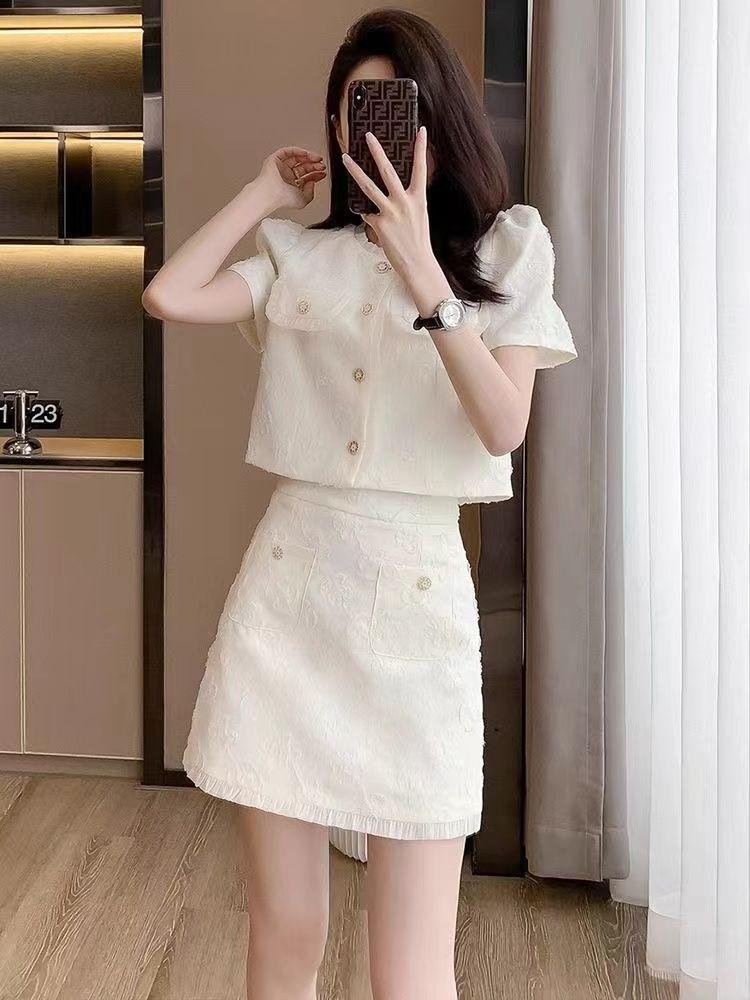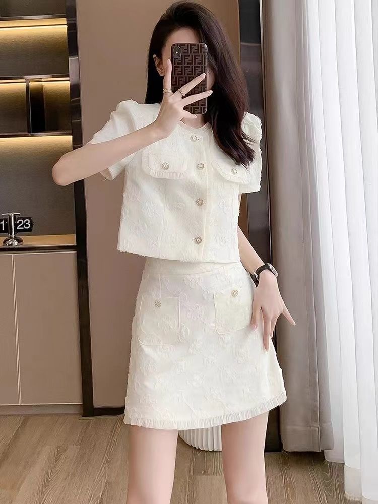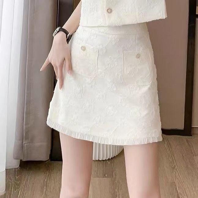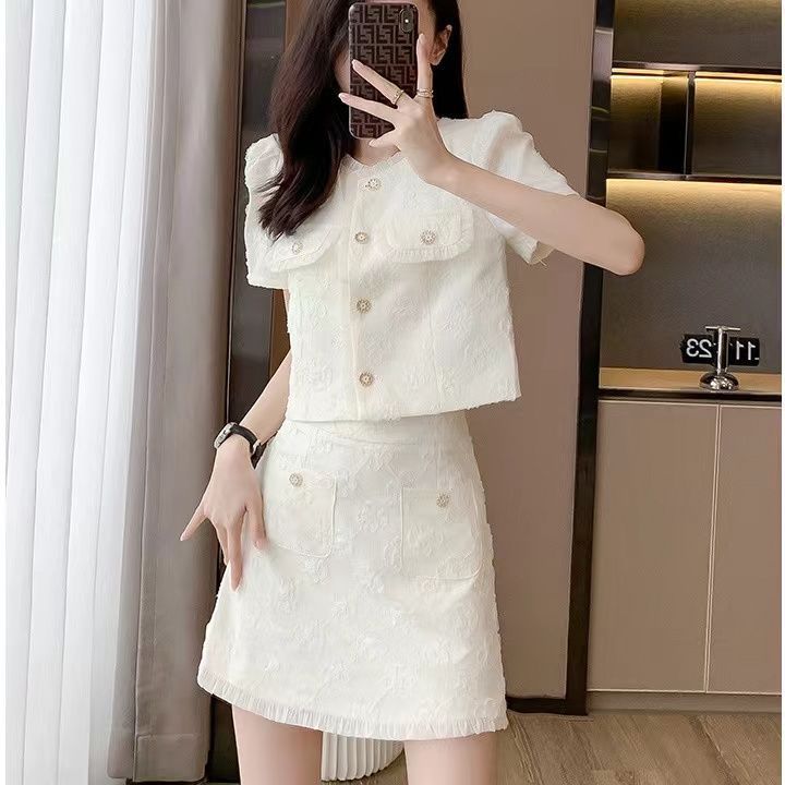 Falda de Cintura Alta Bordada Jacquard de Alta Gama Francesa Conjunto de Dos Piezas 2025 Nuevo Estilo de Verano Dama Elegante Top Versátil