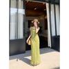 Vestido Elegante Floral Adelgazante Estilo Francés Manga Corta 2025 Verano Nuevo Diseño Nicho Cintura Entallada Vestido Largo